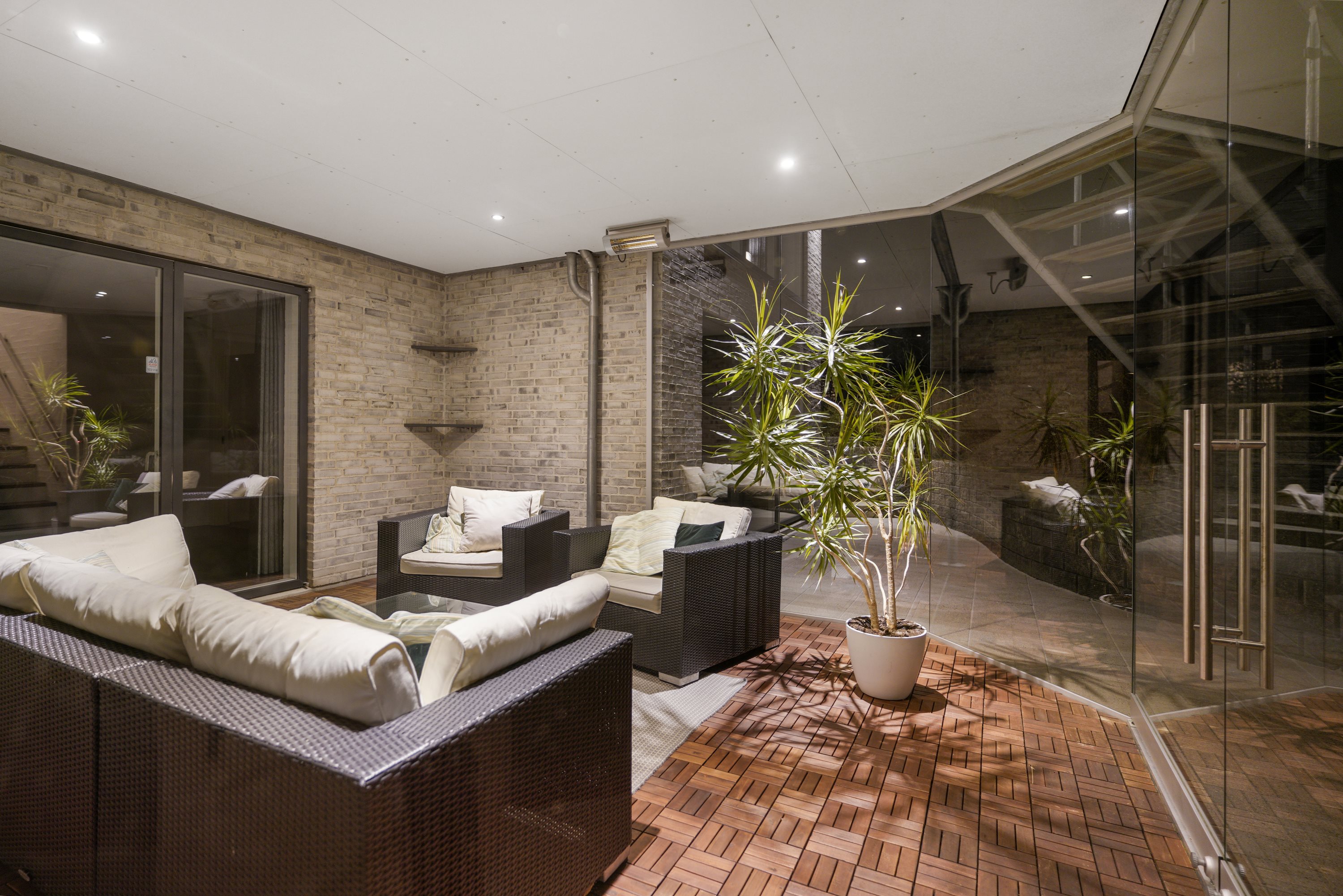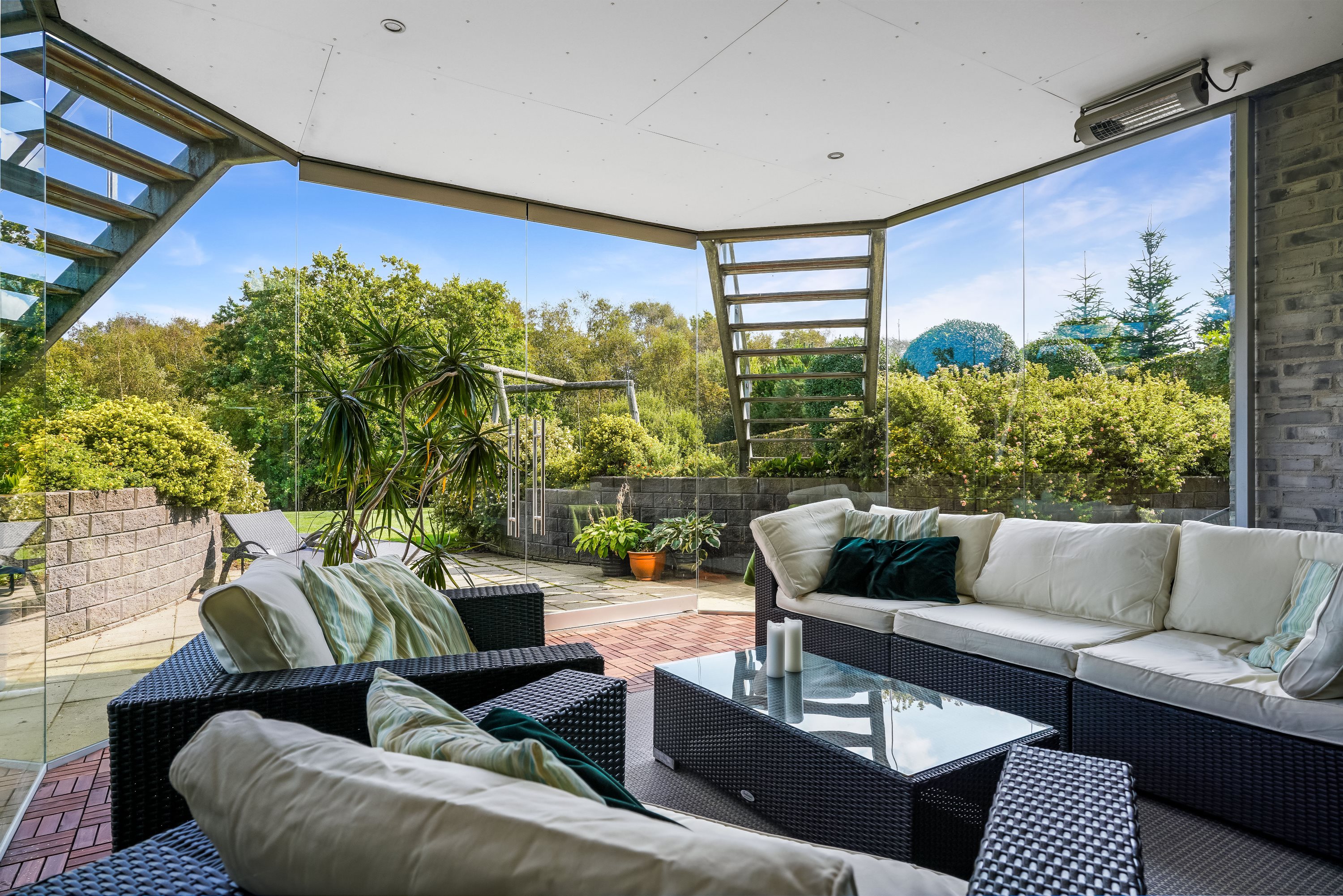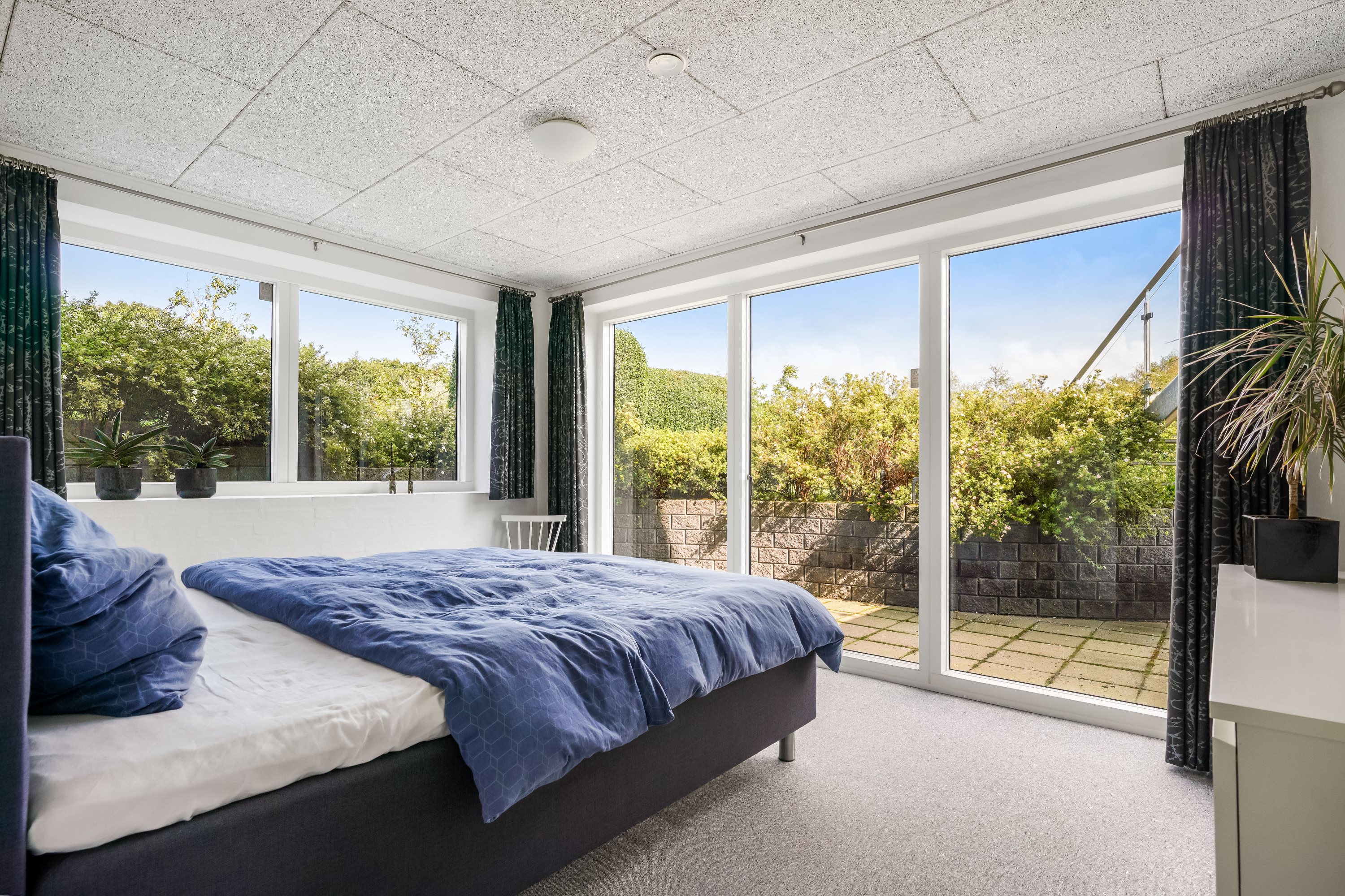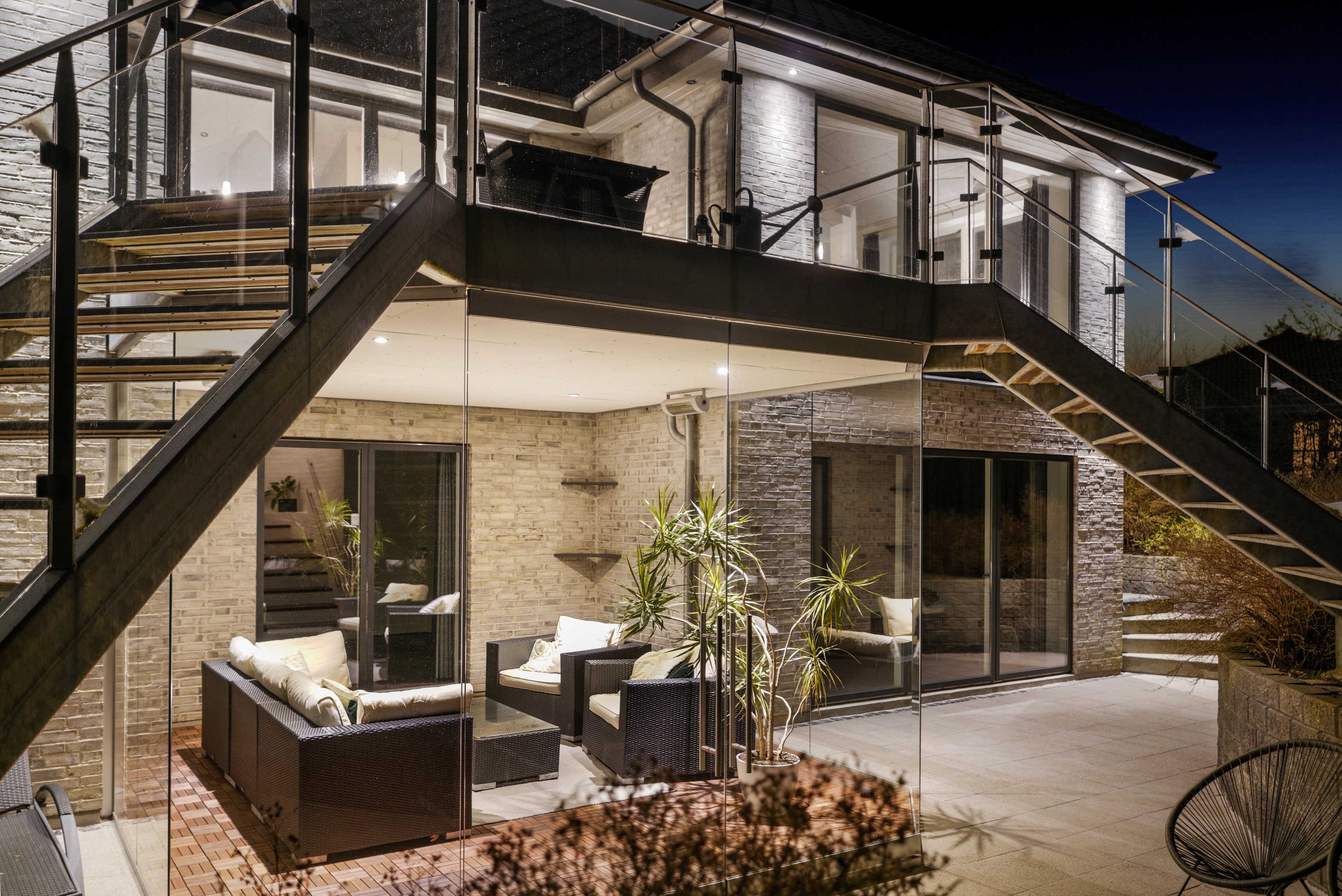 Opholdsstuen i underetagen er indrettet med god plads til både afslapning og underholdning og har adgang til en dejlig udestue med den rummelige altan over sig, der tilbyder en fantastisk udsigt over det omkringliggende landskab.