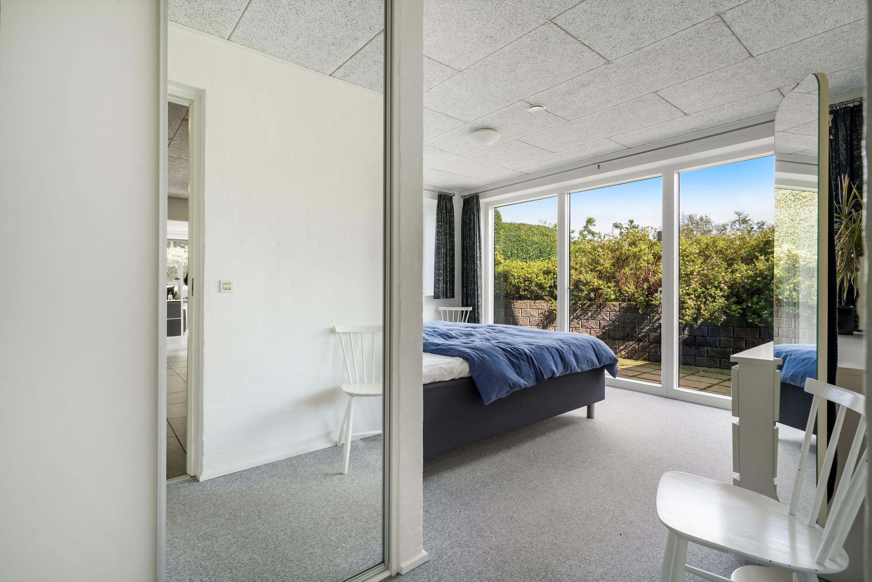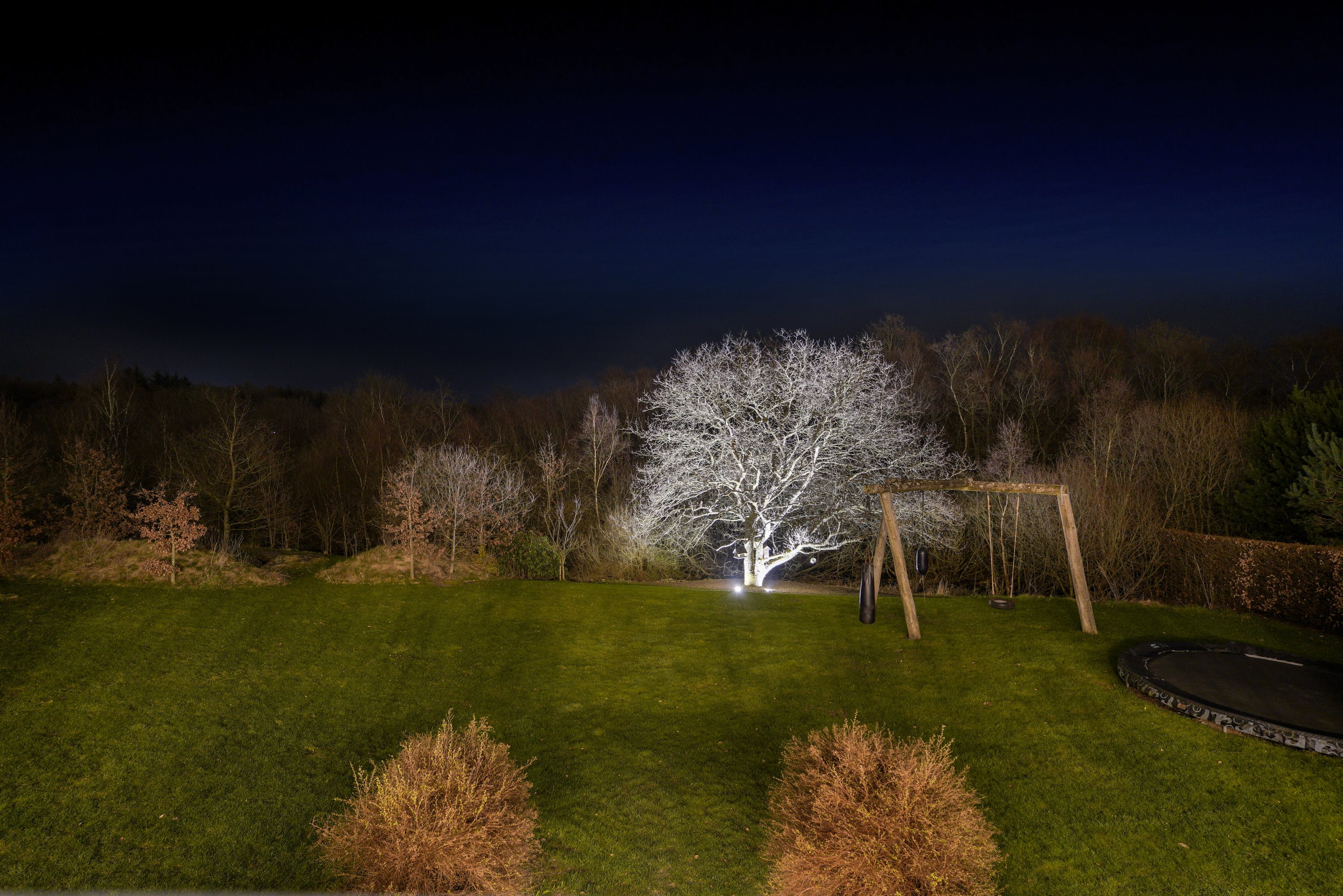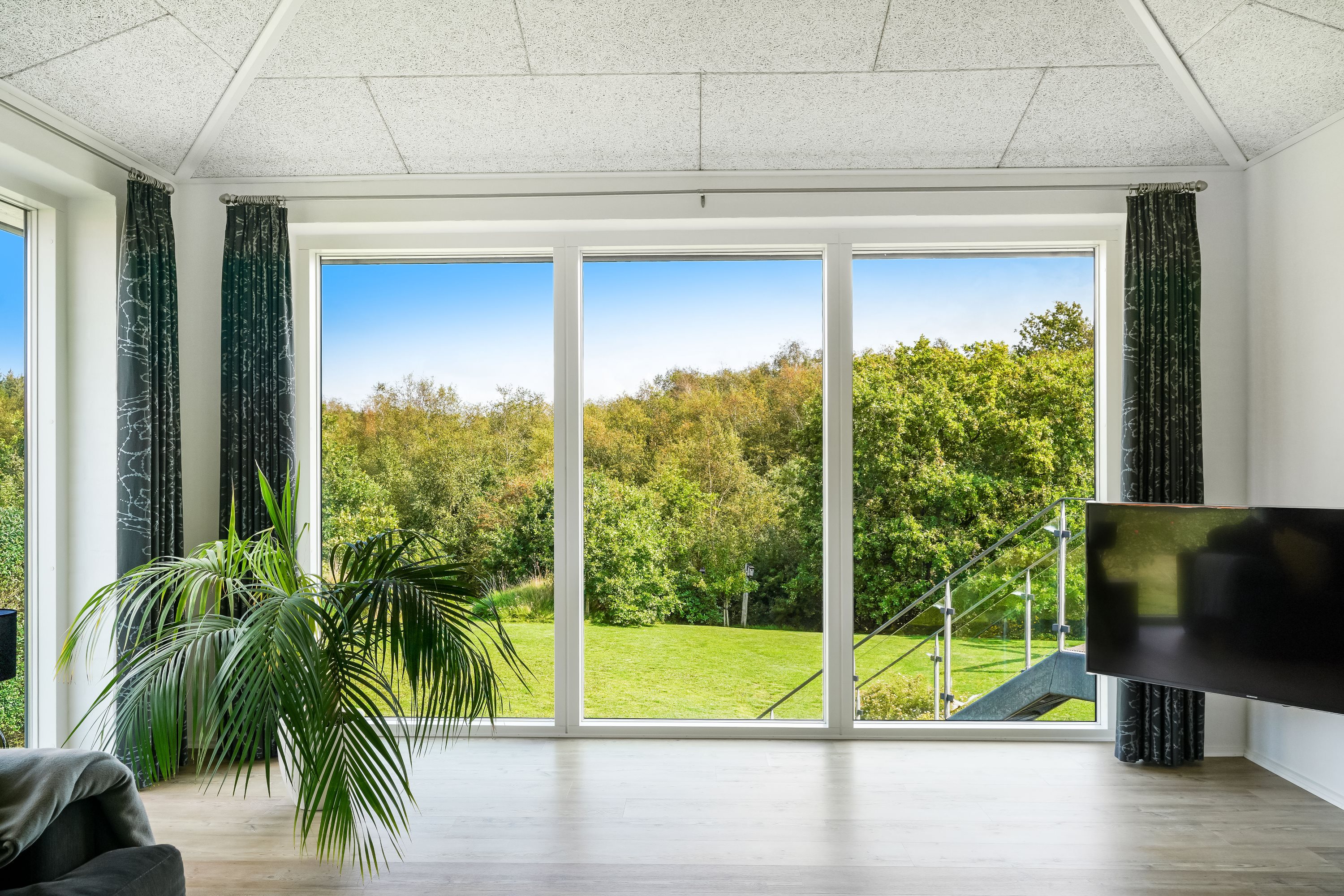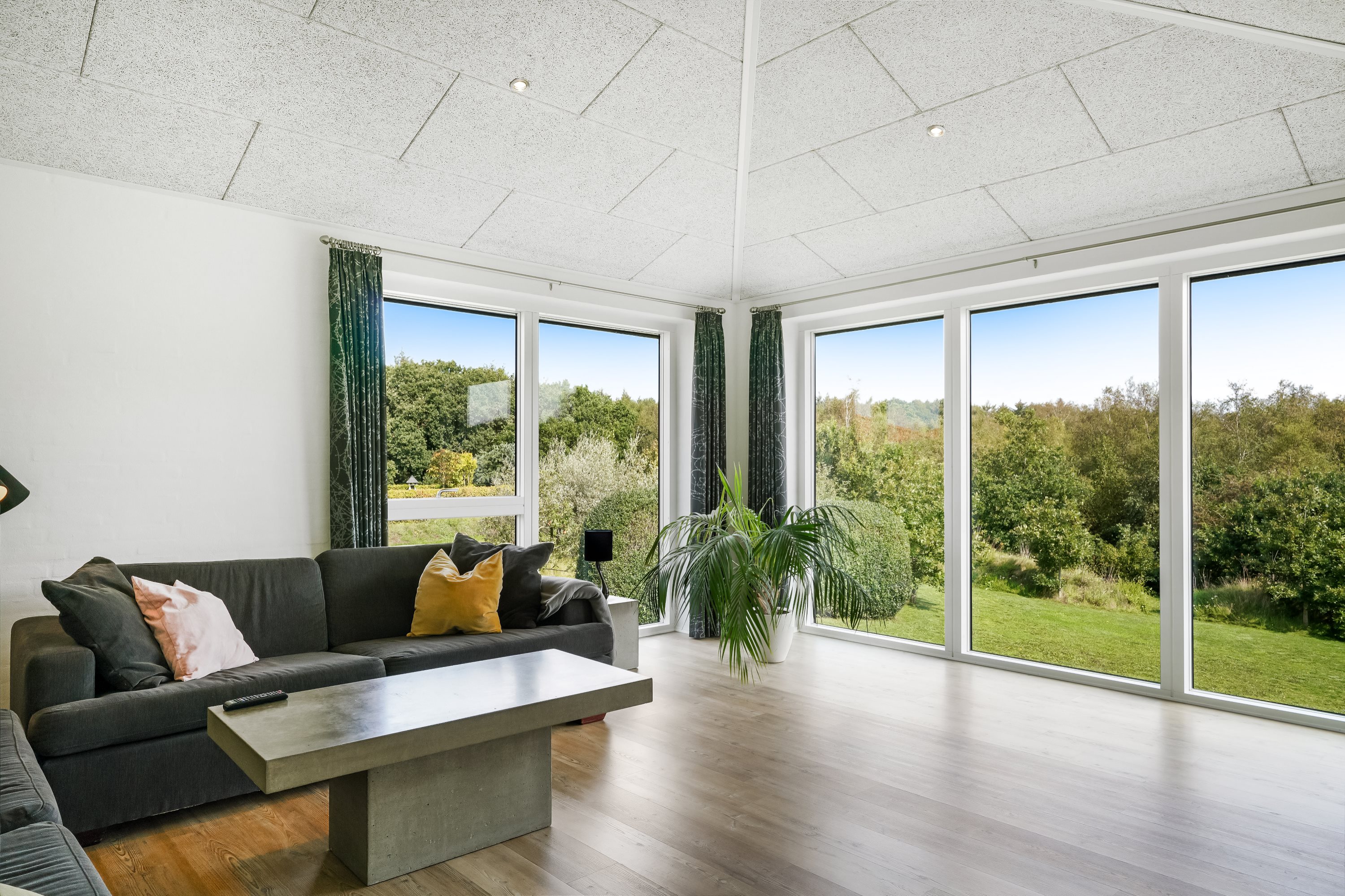 Ejendommen er strategisk placeret ud til skovareal, hvilket giver indtrykket af at have ens egen private skov lige udenfor døren. Dette tilføjer et ekstra lag af ro og fred til den allerede idylliske beliggenhed.