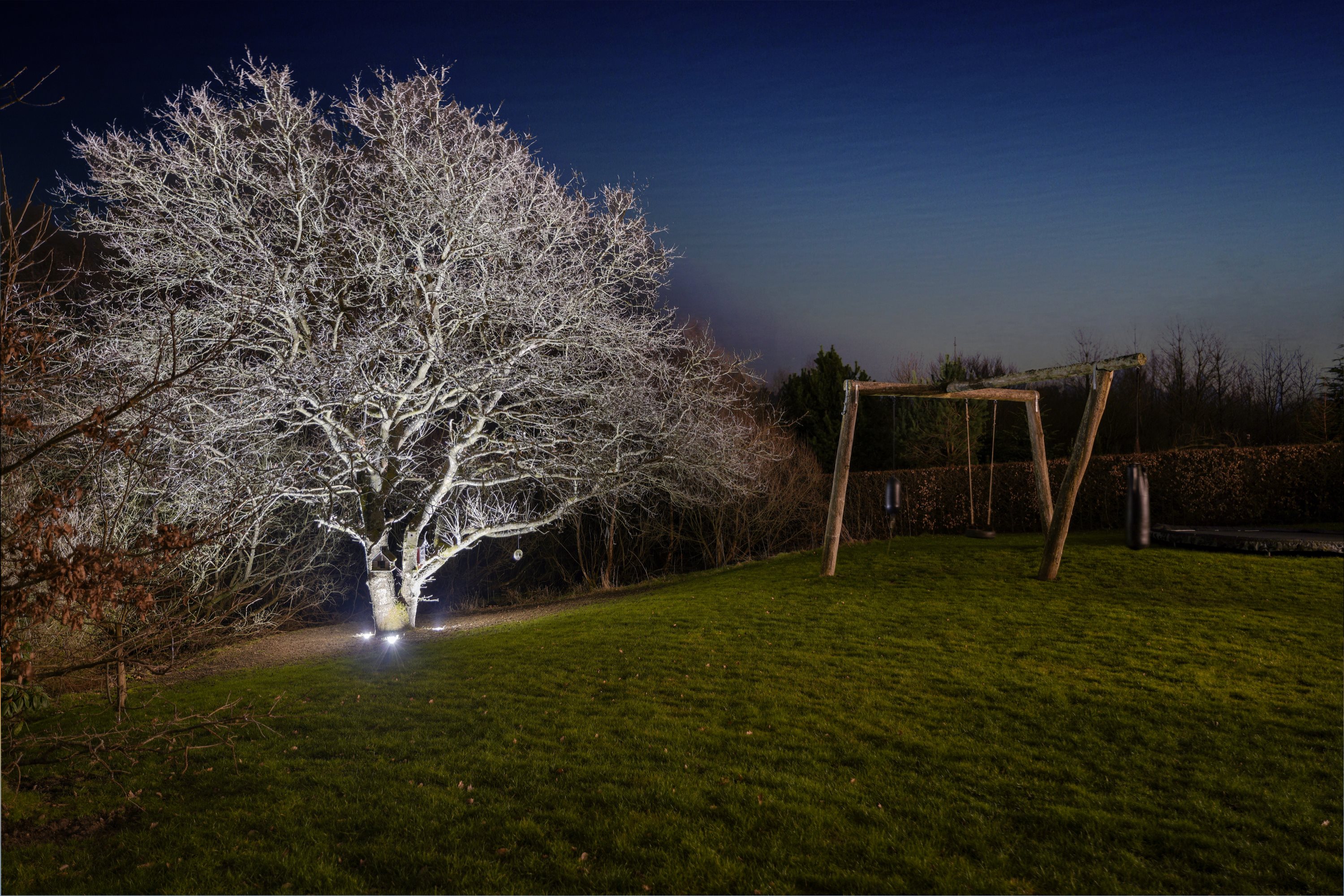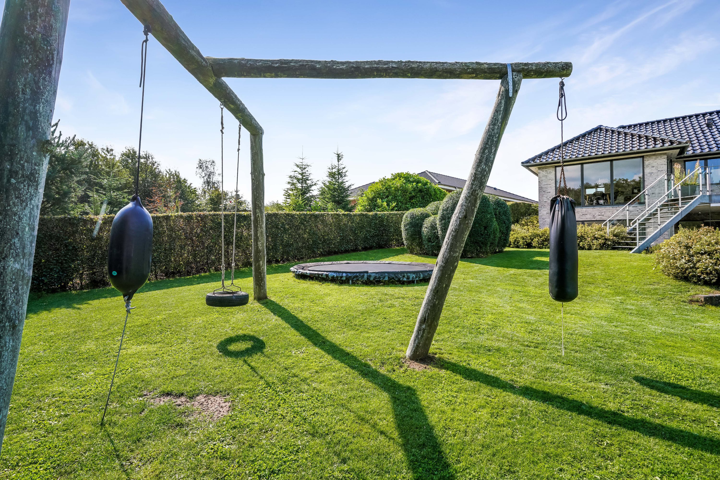 Dobbeltgaragen giver rigelig plads til parkering af flere køretøjer eller giver plads til forskellige hobbyer. Hyldehaven 104 er en ejendom i særklasse der giver mulighed for at nyde grillaftener, leg for børnene eller bare til at slappe af og nyde den naturskønne skønhed i området.