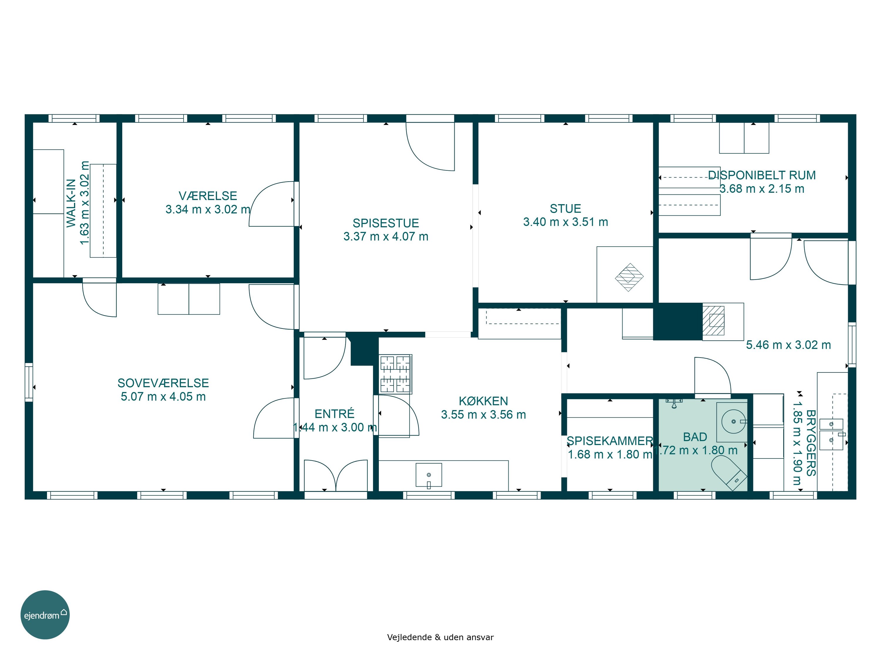 Endvidere er en entré, et godt værelse samt soveværelse med walk-in.