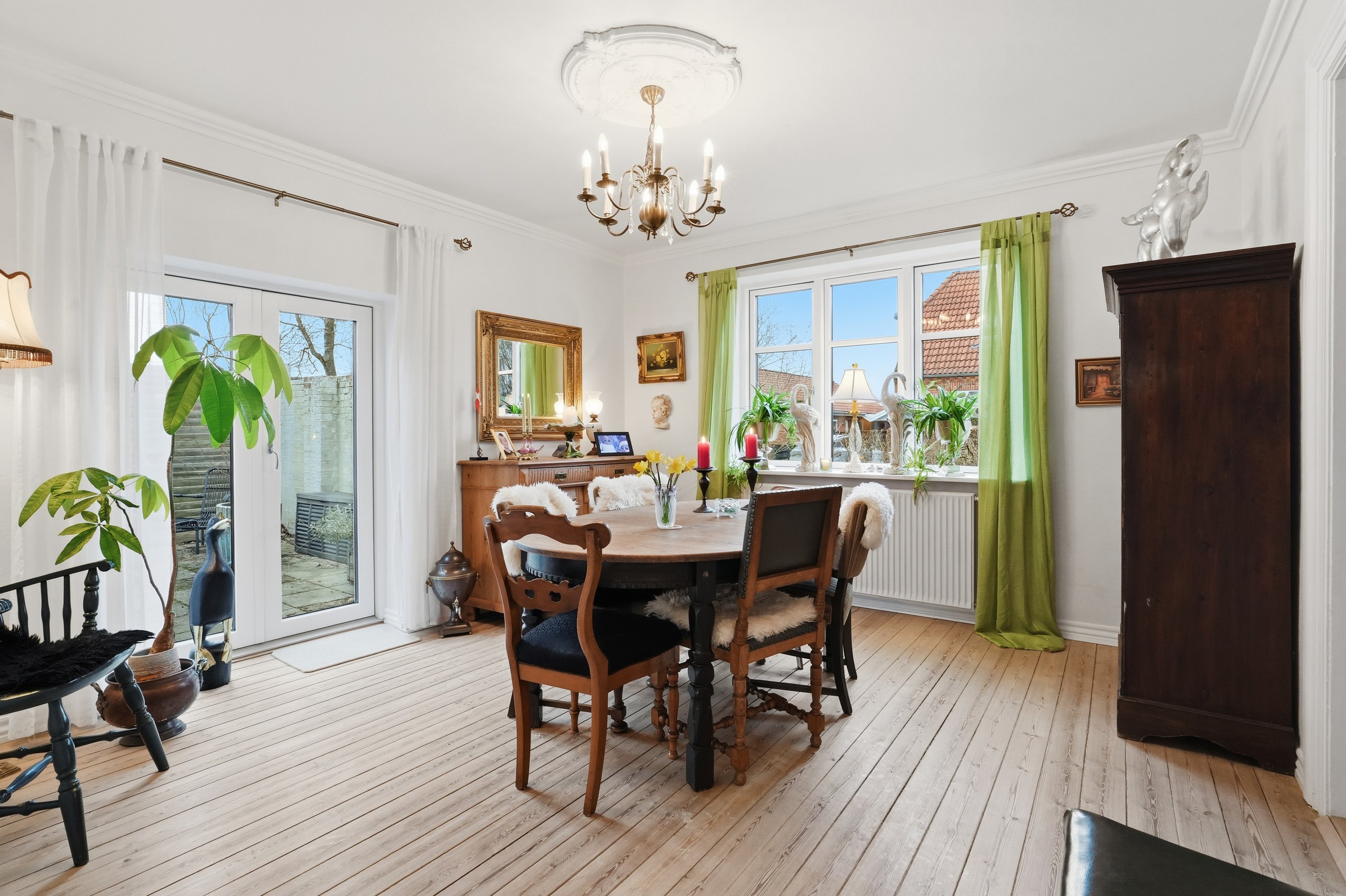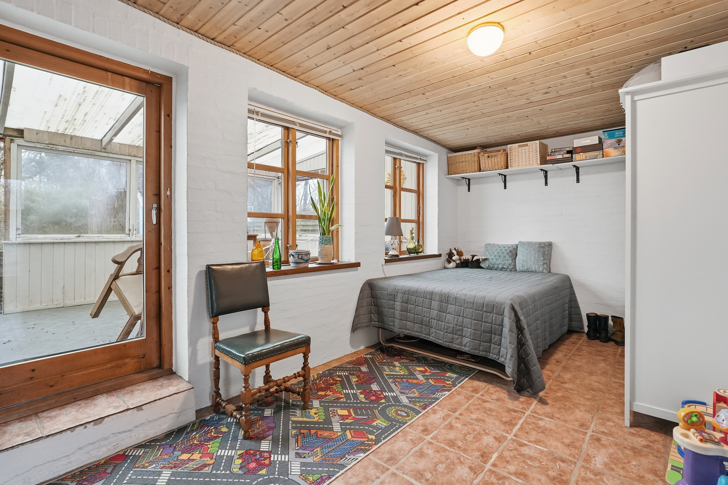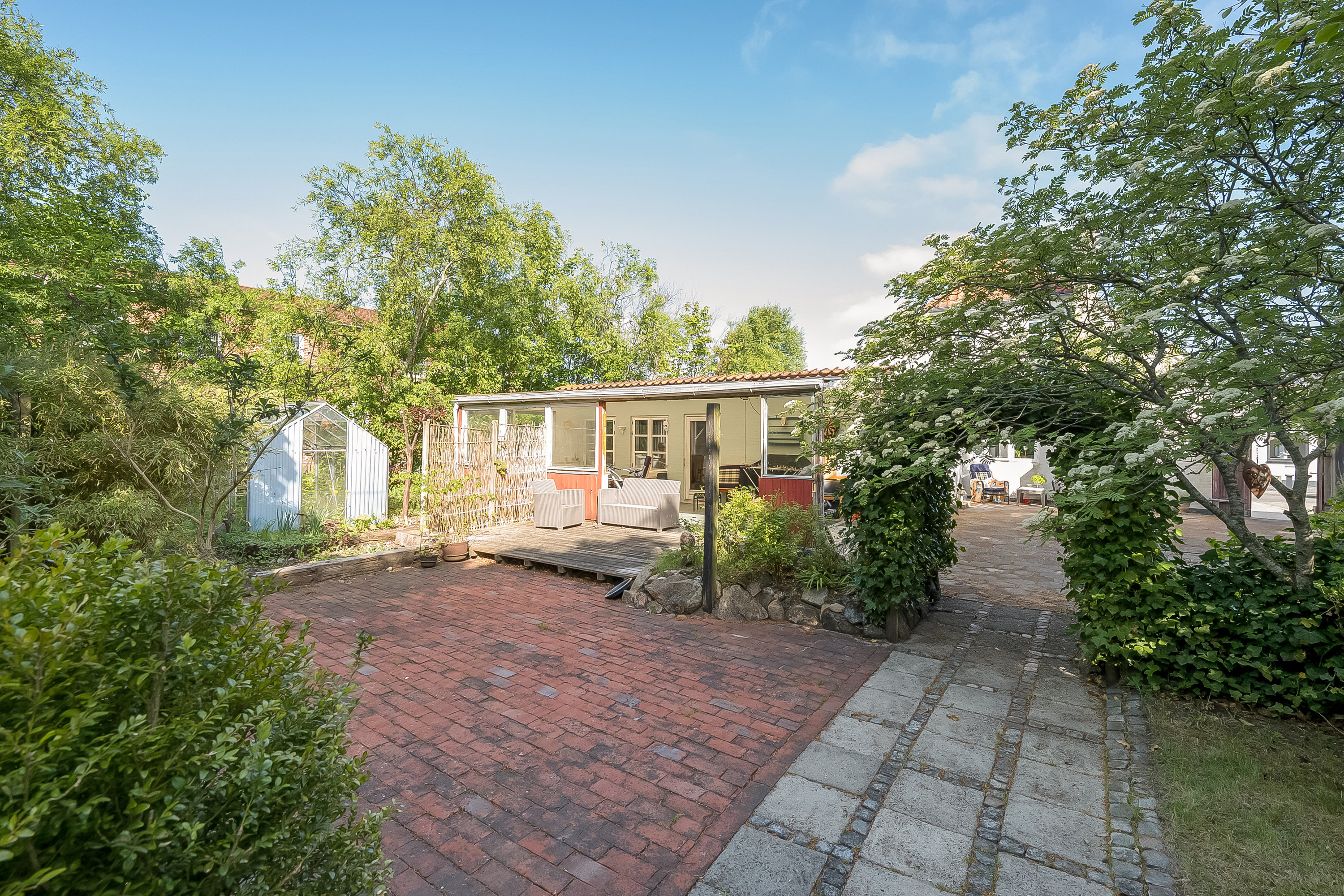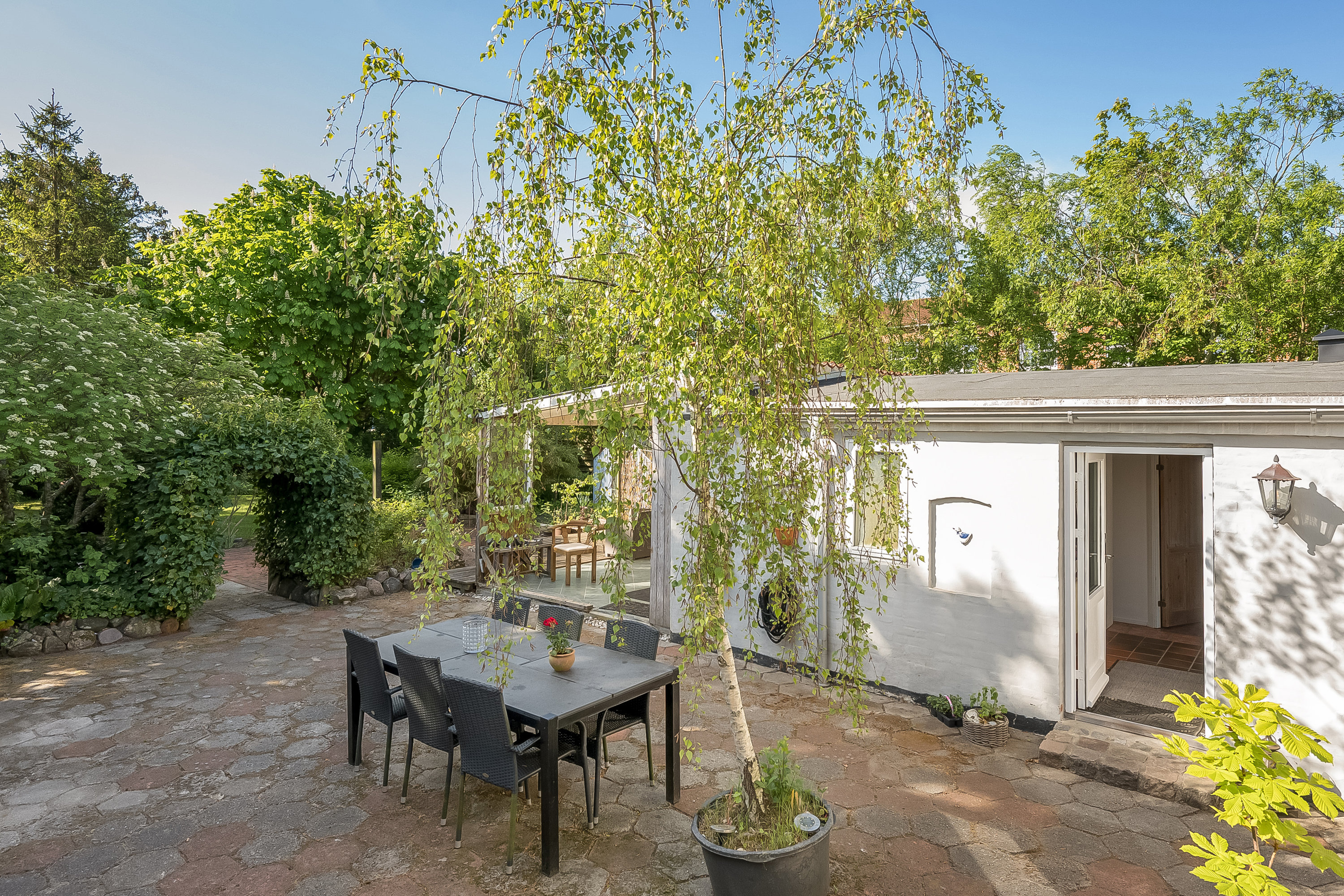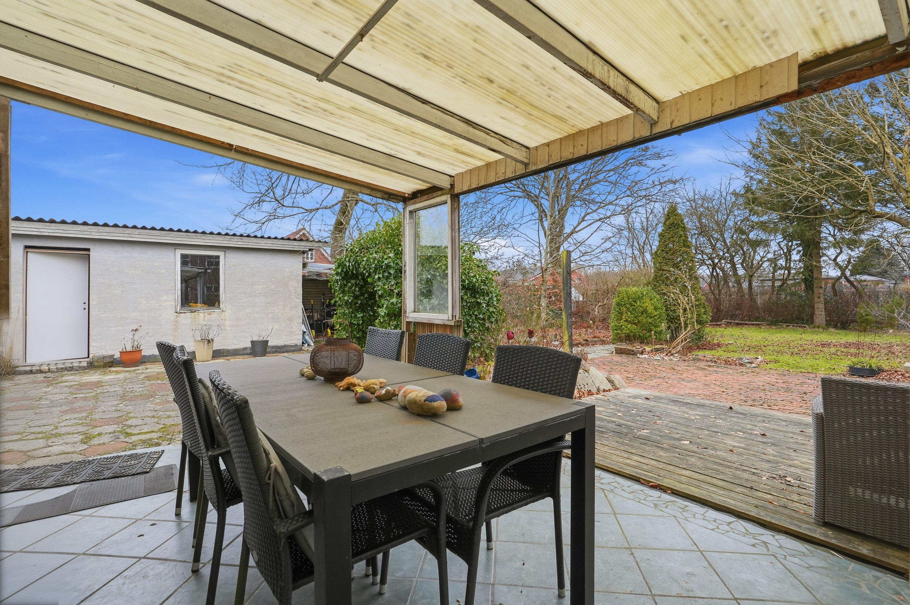 Udendørs venter en fin og idyllisk have, som virkelig er værd at fremhæve. Her er der skabt en grøn oase med plads til leg, afslapning og hyggelige sommeraftener på terrassen. Haven indbyder til både ro og aktivitet og danner en smuk ramme om boligen.
