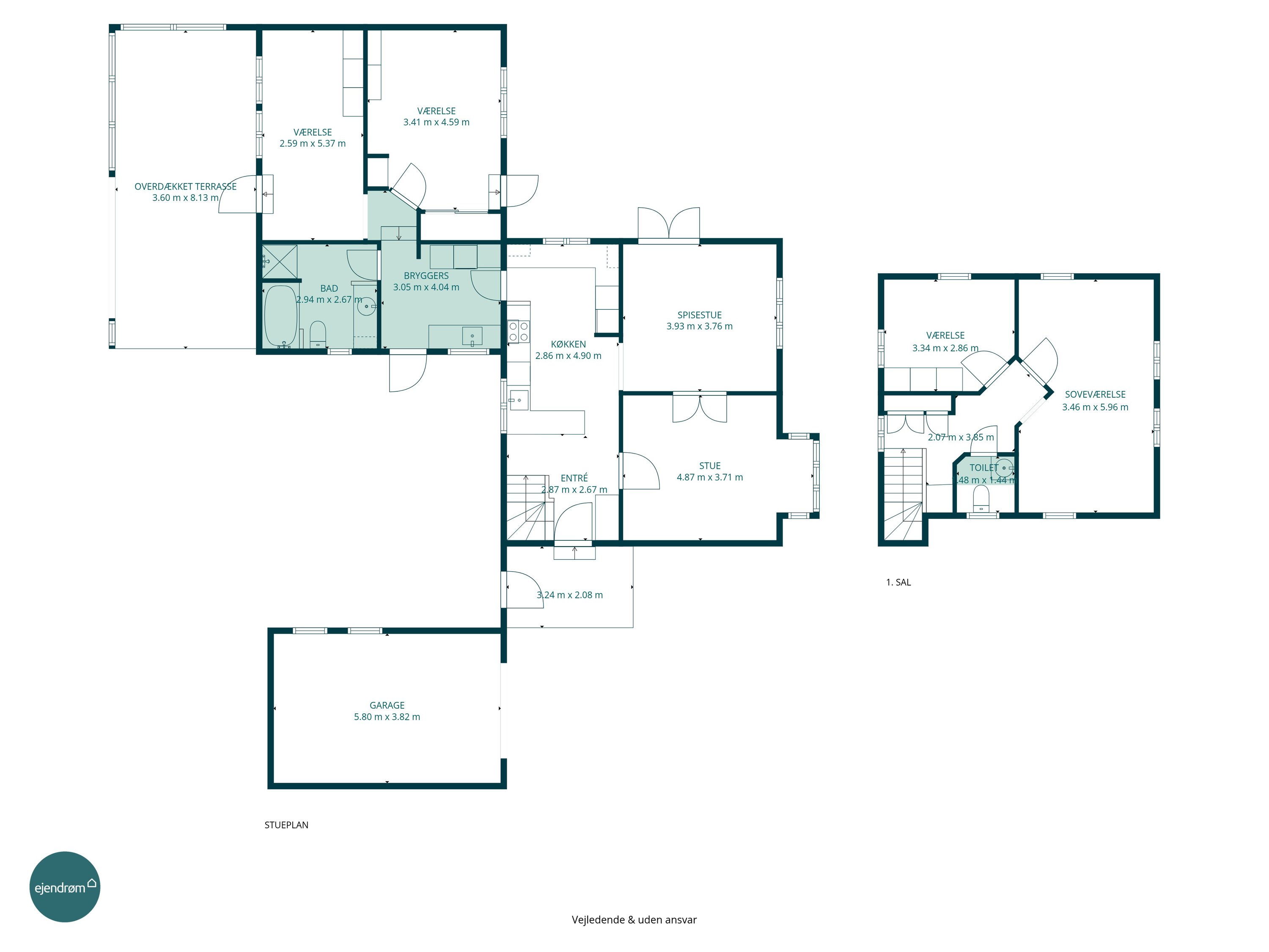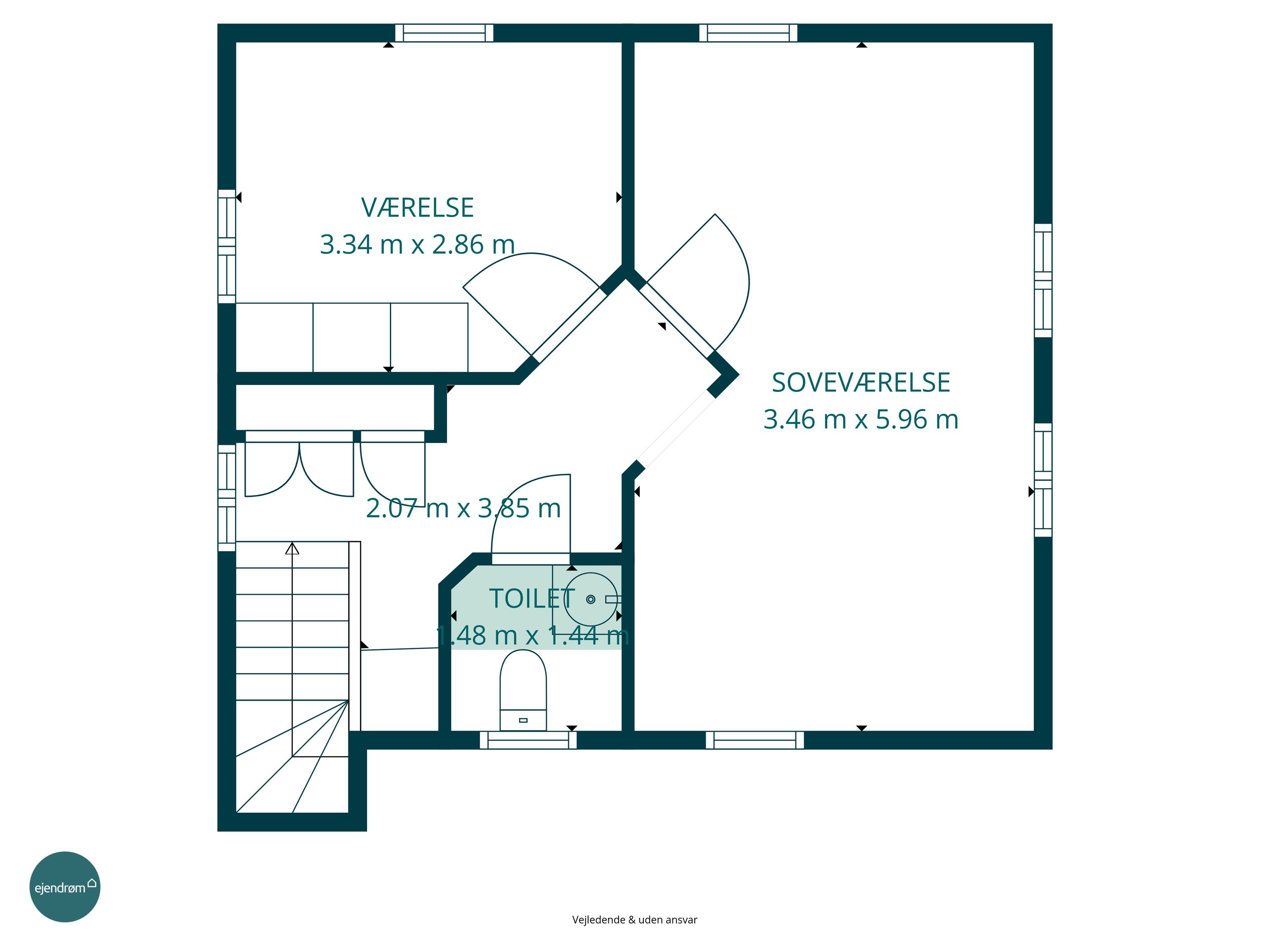 På førstesalen finder du to gode værelser, hvoraf det ene har en størrelse, der gør det oplagt at etablere en ekstra væg, så der kan skabes tre separate værelser, hvis behovet opstår. Derudover er der WC på førstesalen, hvilket giver en praktisk og velfungerende indretning i dagligdagen.