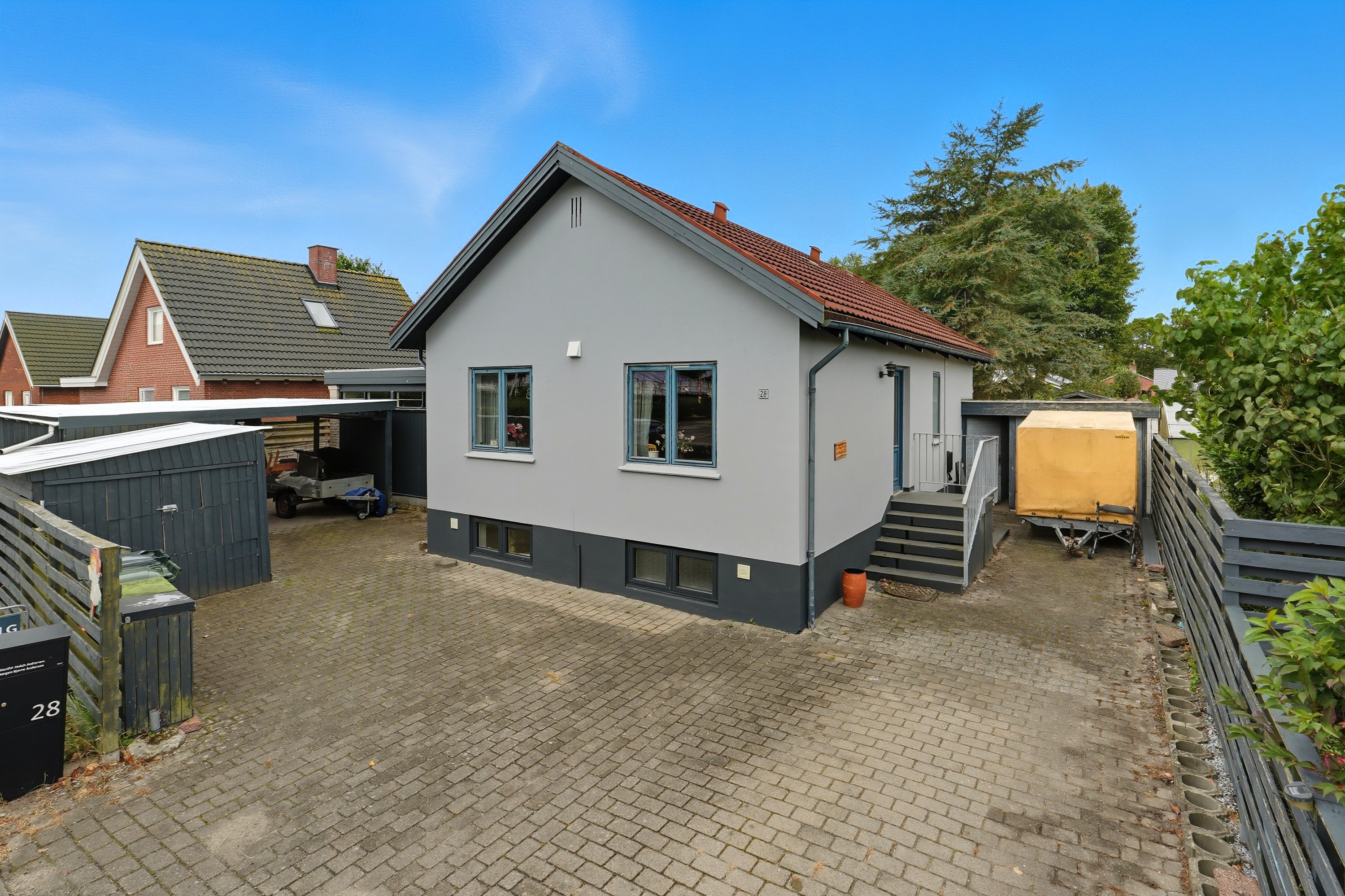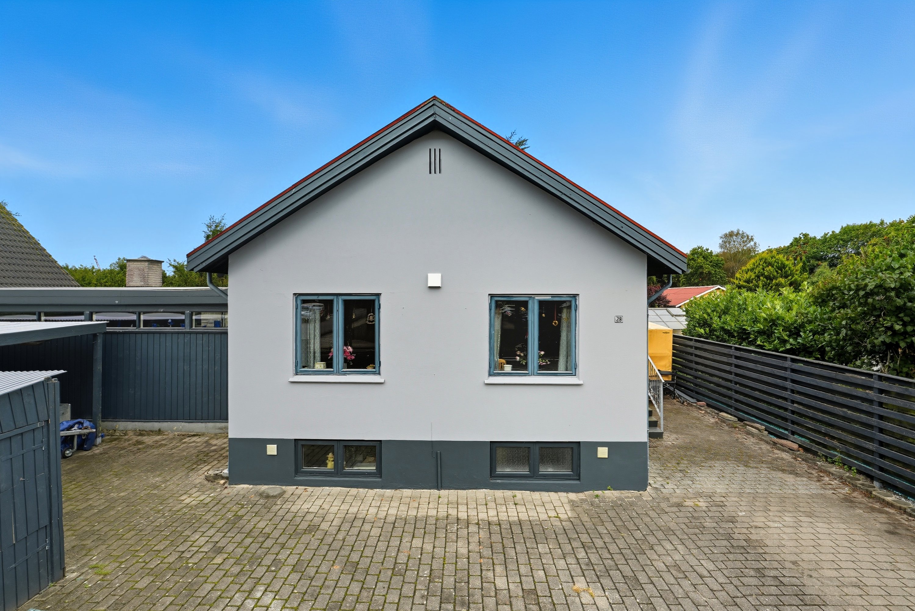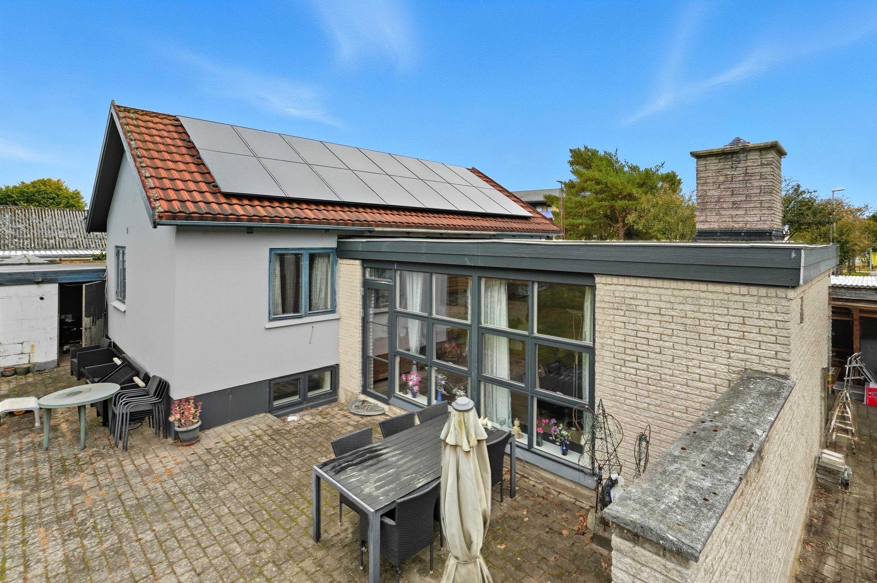 Kælderen giver ekstra anvendelig plads med tre disponible rum, som kan bruges til opbevaring, hobby eller træning. Her finder du også et badeværelse fra 2005, hvilket gør boligen ekstra praktisk i dagligdagen. Boligen er desuden udstyret med 5 kWh solceller, som bidrager til lavere driftsomkostninger og en mere energivenlig hverdag.