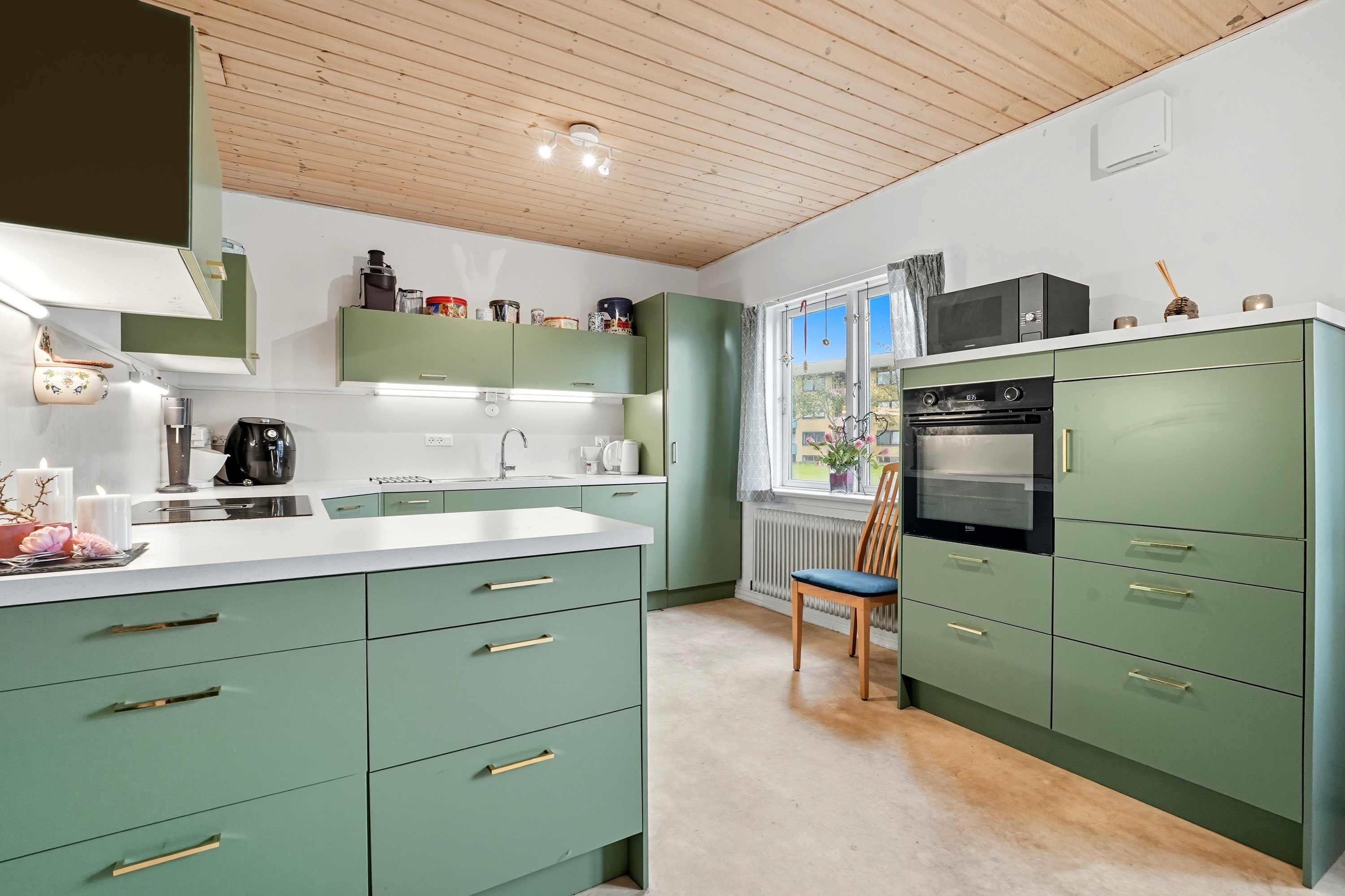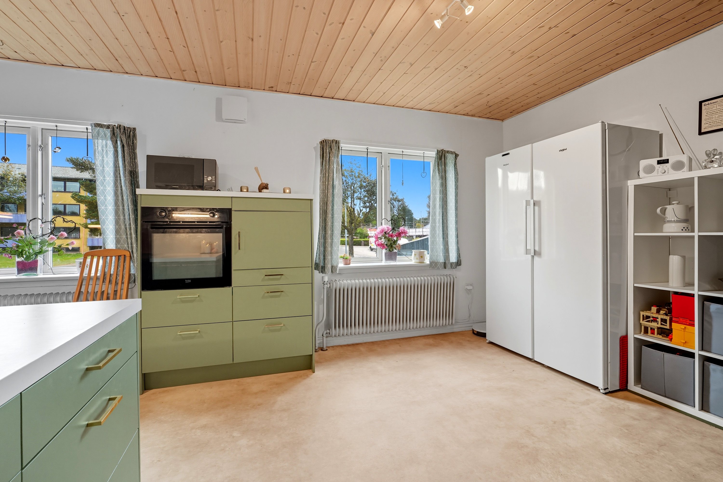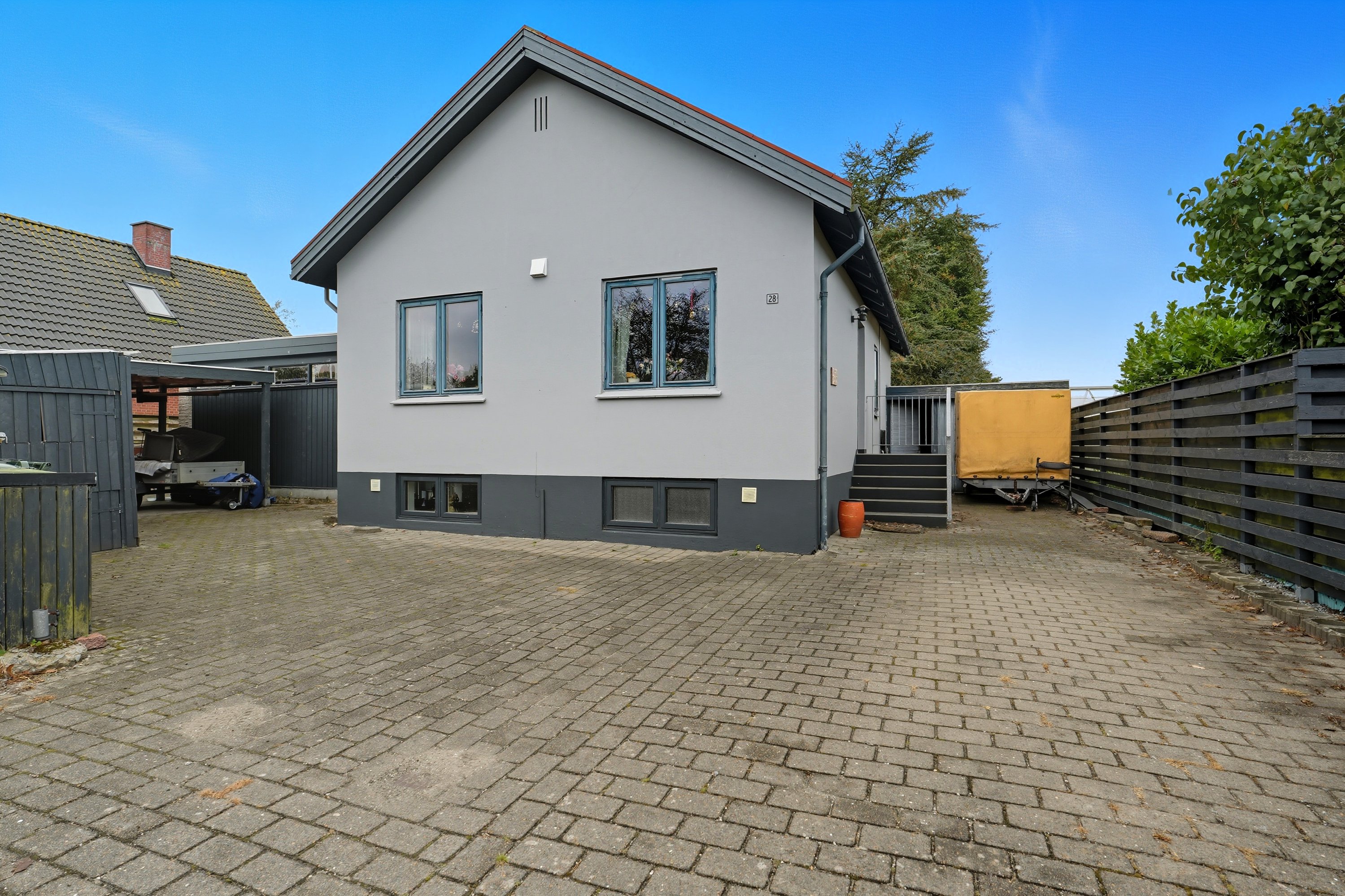 Kælderen giver ekstra anvendelig plads med tre disponible rum, som kan bruges til opbevaring, hobby eller træning. Her finder du også et badeværelse fra 2005, hvilket gør boligen ekstra praktisk i dagligdagen. Boligen er desuden udstyret med 5 kWh solceller, som bidrager til lavere driftsomkostninger og en mere energivenlig hverdag.