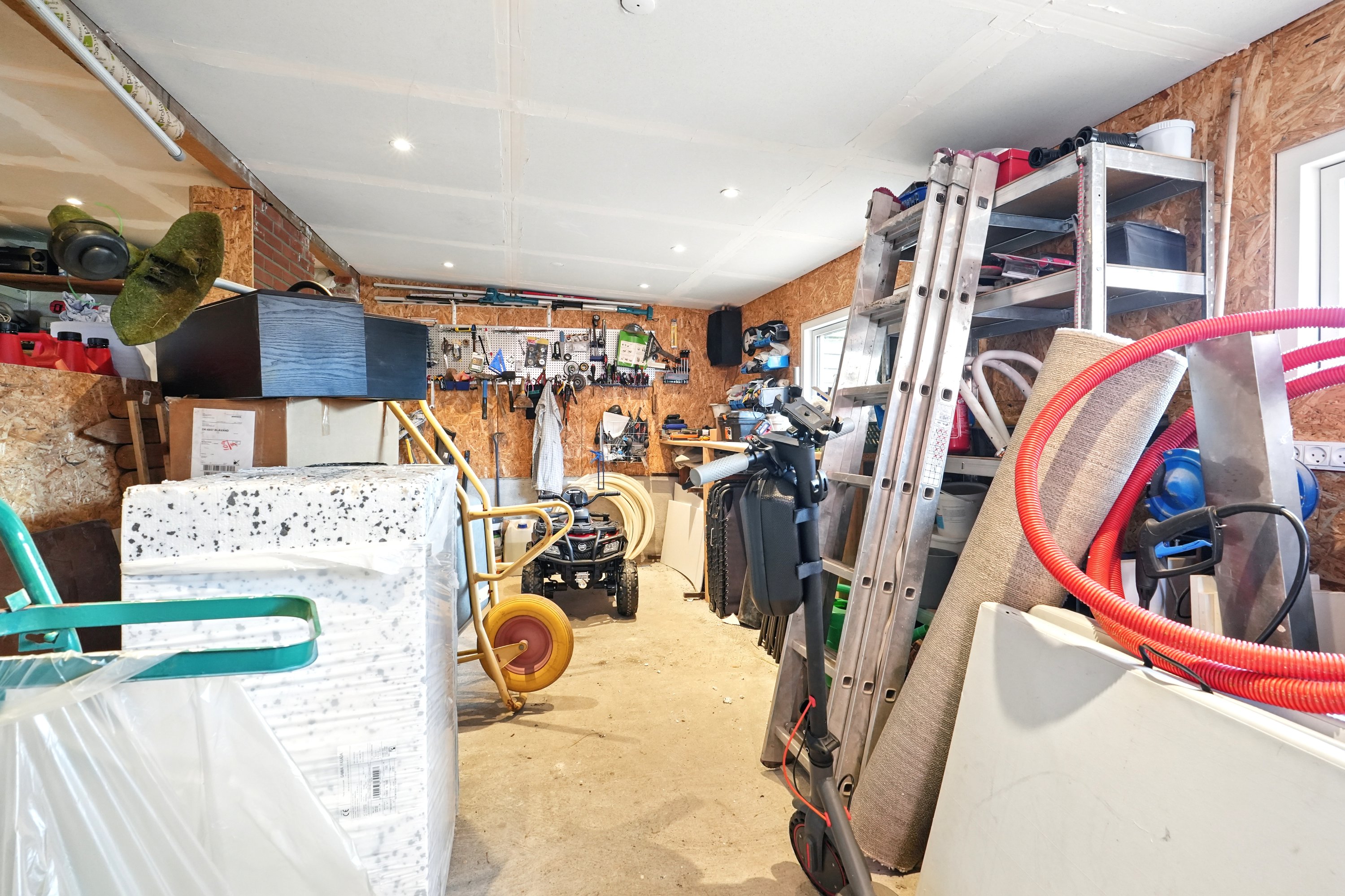 Udvendigt er der også gjort en masse. Facaden blev omfuget i 2020, vinduerne er skiftet i 2011, og der er etableret faskine. Indkørslen er nyanlagt, og garagen har fået nyt tag og ivarplankbeklædning. Taget på huset er et Decra-tag fra 2000 med mange gode år i sig endnu. Den tilhørende garage og skur giver rig mulighed for både parkering og opbevaring.