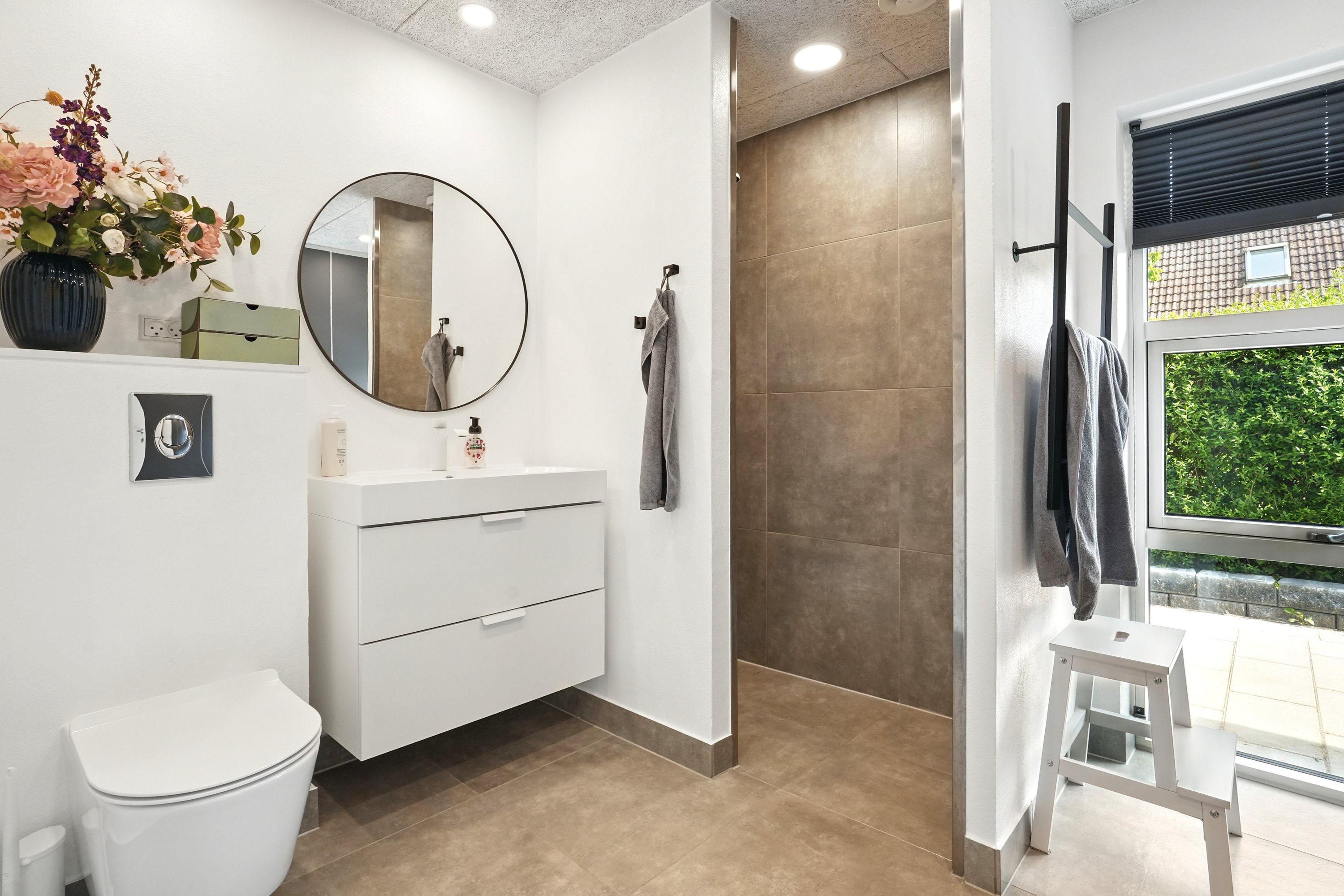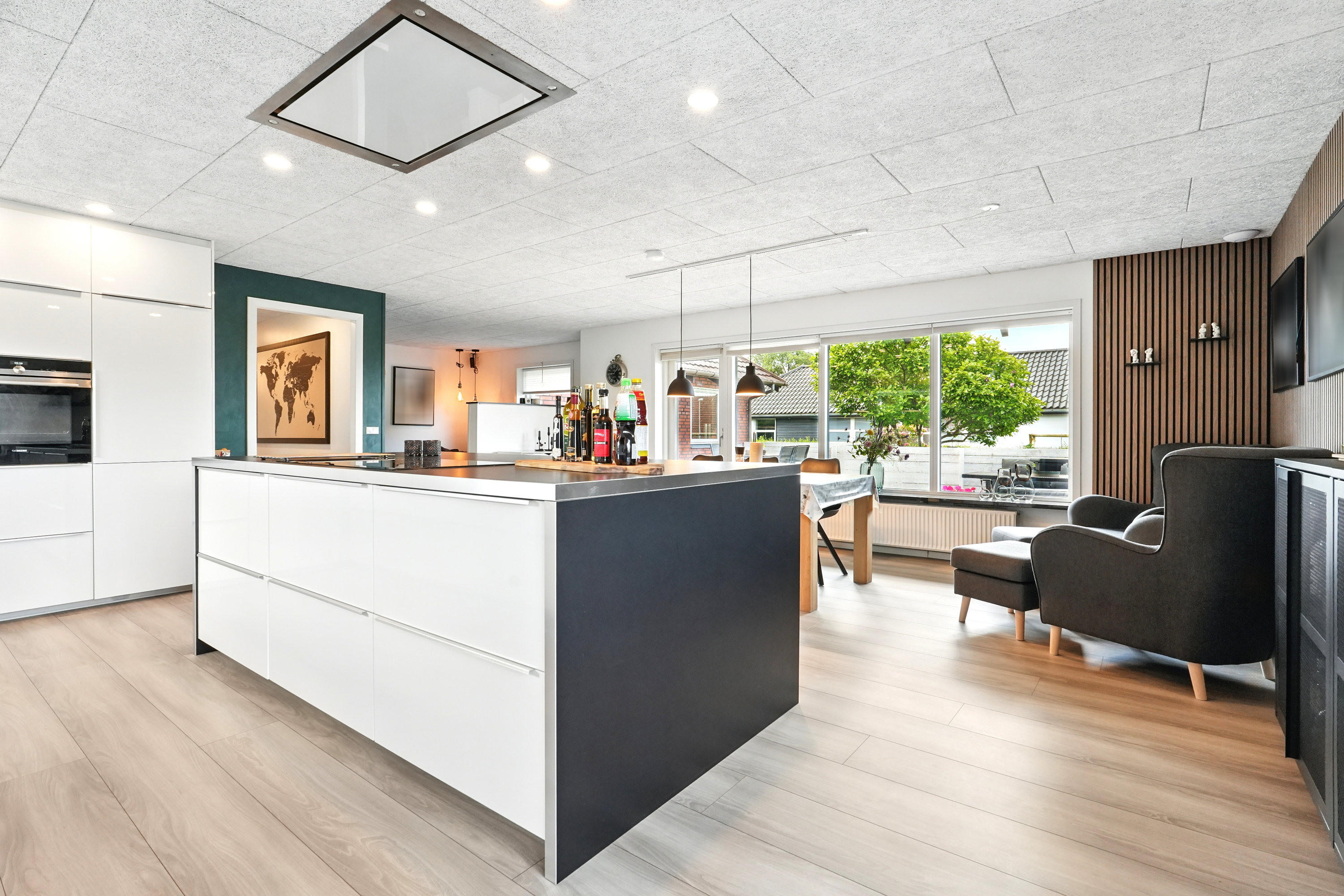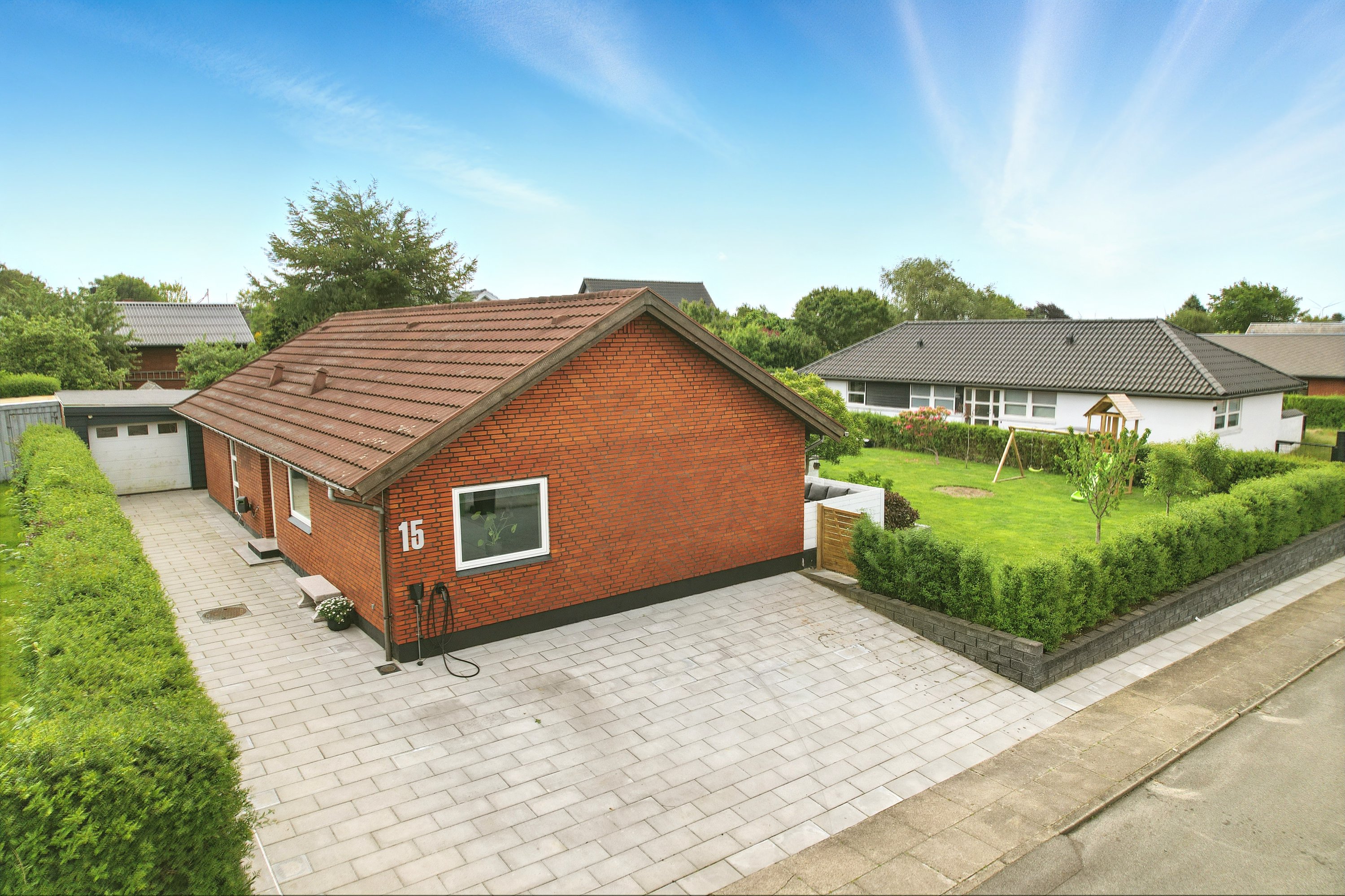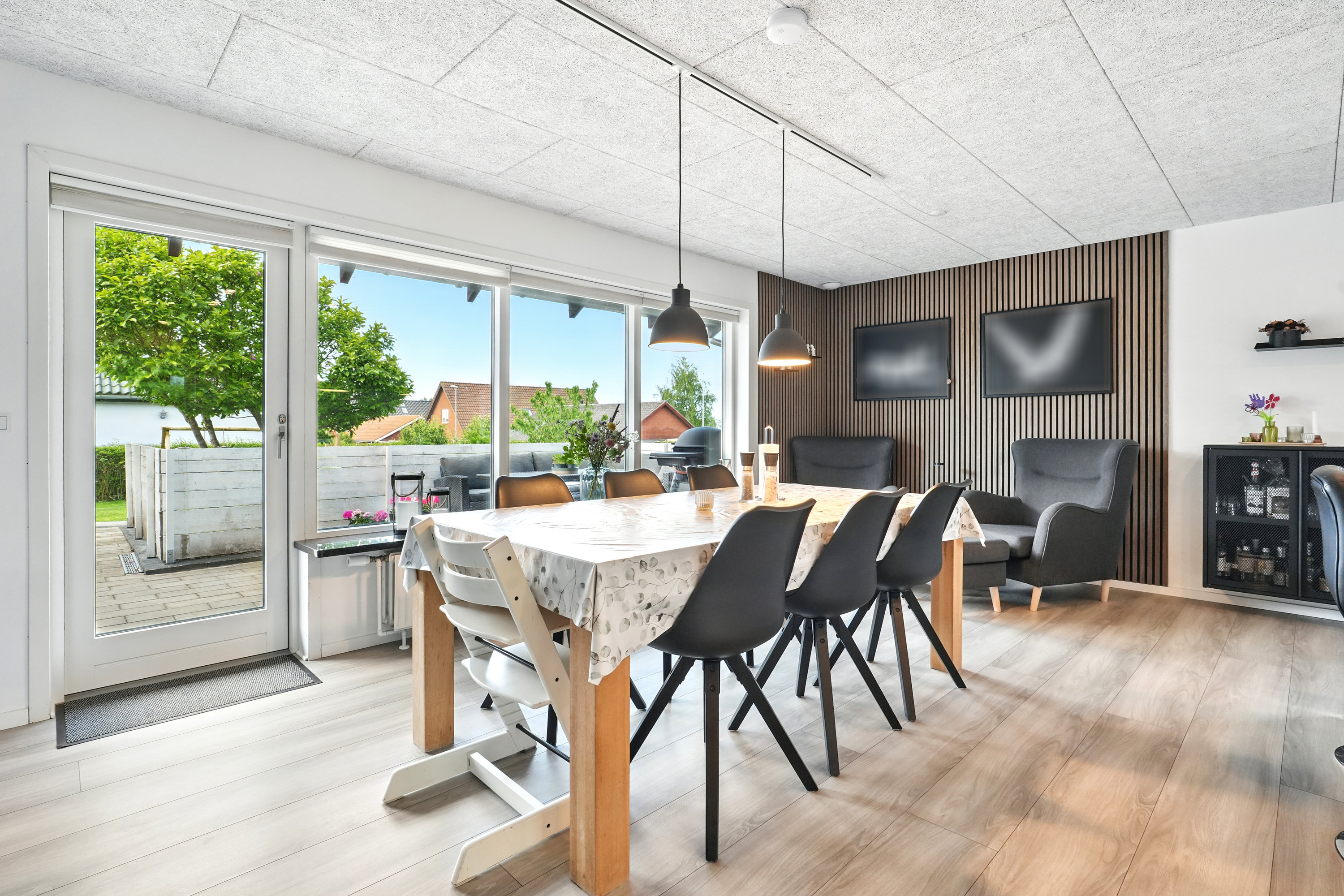 Haven er lukket og privat, perfekt til leg og afslapning. Fra køkken-alrummet er der direkte udgang til en hyggelig terrasse – ideel til sommerens grillaftener.