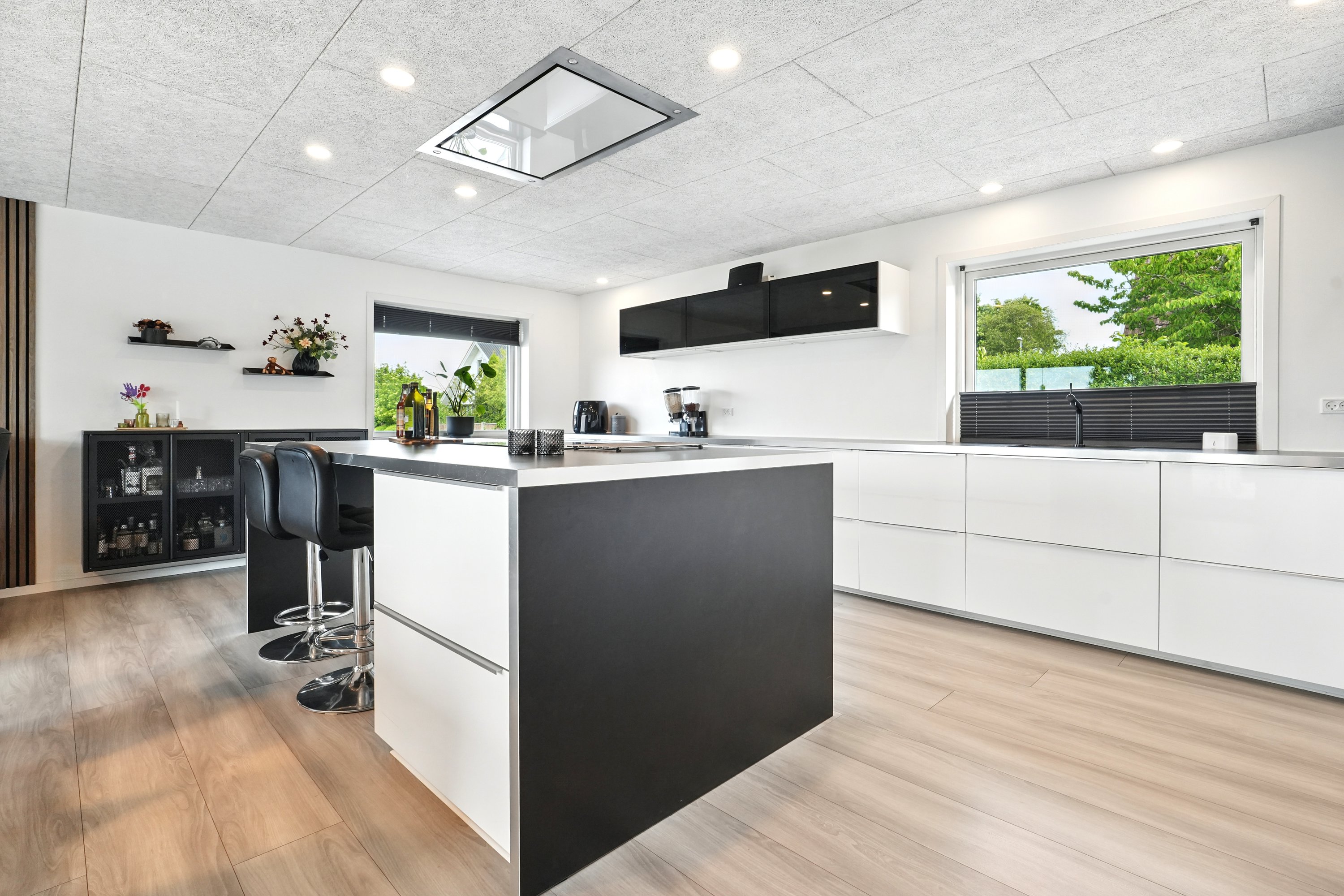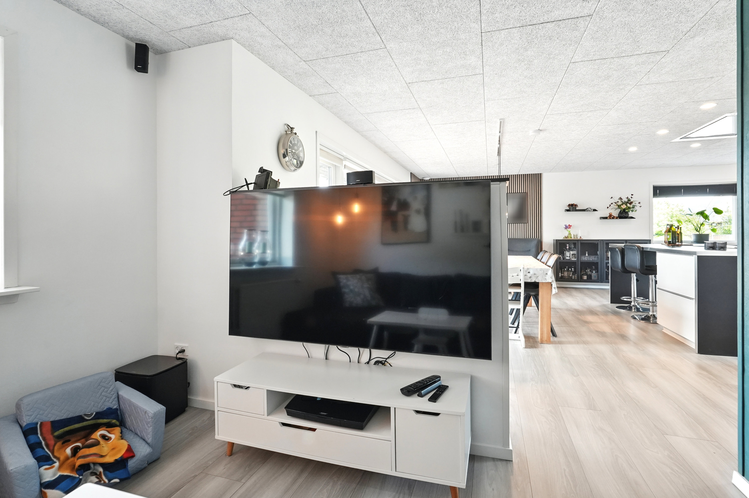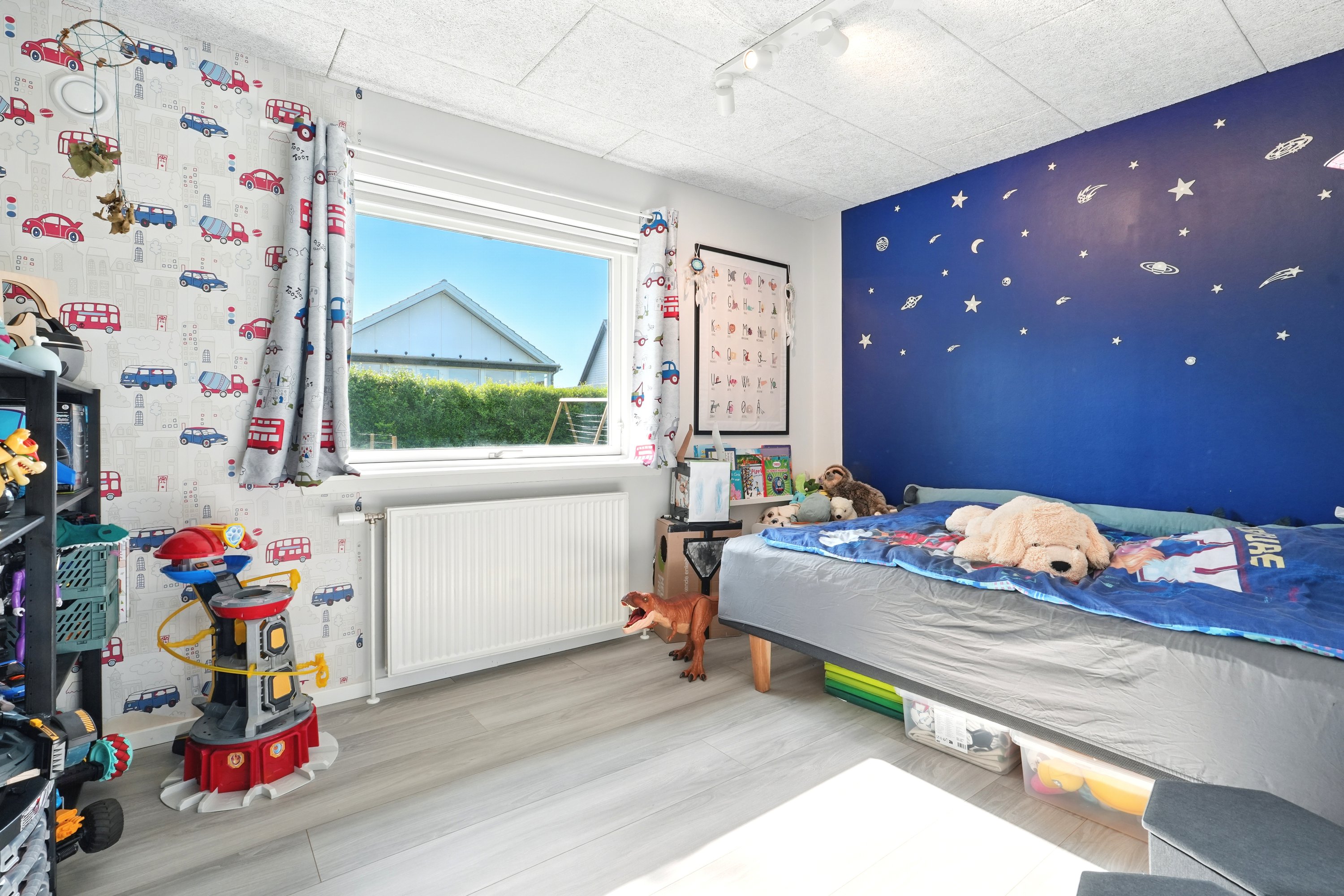 Indvendigt er huset gennemgribende moderniseret med fokus på en rød tråd i materialevalg og indretning. Det store, lyse køkken-alrum ligger i åben forbindelse med stuen, og troldtektlofterne sikrer en behagelig akustik. Planløsningen er ideel til børnefamilien med hele fire gode værelser – herunder tre rummelige børneværelser og et soveværelse. Derudover får du et stort badeværelse, gæstetoilet samt et praktisk bryggers med god opbevaringsplads.