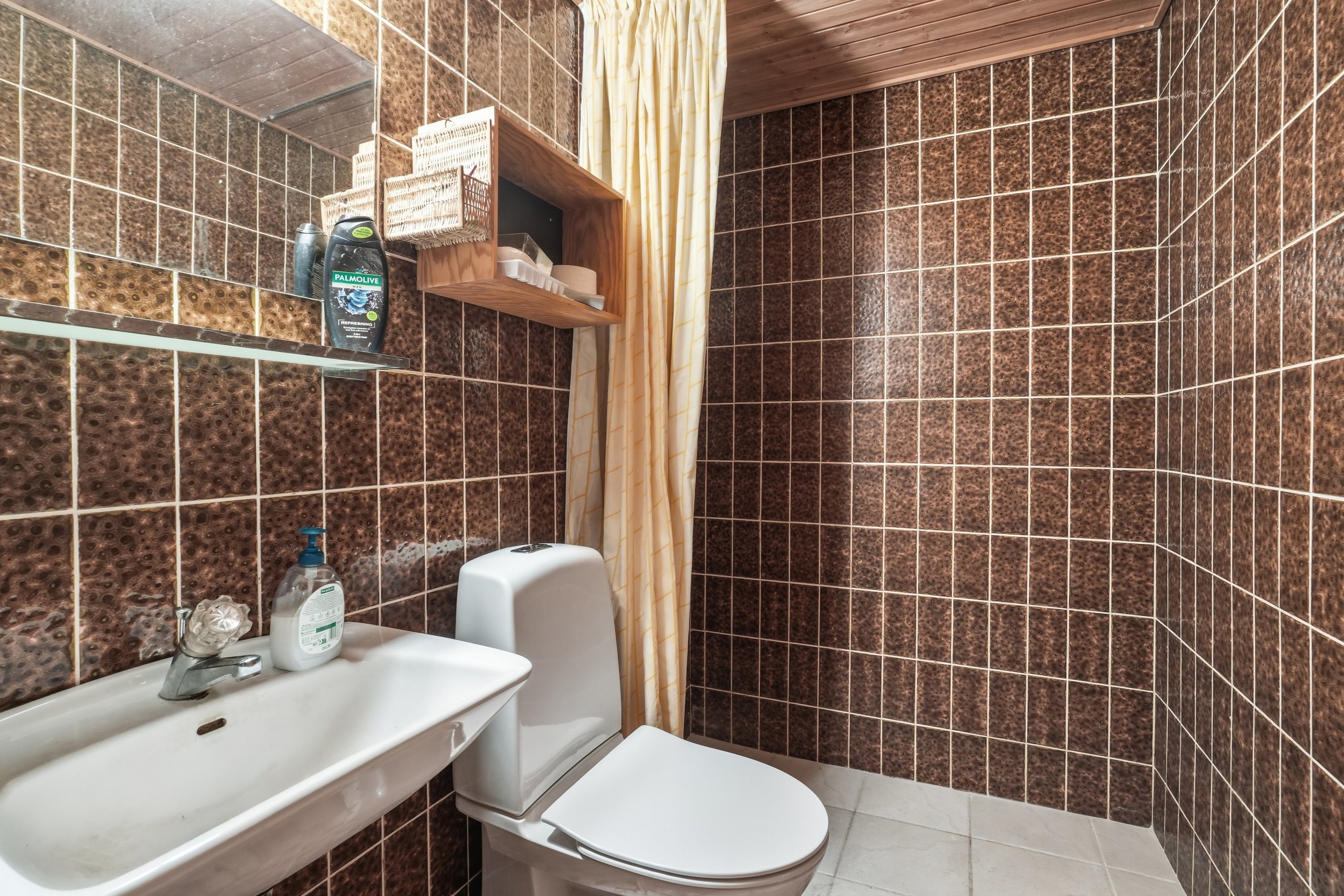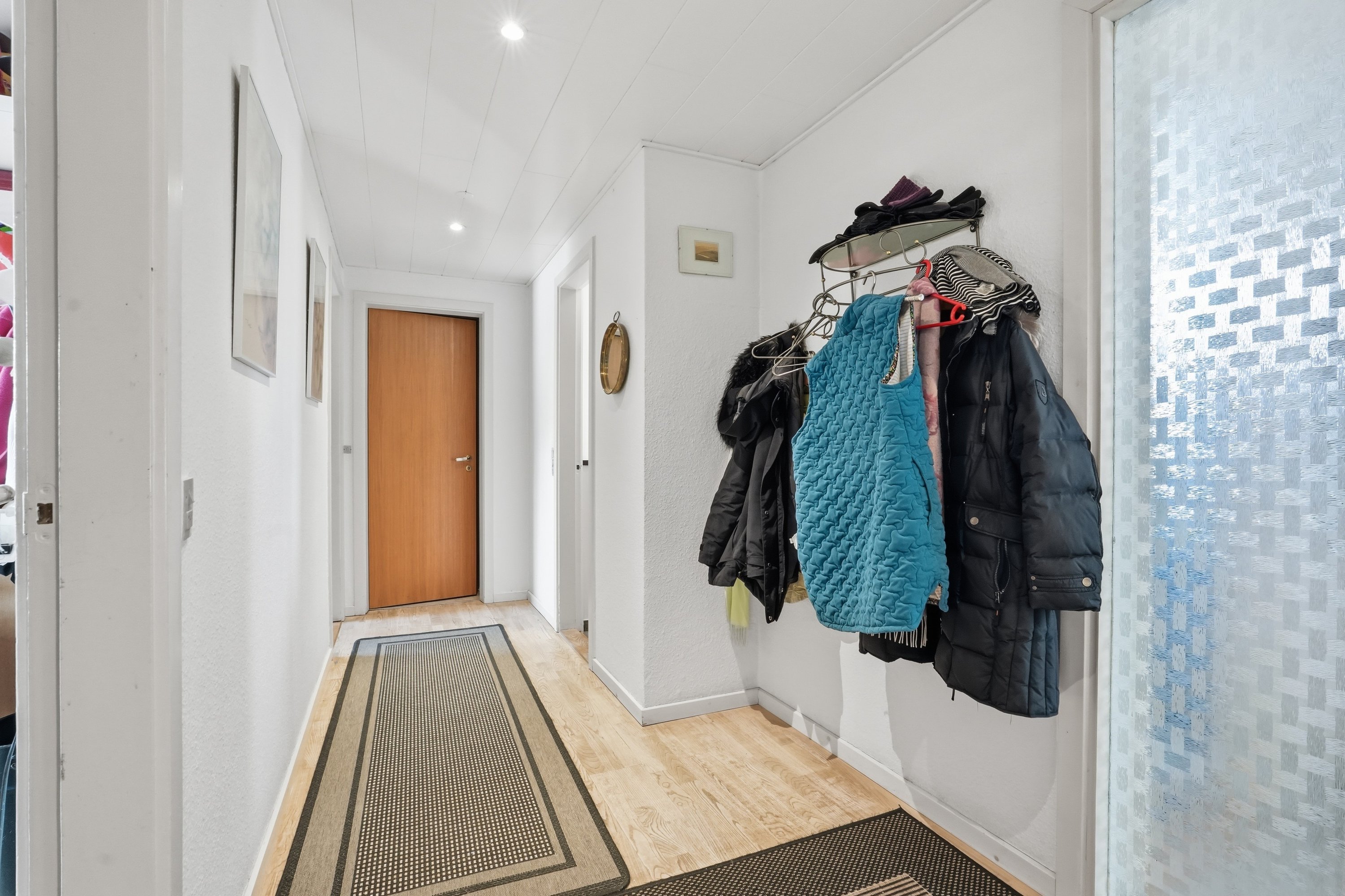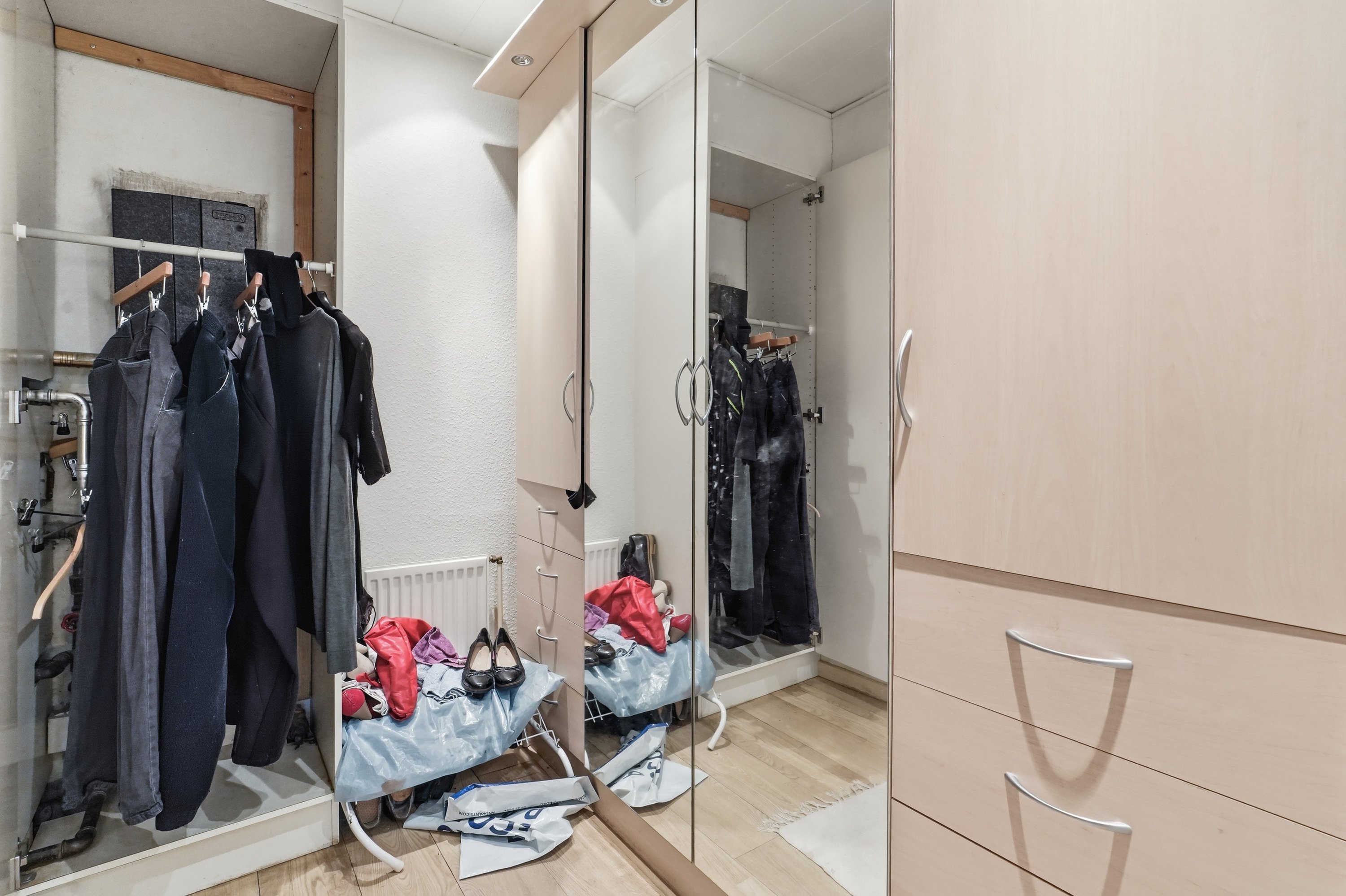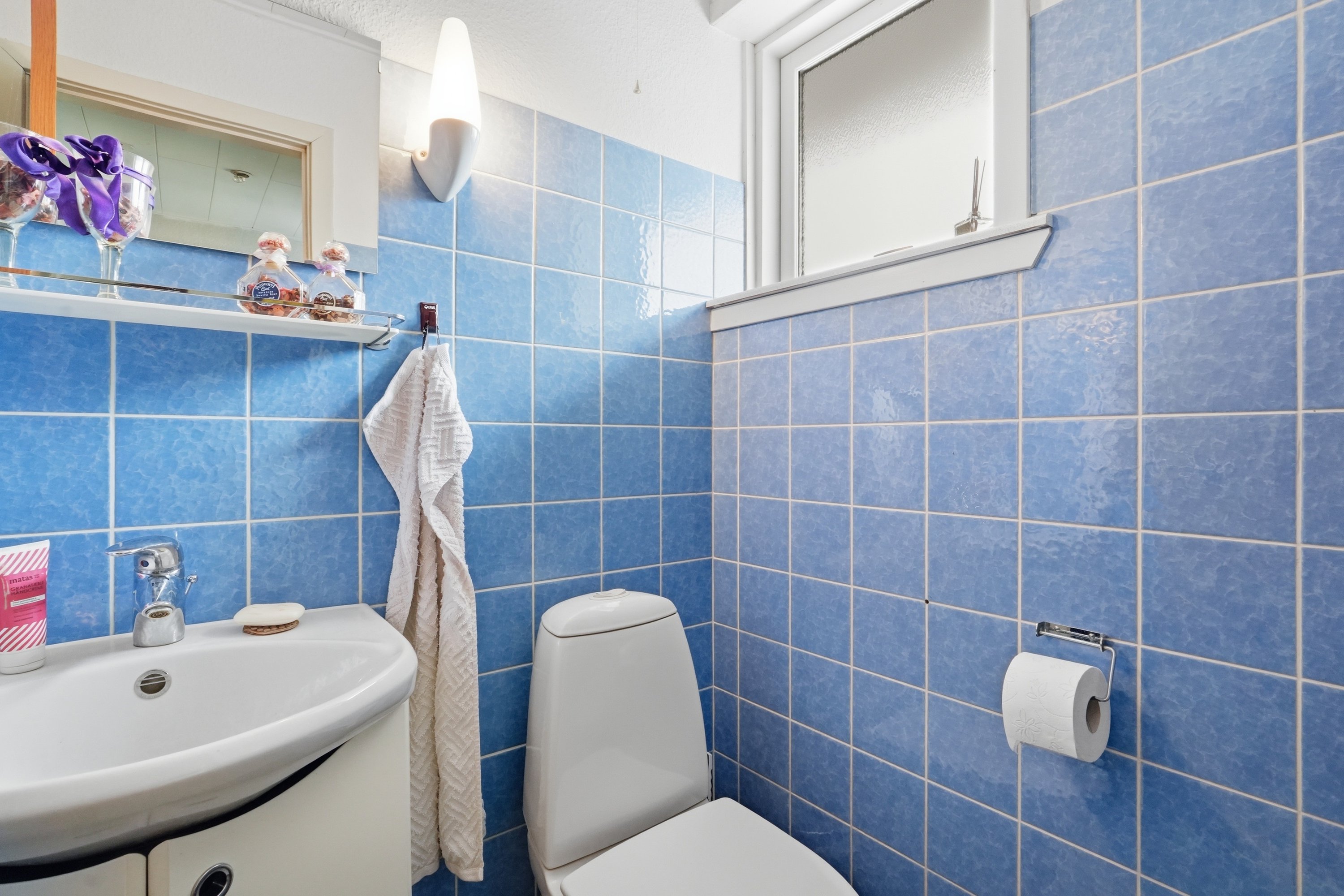 Indretningen byder på en nydelig gæsteentré, hvorfra der er en gæstetoilet. Fra fordelingsgangen er der to store værelser, hvortil der er et walk-in-closet. Badeværelset er lyst og rummeligt – her er der naturligvis gulvvarme og bruseniche.