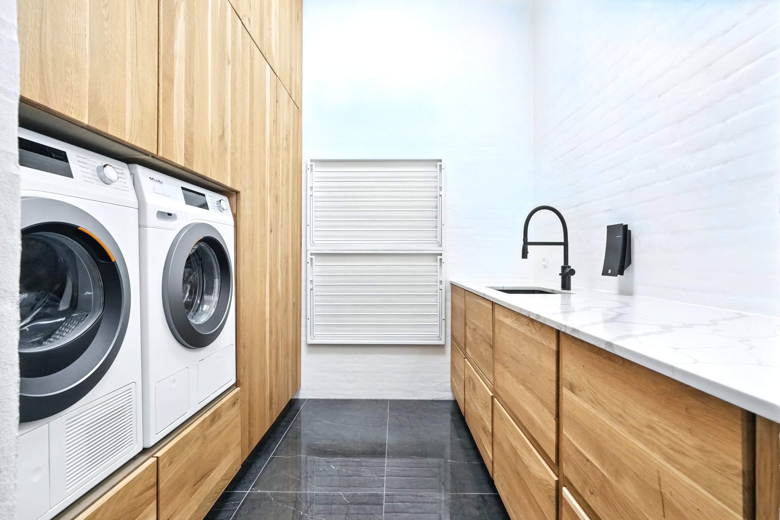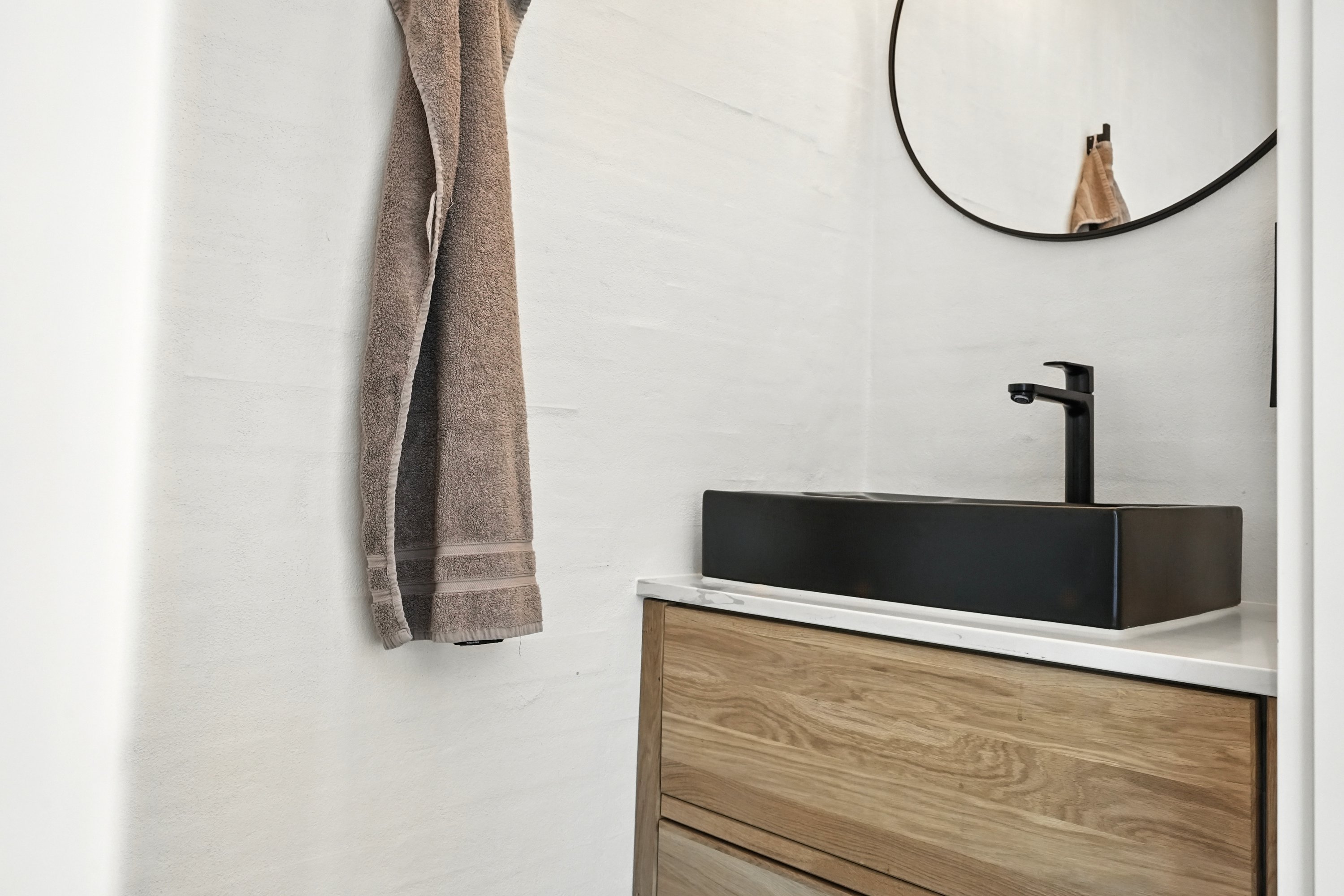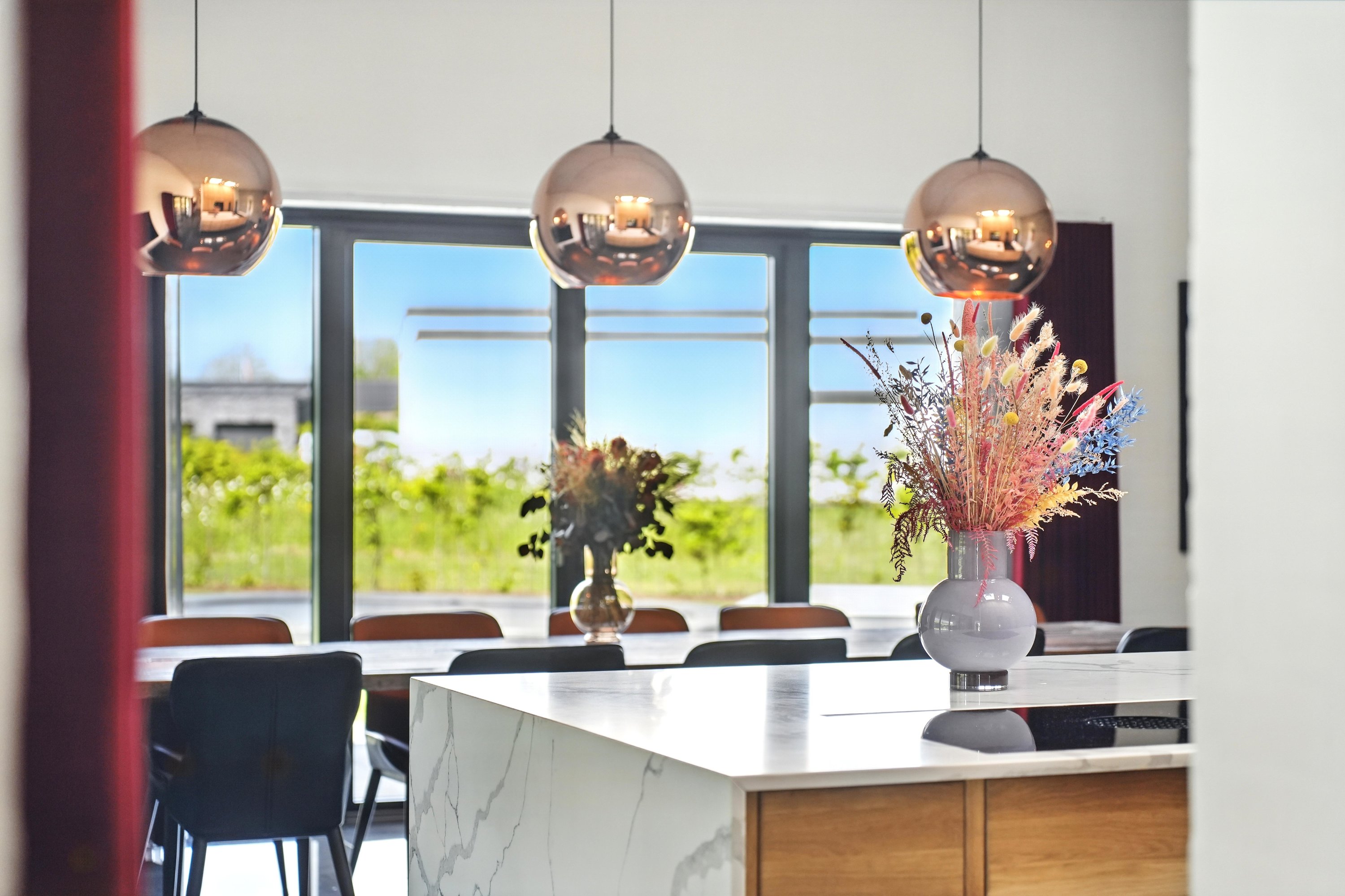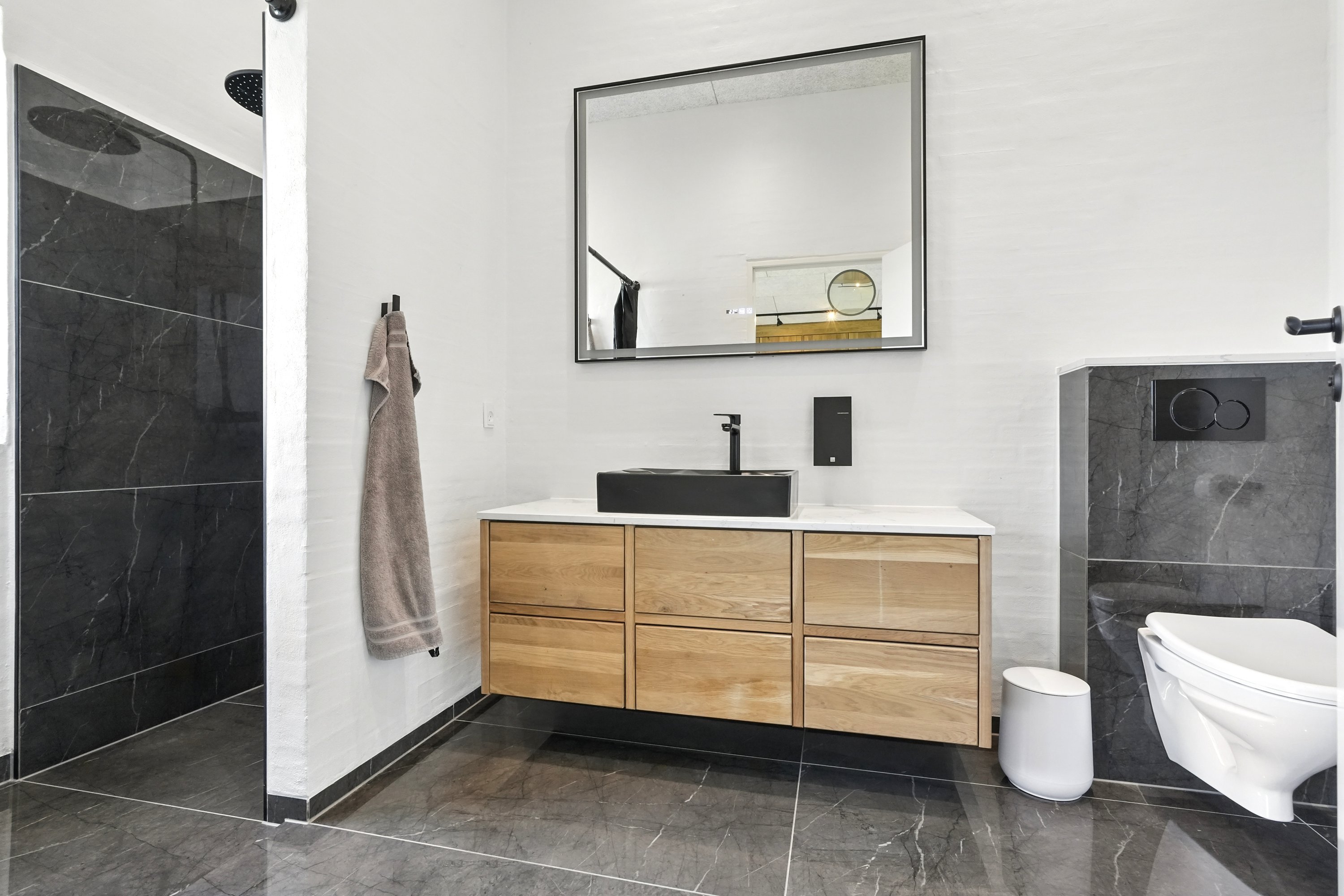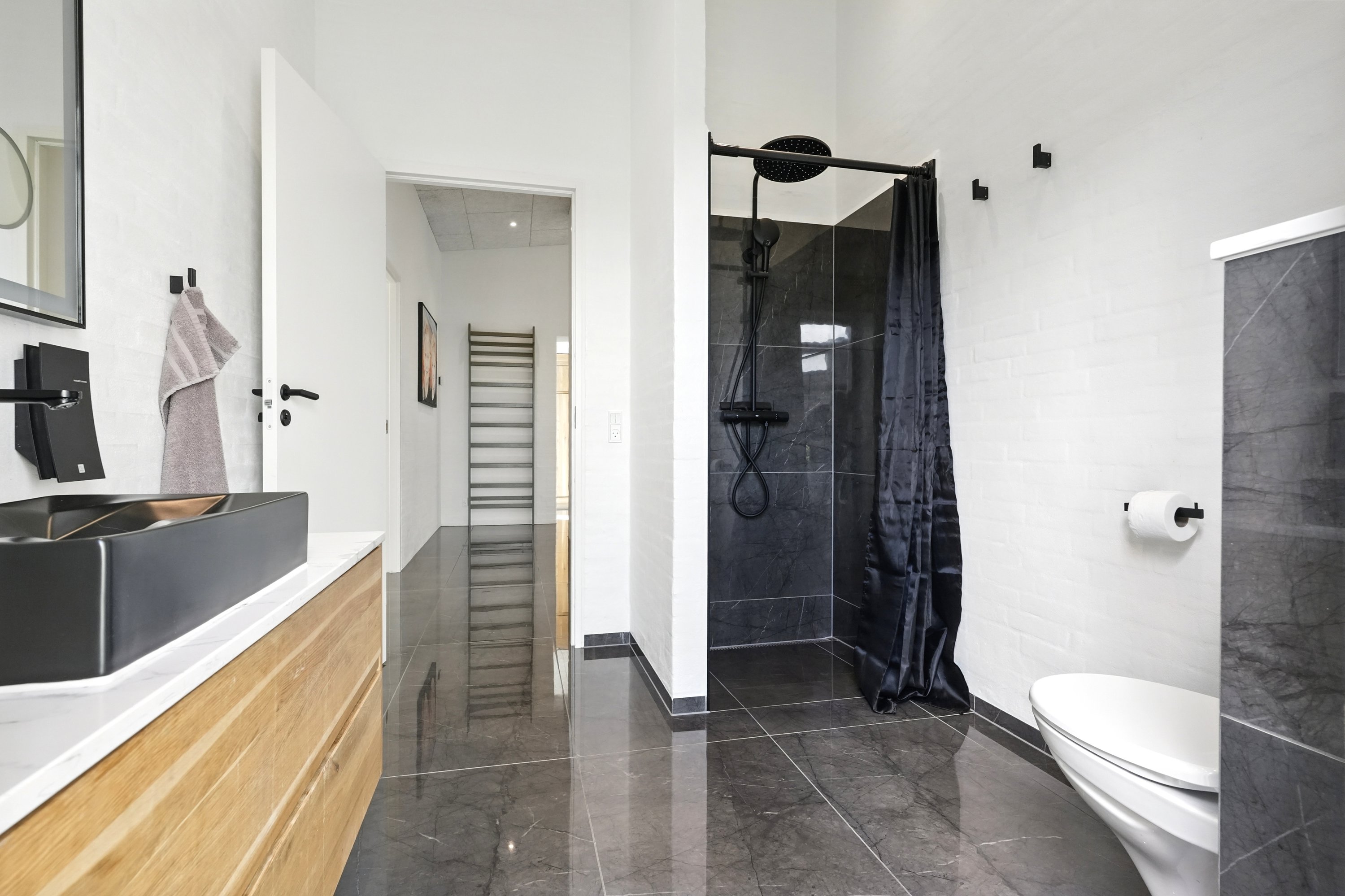 Boligen er arkitekttegnet og indrettet med massive egetræsinventarer gennem hele huset, elegant tilpasset loftshøjde for en harmonisk og gennemført stil. Det store, åbne køkken-alrum er husets naturlige samlingspunkt og ideelt til både hverdagsliv og større sammenkomster. Her er alt i hårde hvidevarer, herunder tre ovne, indbygningskaffemaskine, skuffeopvaskemaskine og Quooker med Cube. Bryggerset er smart gemt bag køkkenet, så funktionalitet og æstetik forenes på fineste vis.