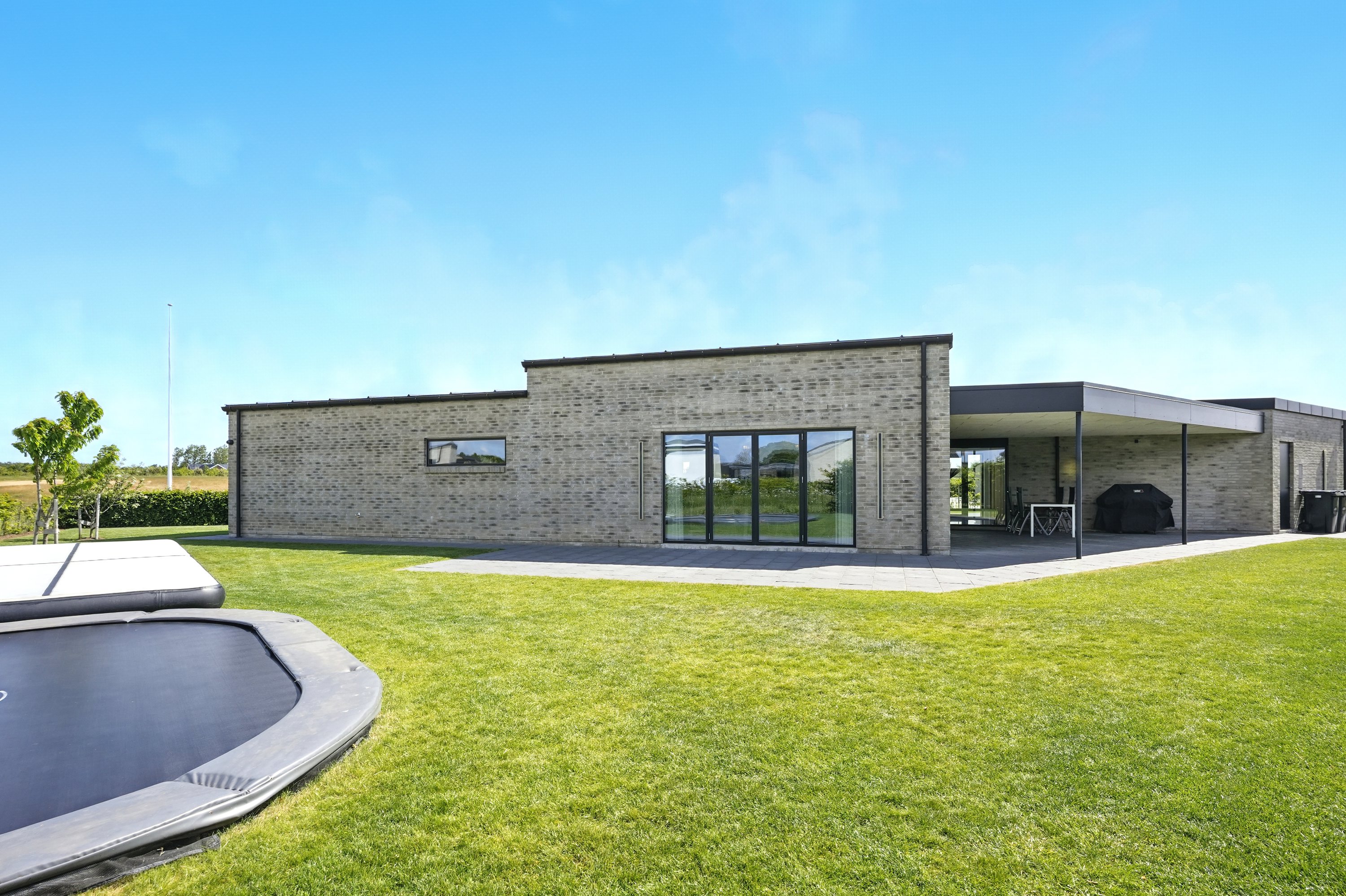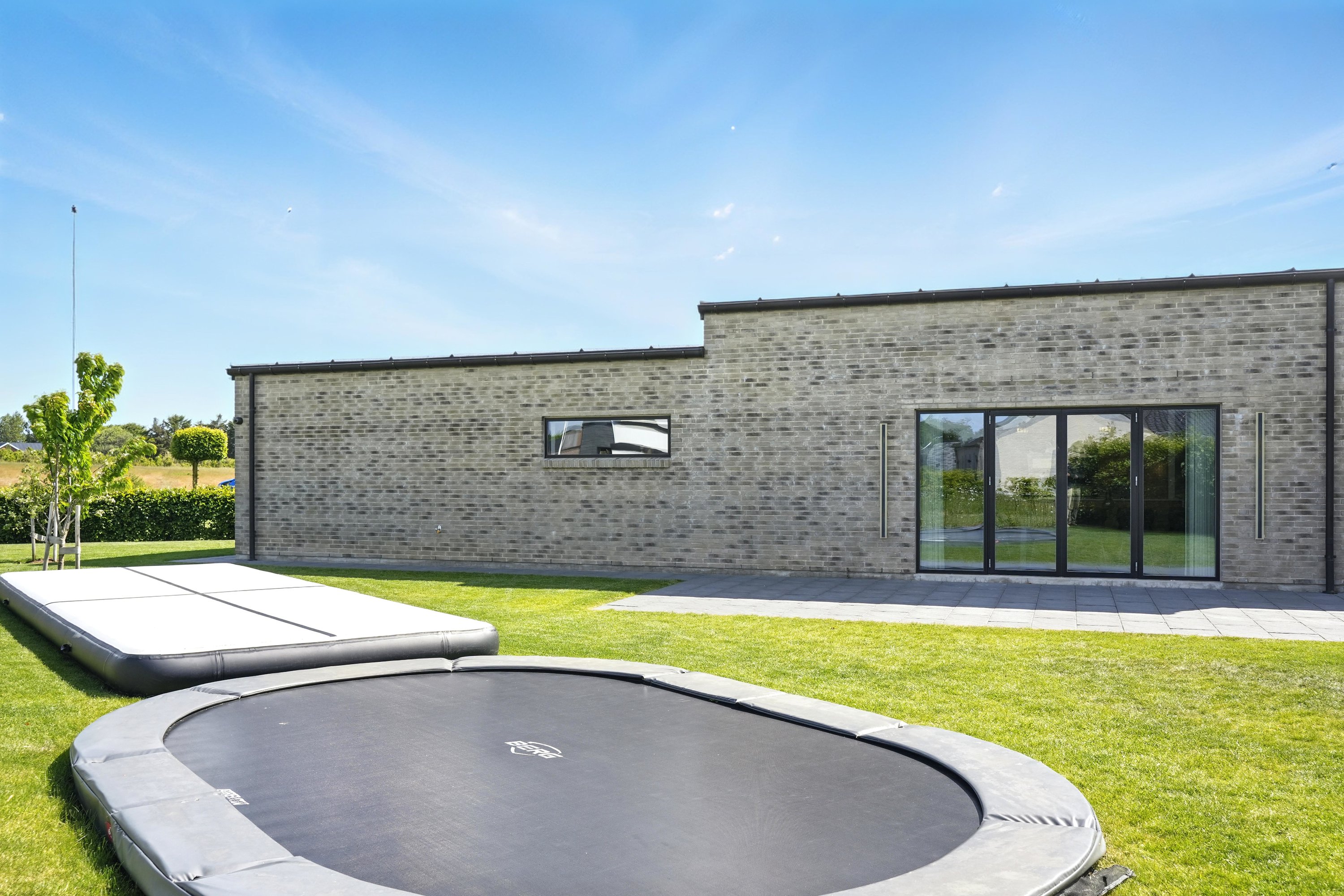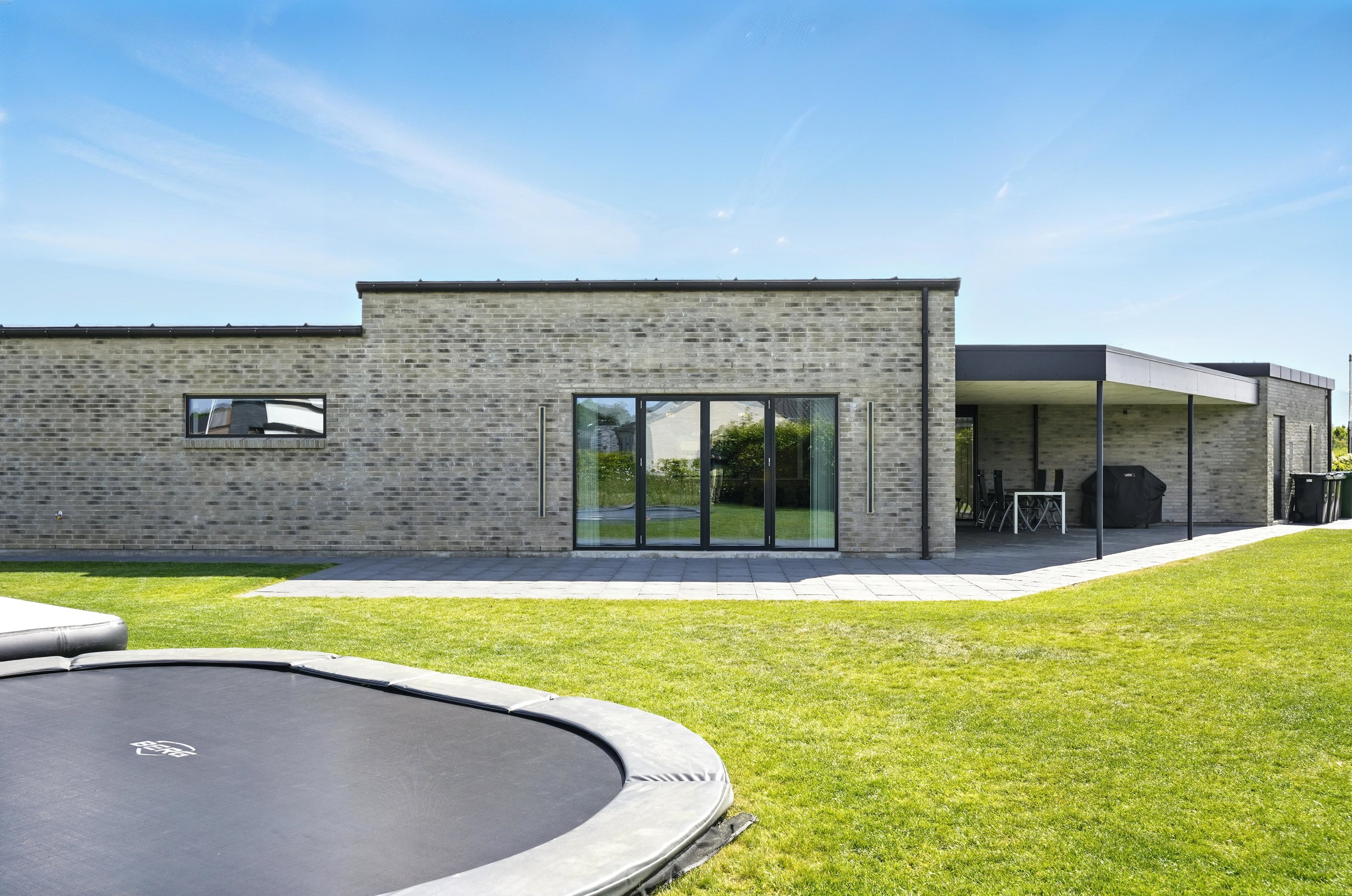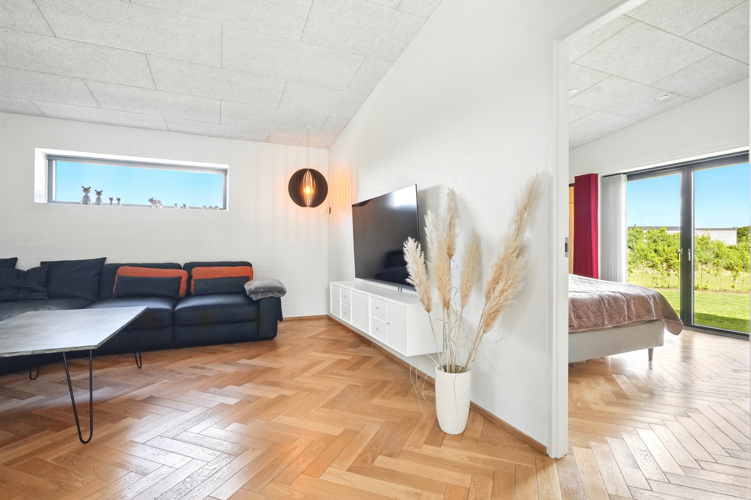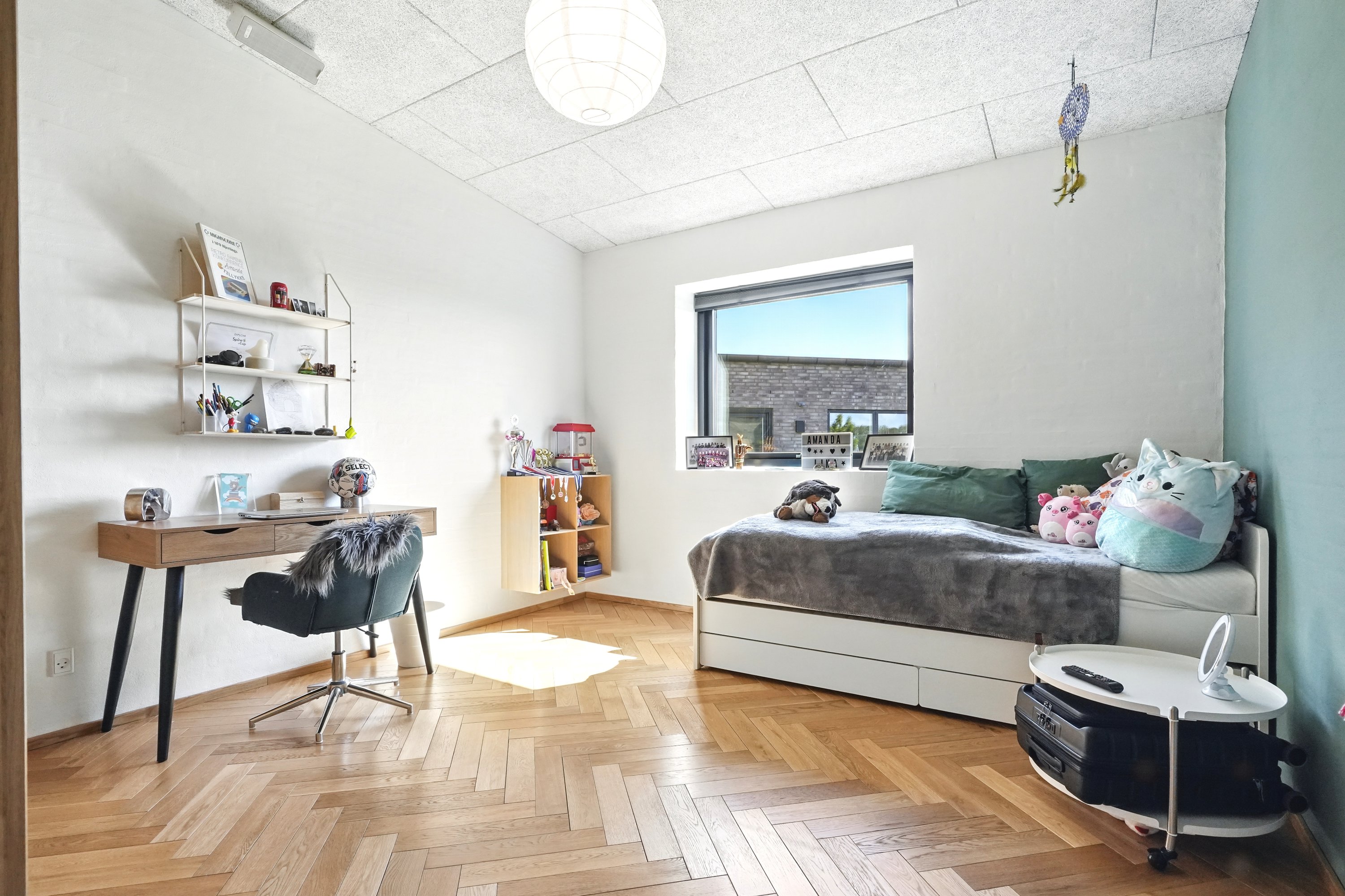 Planløsningen er gennemtænkt med en separat børneafdeling og en isoleret forældreafdeling, hvilket giver både ro og privatliv. Huset er desuden bygget med fokus på god akustik og optimal isolering, så det er køligt om sommeren og kræver minimal vedligeholdelse.