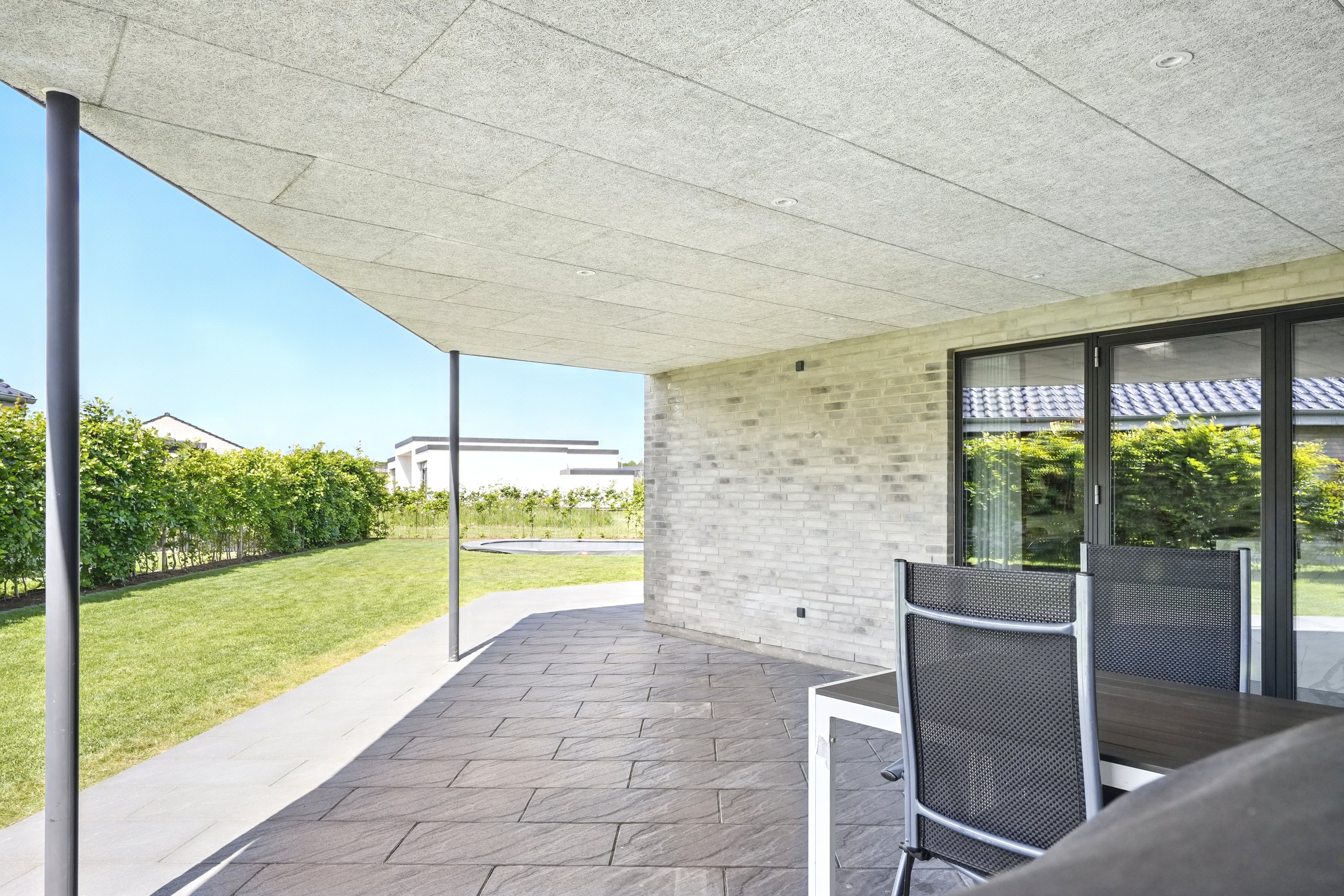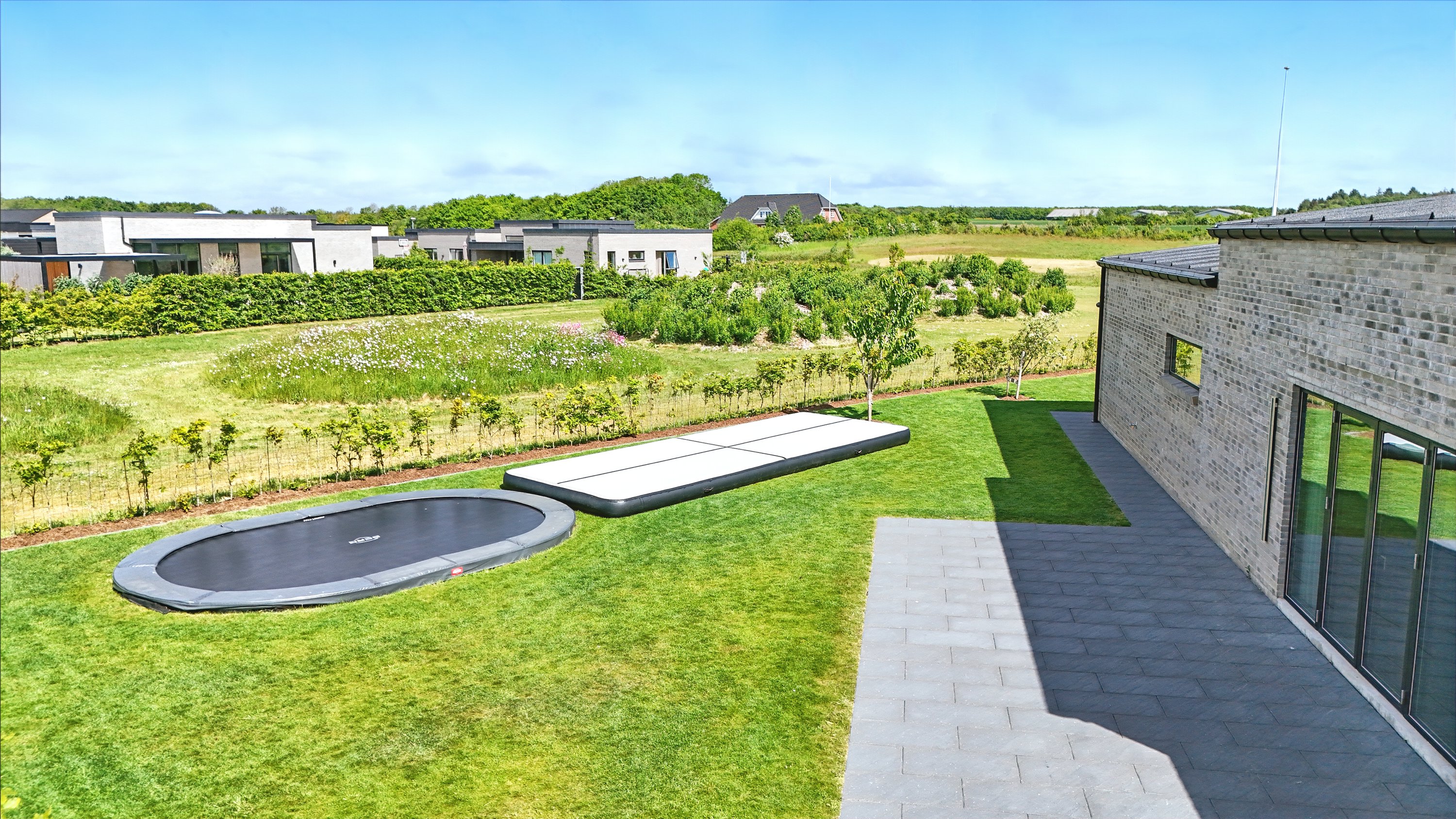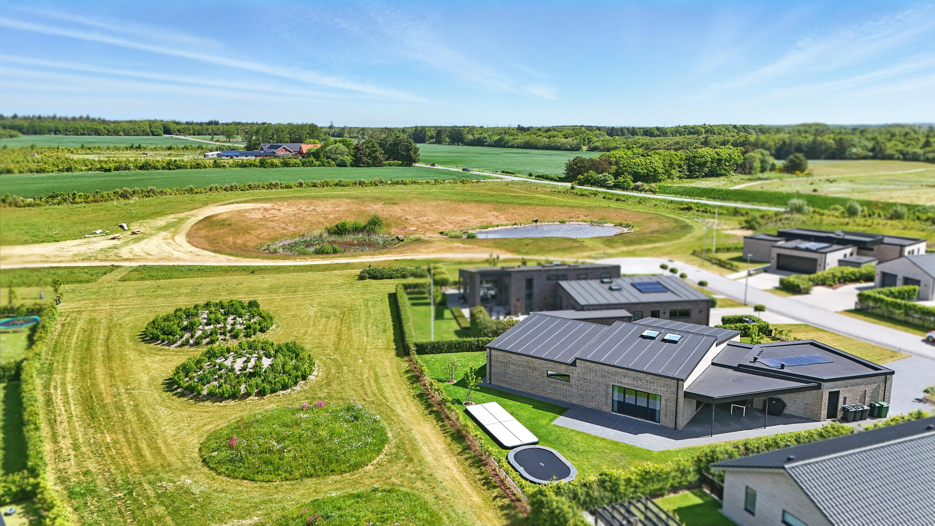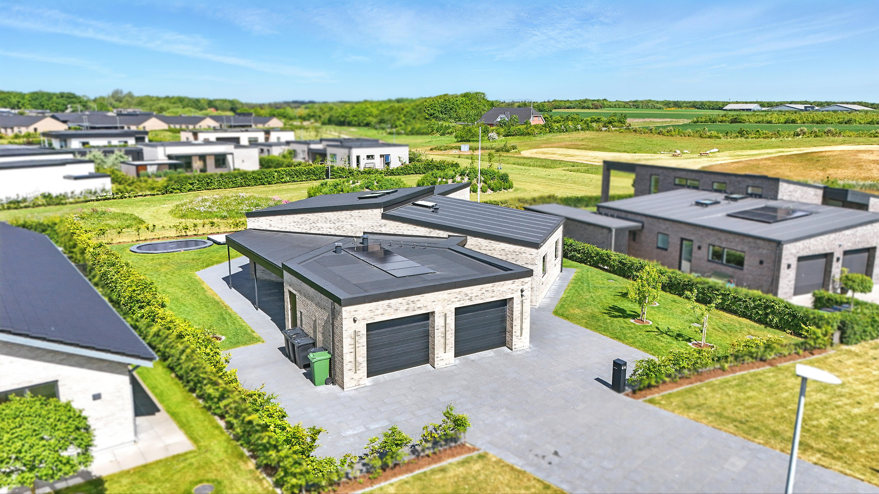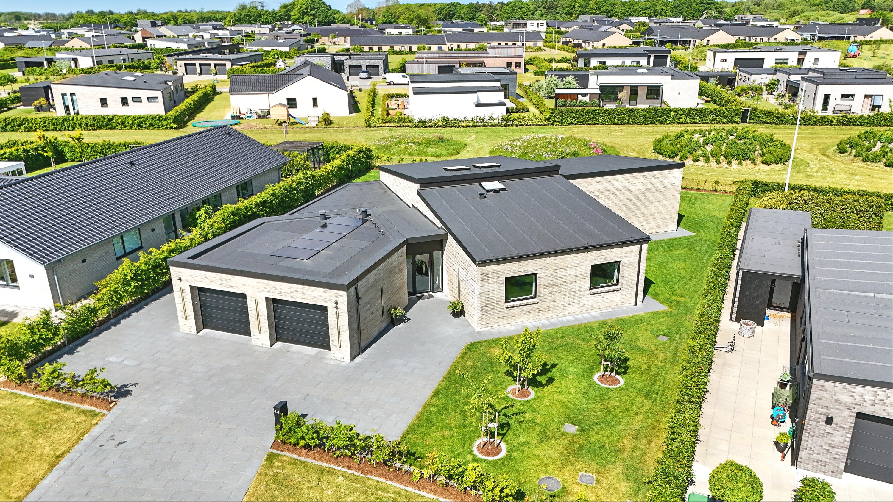 Planløsningen er gennemtænkt med en separat børneafdeling og en isoleret forældreafdeling, hvilket giver både ro og privatliv. Huset er desuden bygget med fokus på god akustik og optimal isolering, så det er køligt om sommeren og kræver minimal vedligeholdelse.