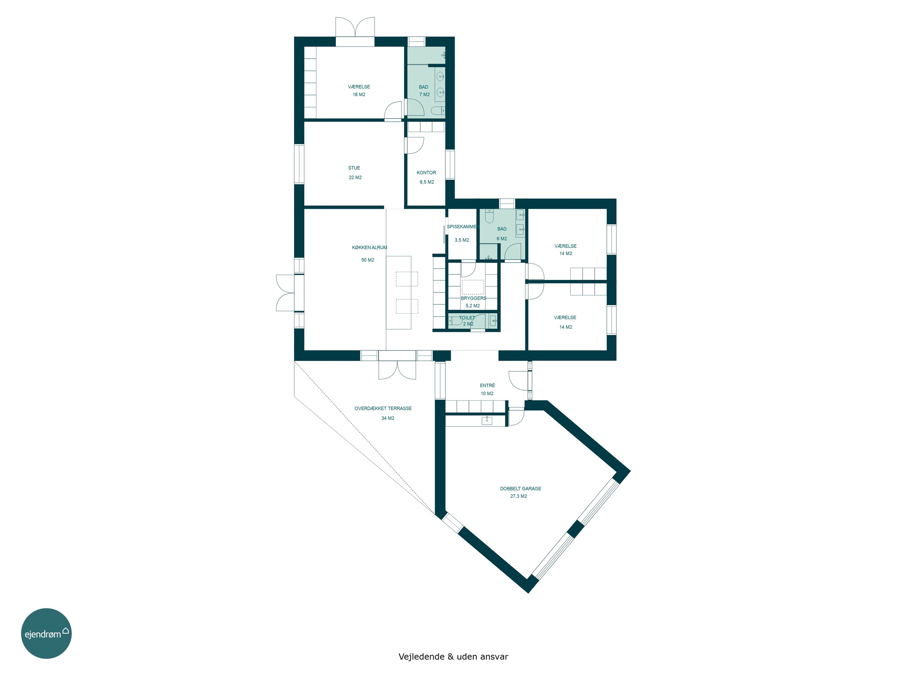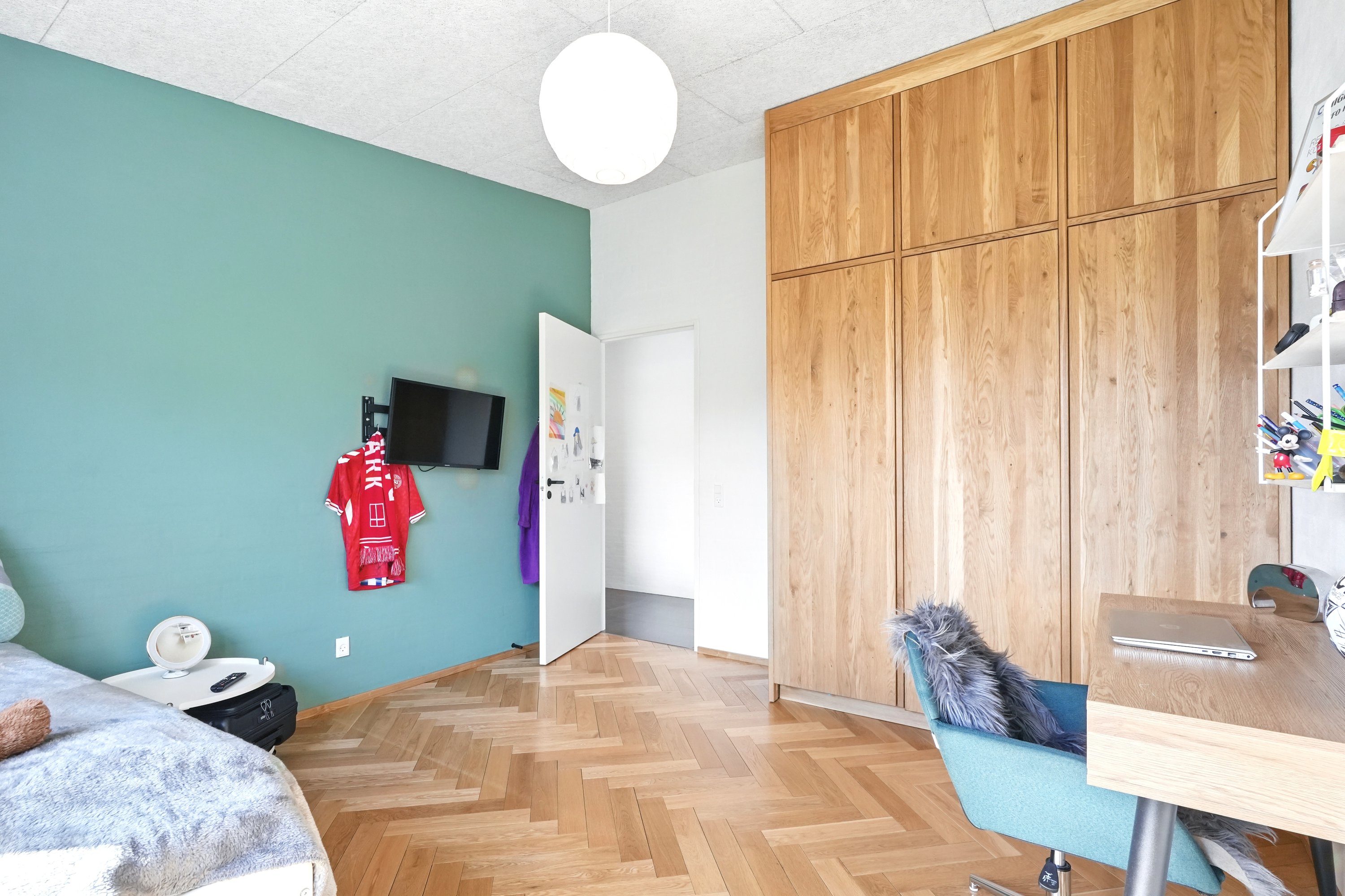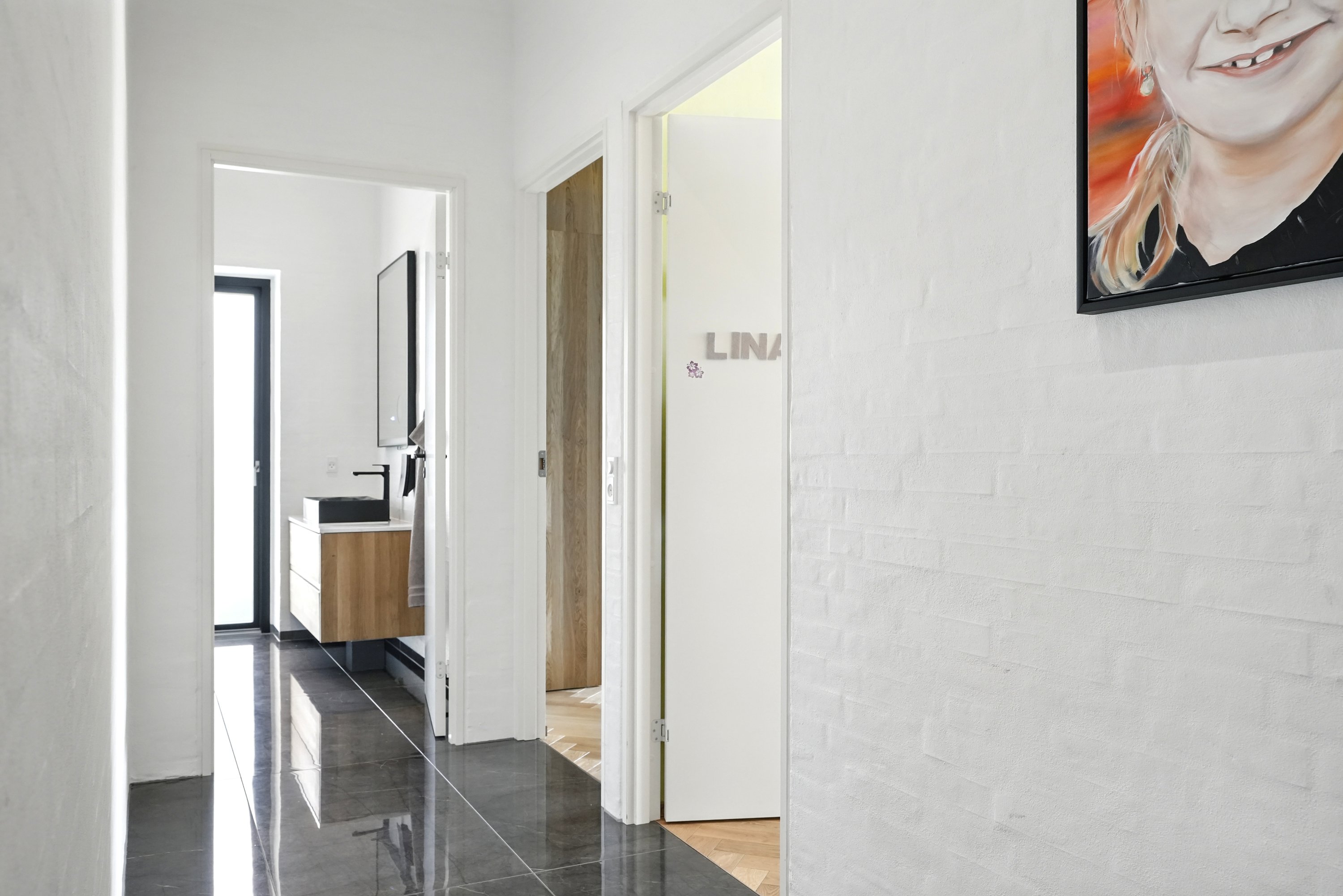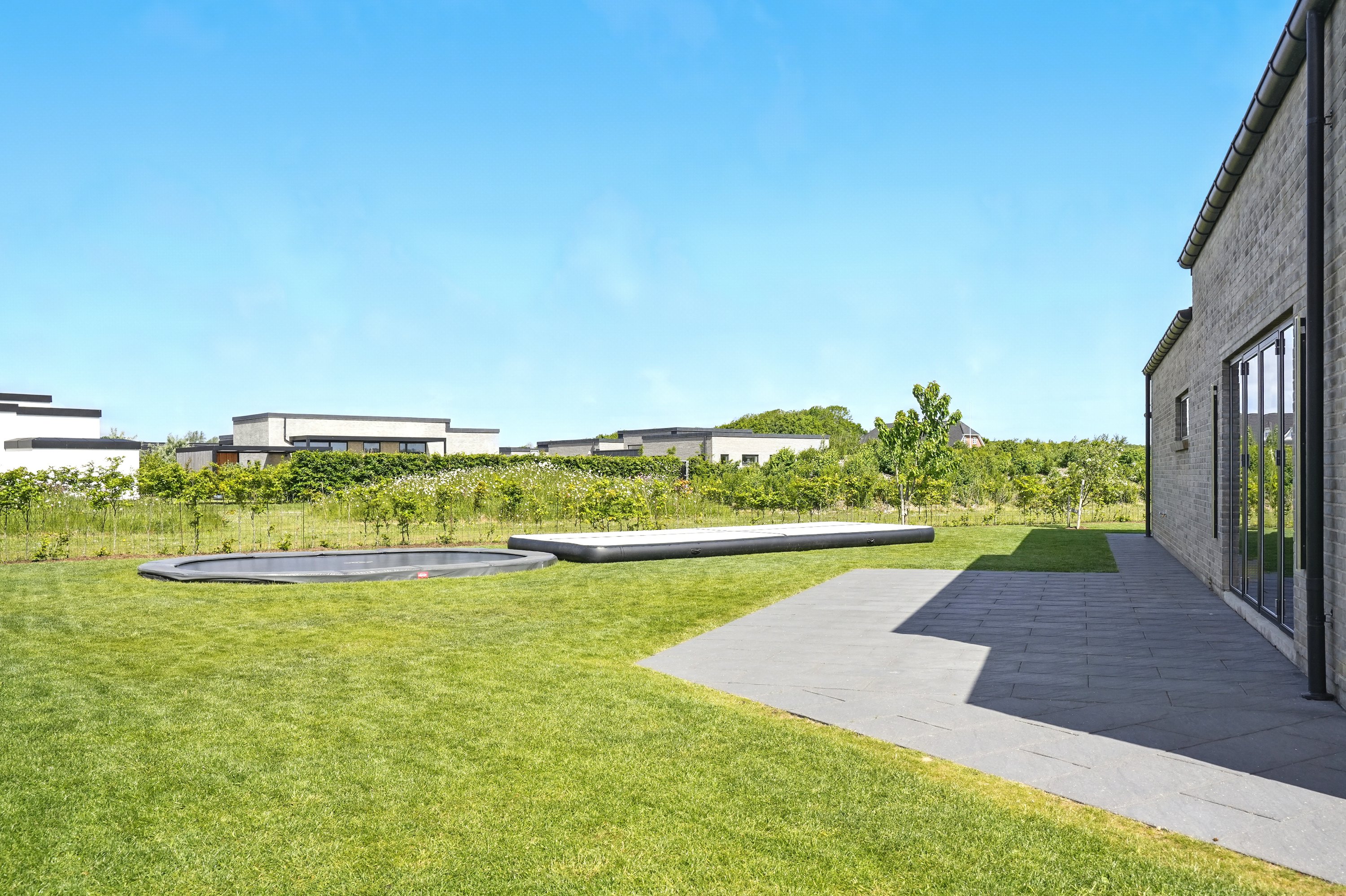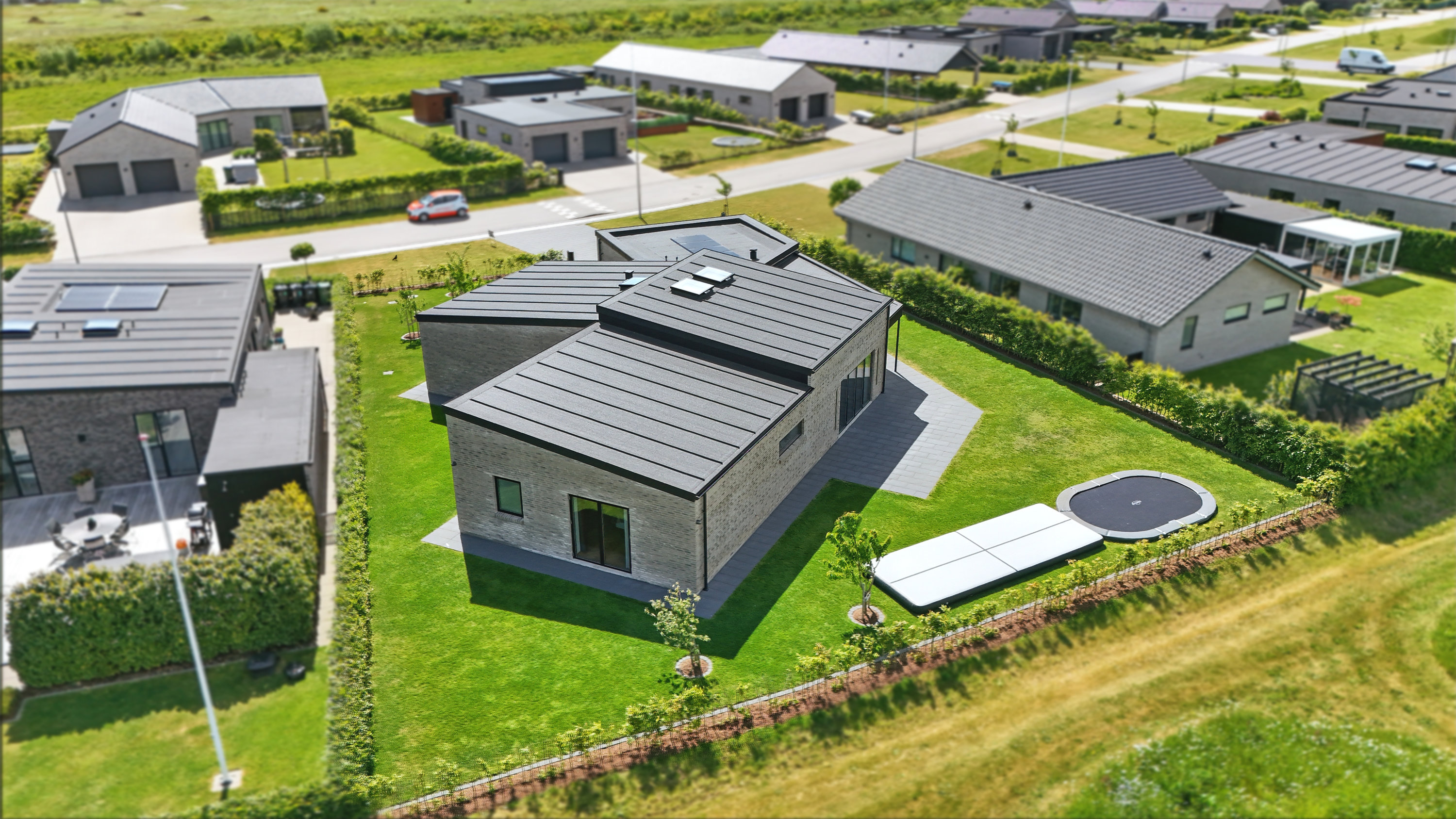 Planløsningen er gennemtænkt med en separat børneafdeling og en isoleret forældreafdeling, hvilket giver både ro og privatliv. Huset er desuden bygget med fokus på god akustik og optimal isolering, så det er køligt om sommeren og kræver minimal vedligeholdelse.