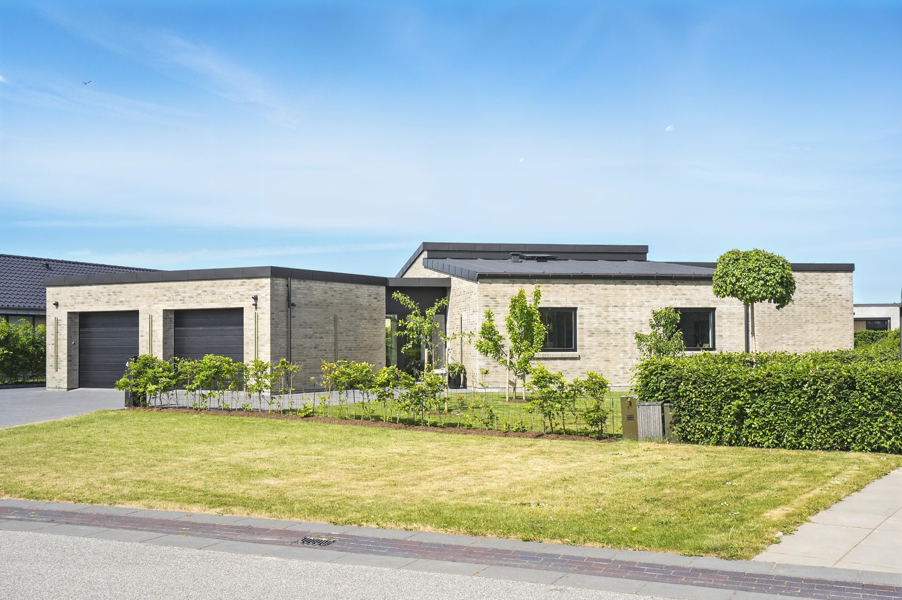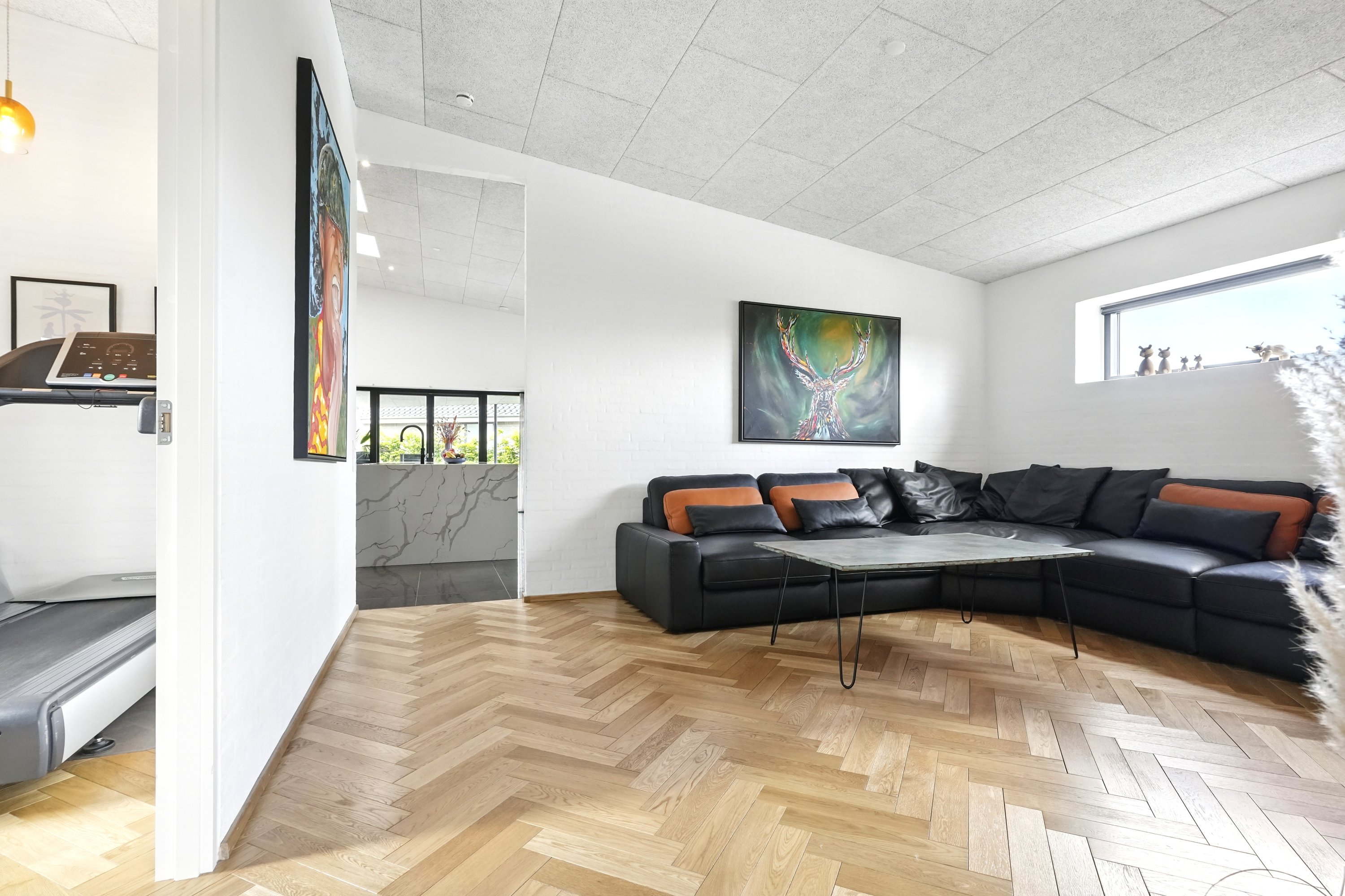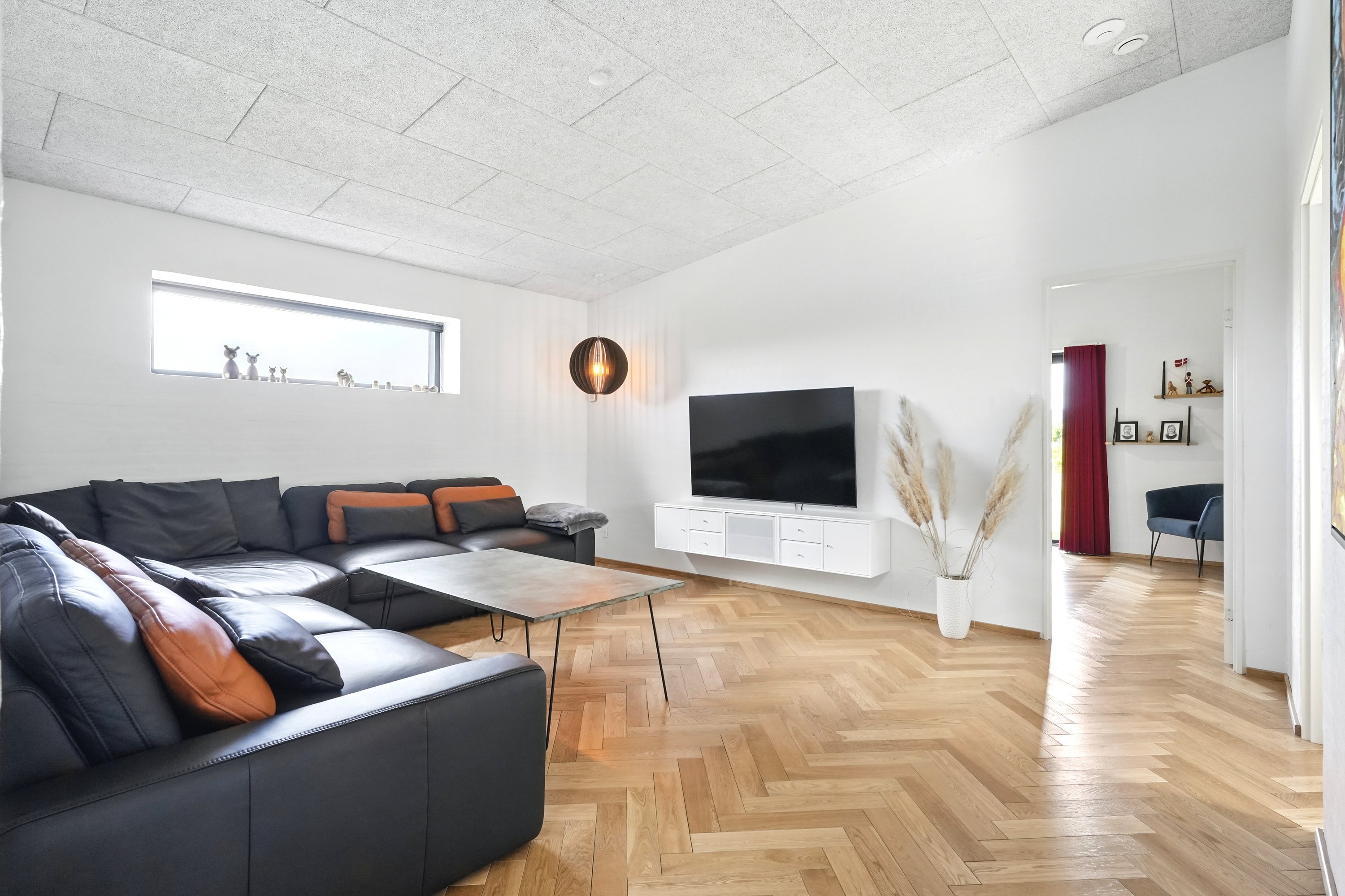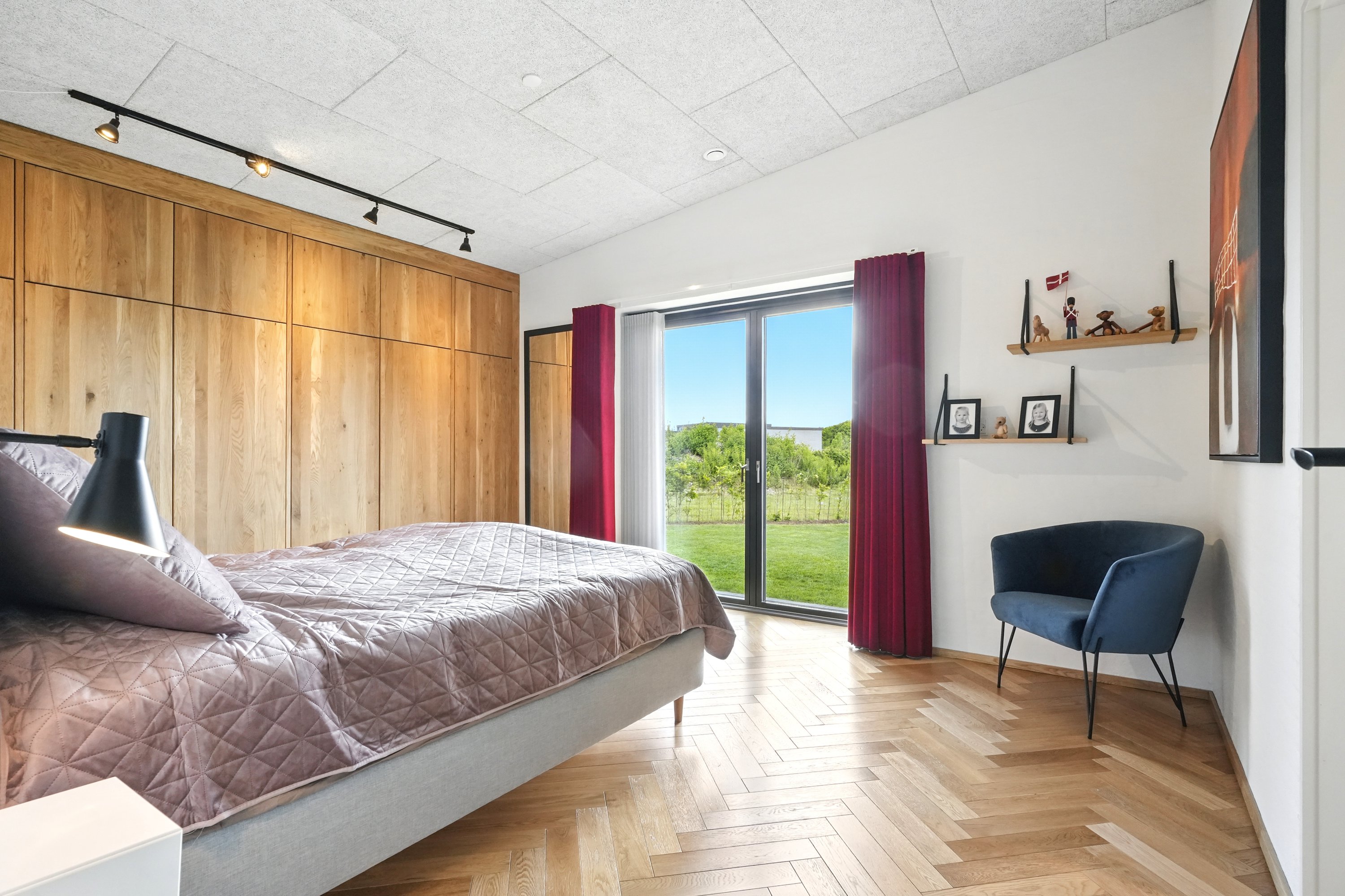 Udenfor venter en skøn, overdækket terrasse og en stor grund på 948 m², hvor både afslapning og udeliv kan nydes i fulde drag. Til boligen hører en integreret garage på hele 61 m² med god plads til både bil og opbevaring. Værelser og stue er belagt med eksklusive sildebensgulve i massiv egetræ, som fuldender oplevelsen af et hjem i særklasse.