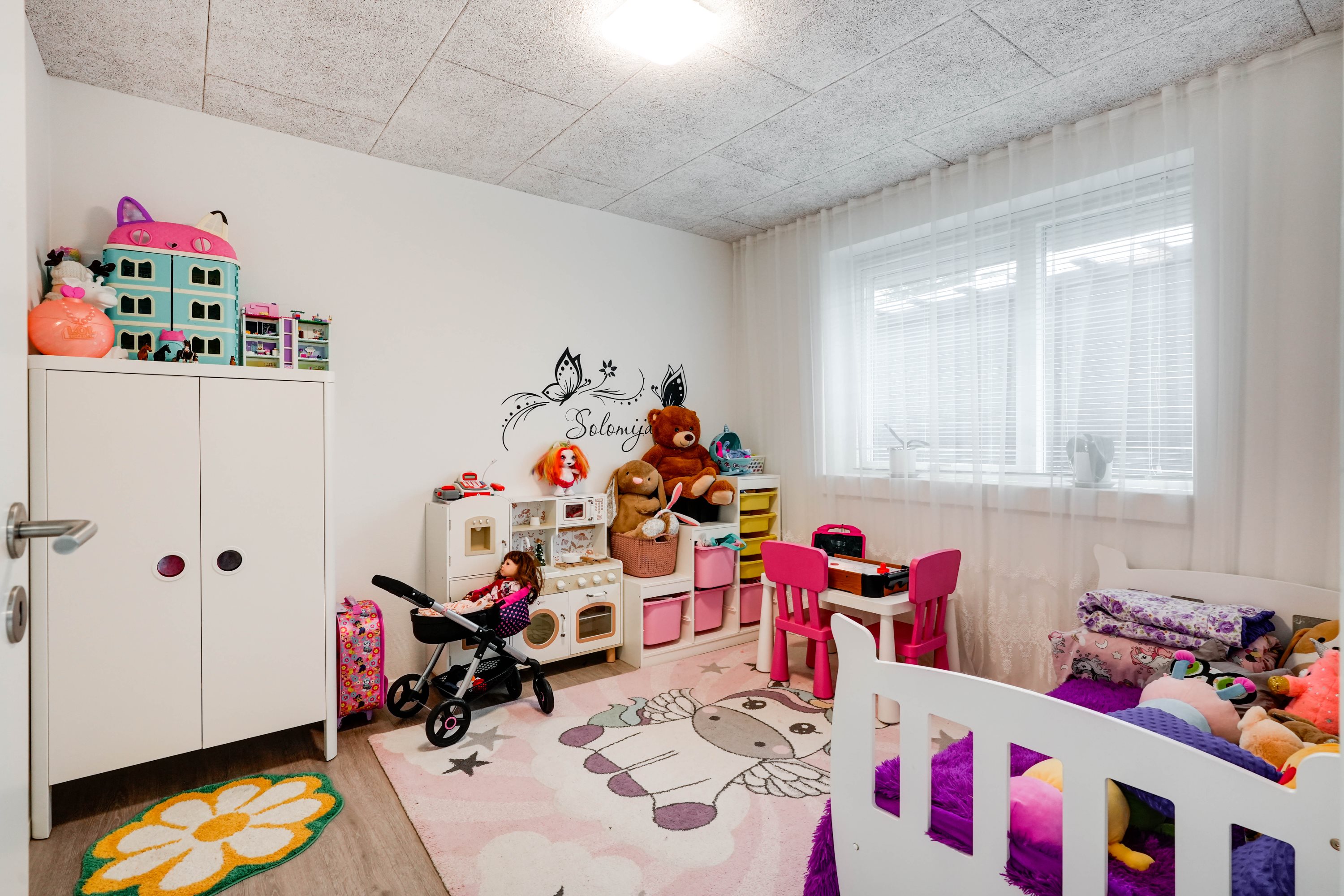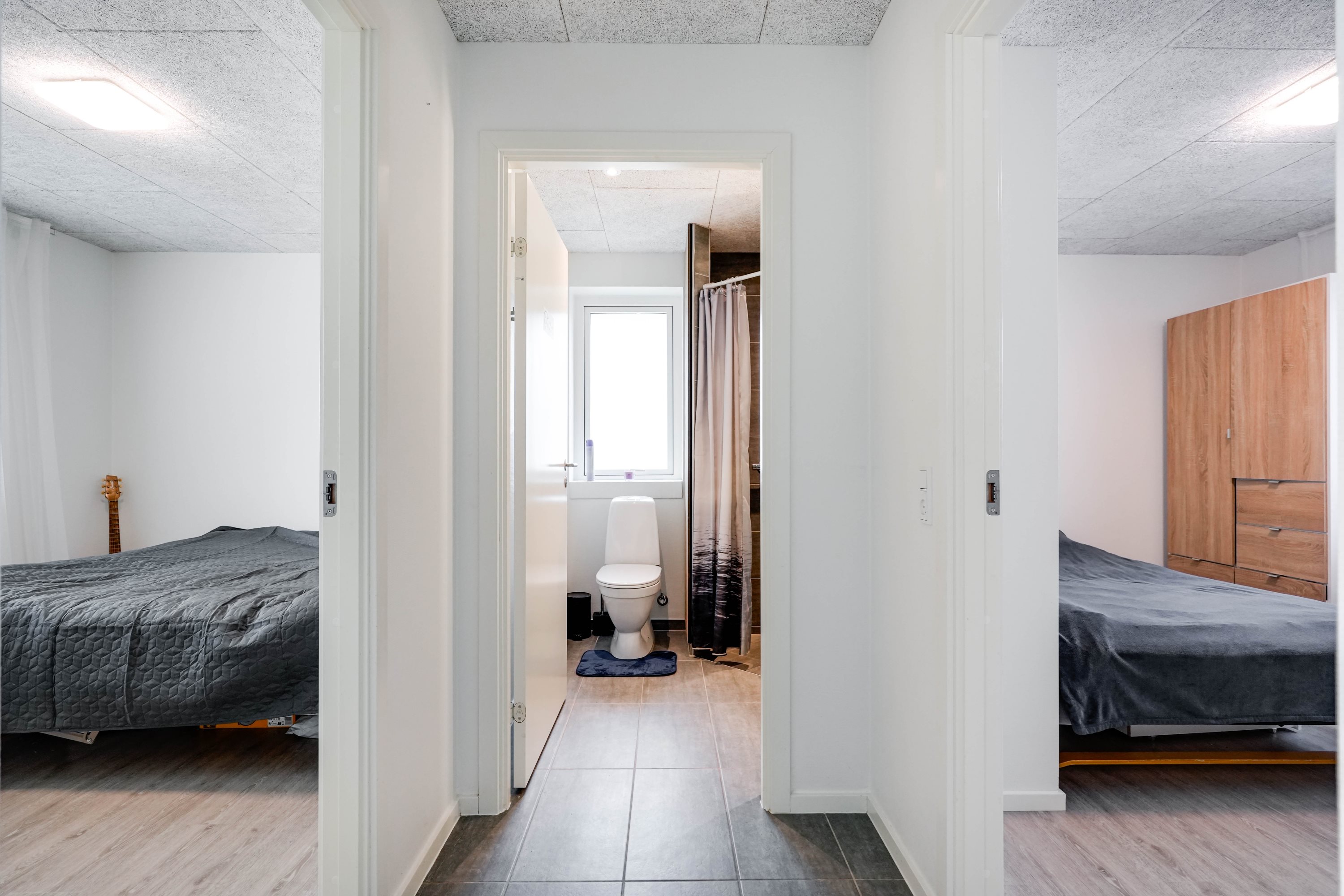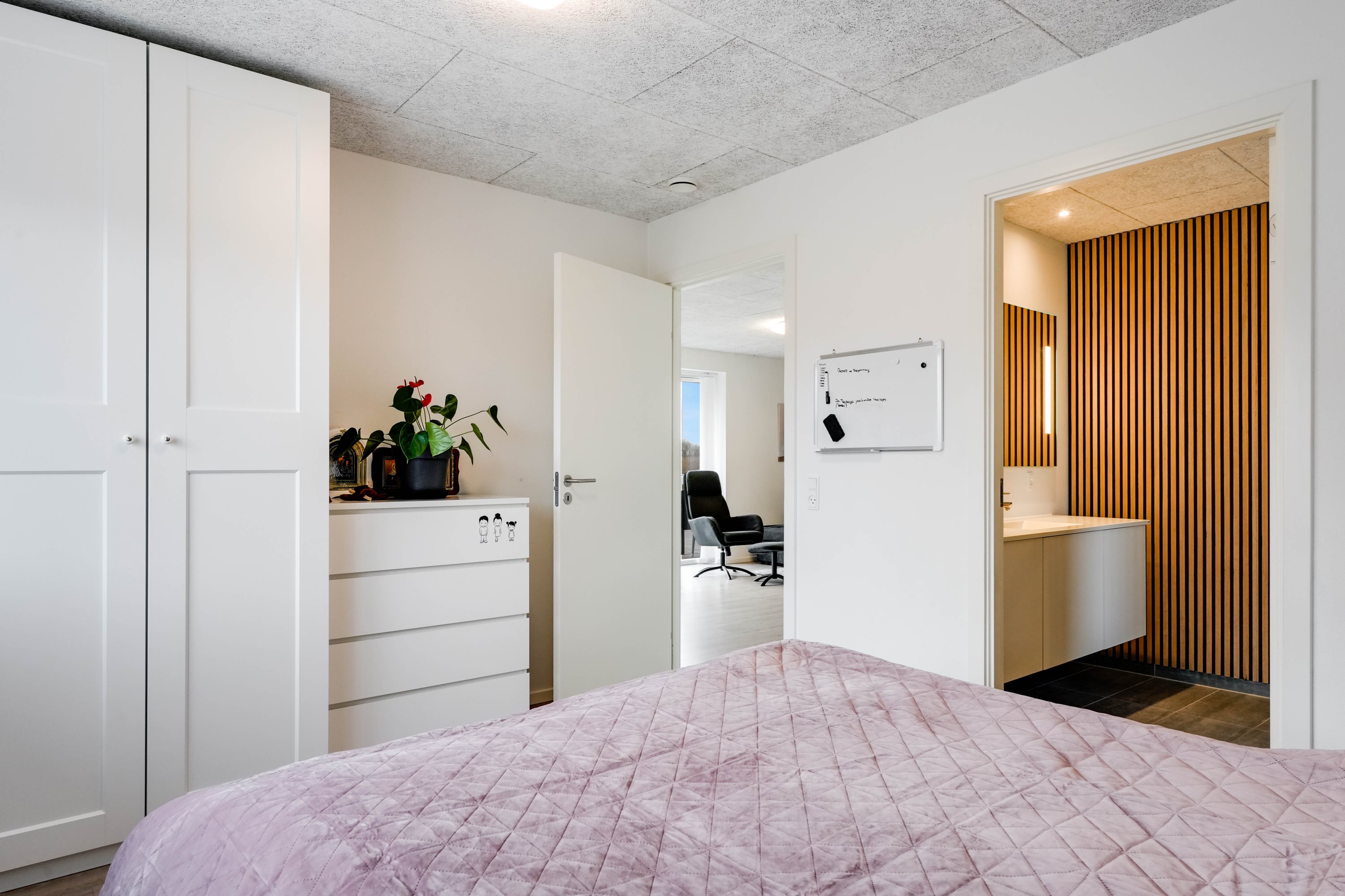 Børneafdelingen rummer to gode værelser og et flot badeværelse med bruseniche. Et ekstra værelse tæt på forældresoveværelset giver mulighed for kontor, gæsteværelse eller børneværelse til de mindste. Forældreafdelingen byder på et rummeligt soveværelse med eget badeværelse, hvor man kan trække sig tilbage og nyde roen.