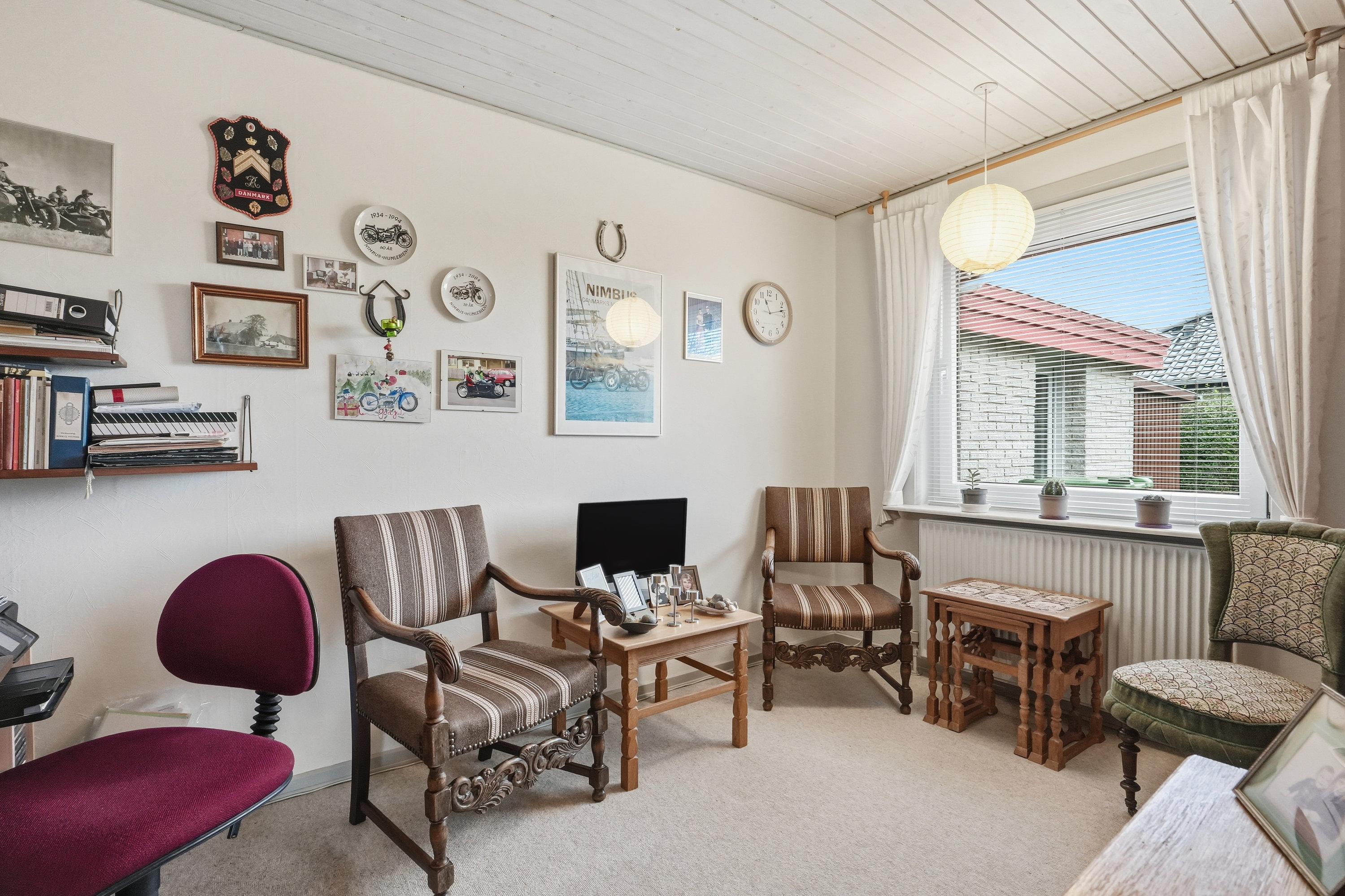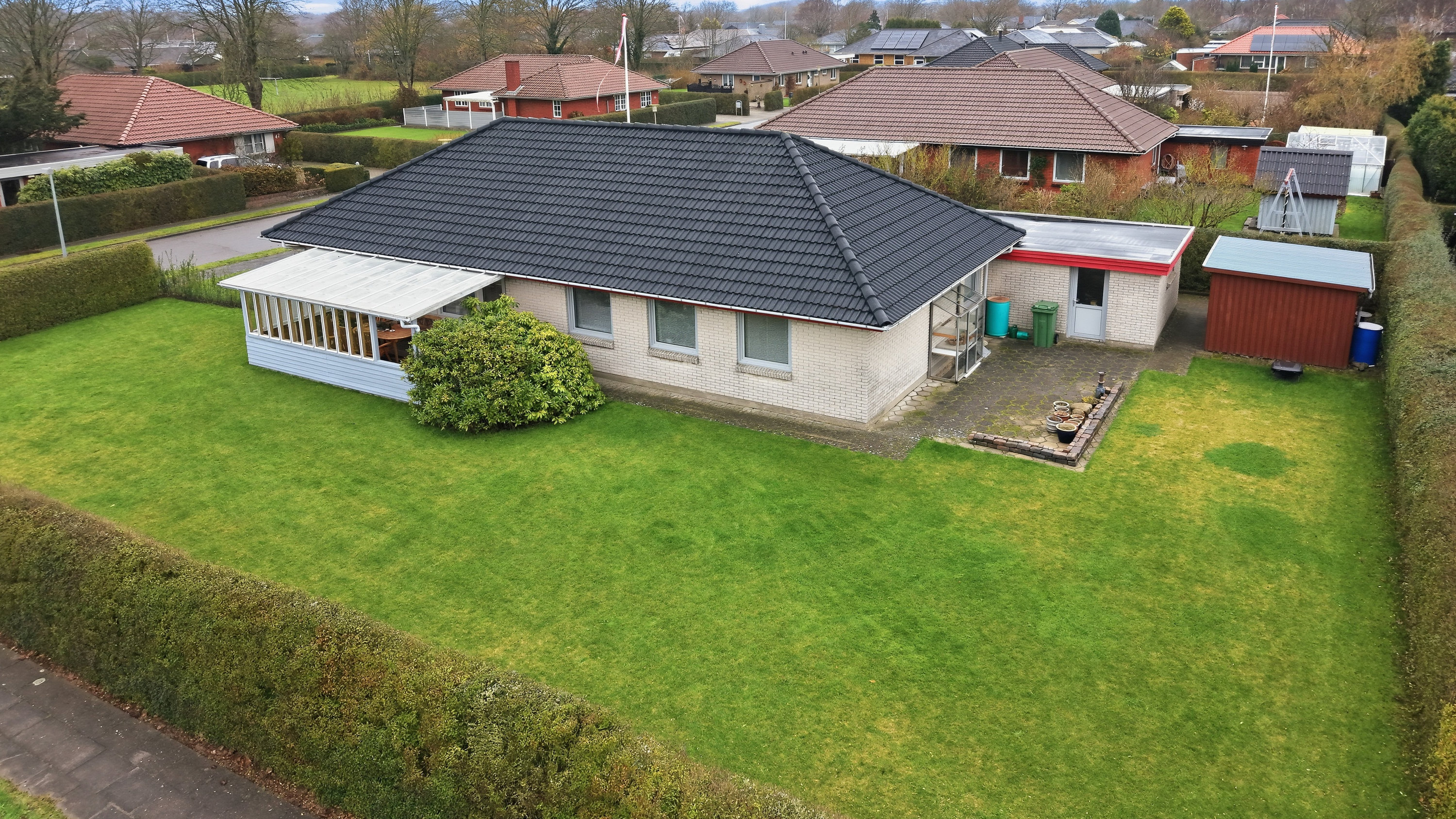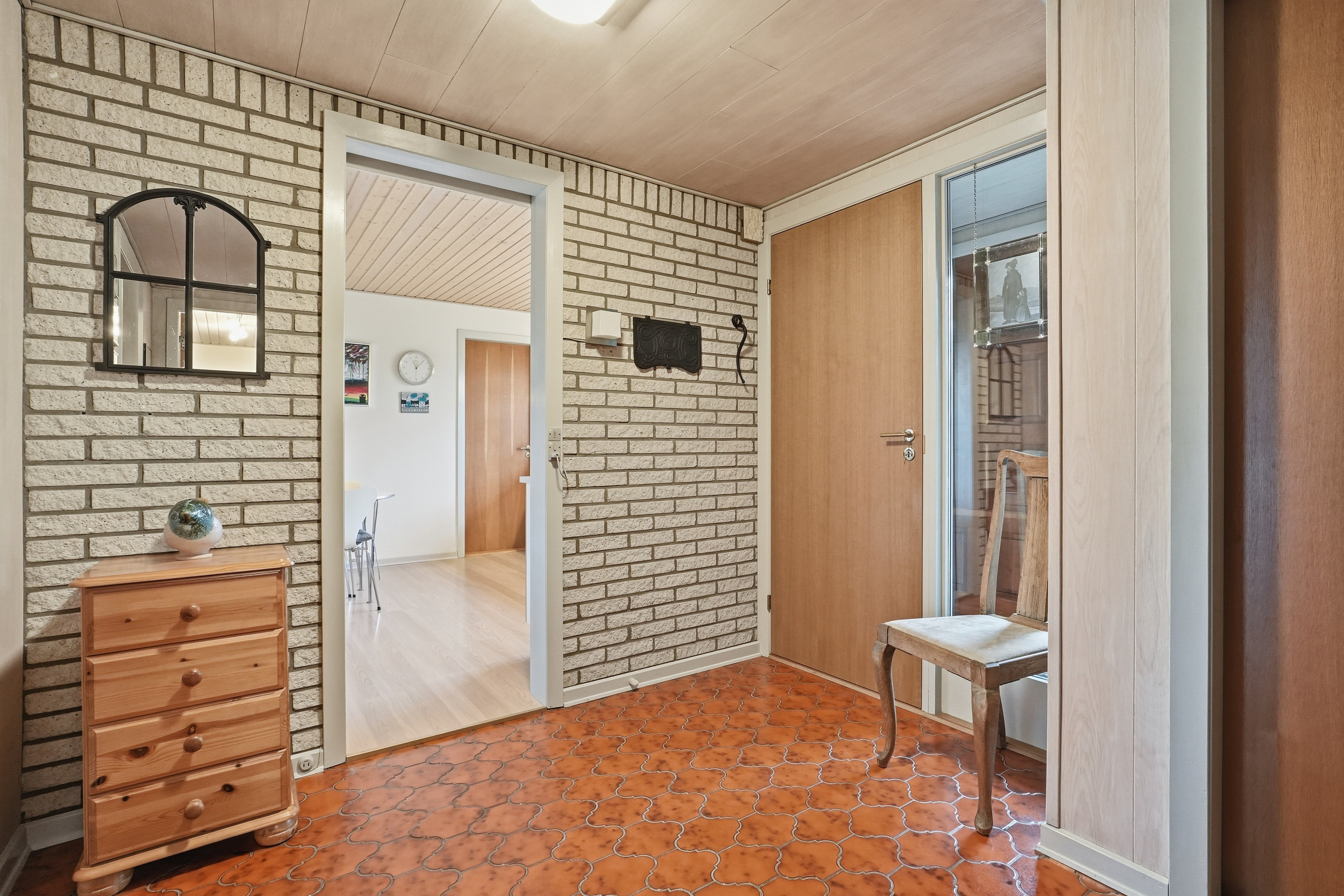 Huset er opført i en solid og eftertragtet fuldmuret konstruktion, hvilket sikrer et behageligt og holdbart hjem i mange år fremover. Indenfor finder I en optimal planløsning med fire regulære værelser, der nemt kan indrettes til soveværelser, kontor eller gæsteværelse, hvilket giver fleksibilitet til den voksende familie.