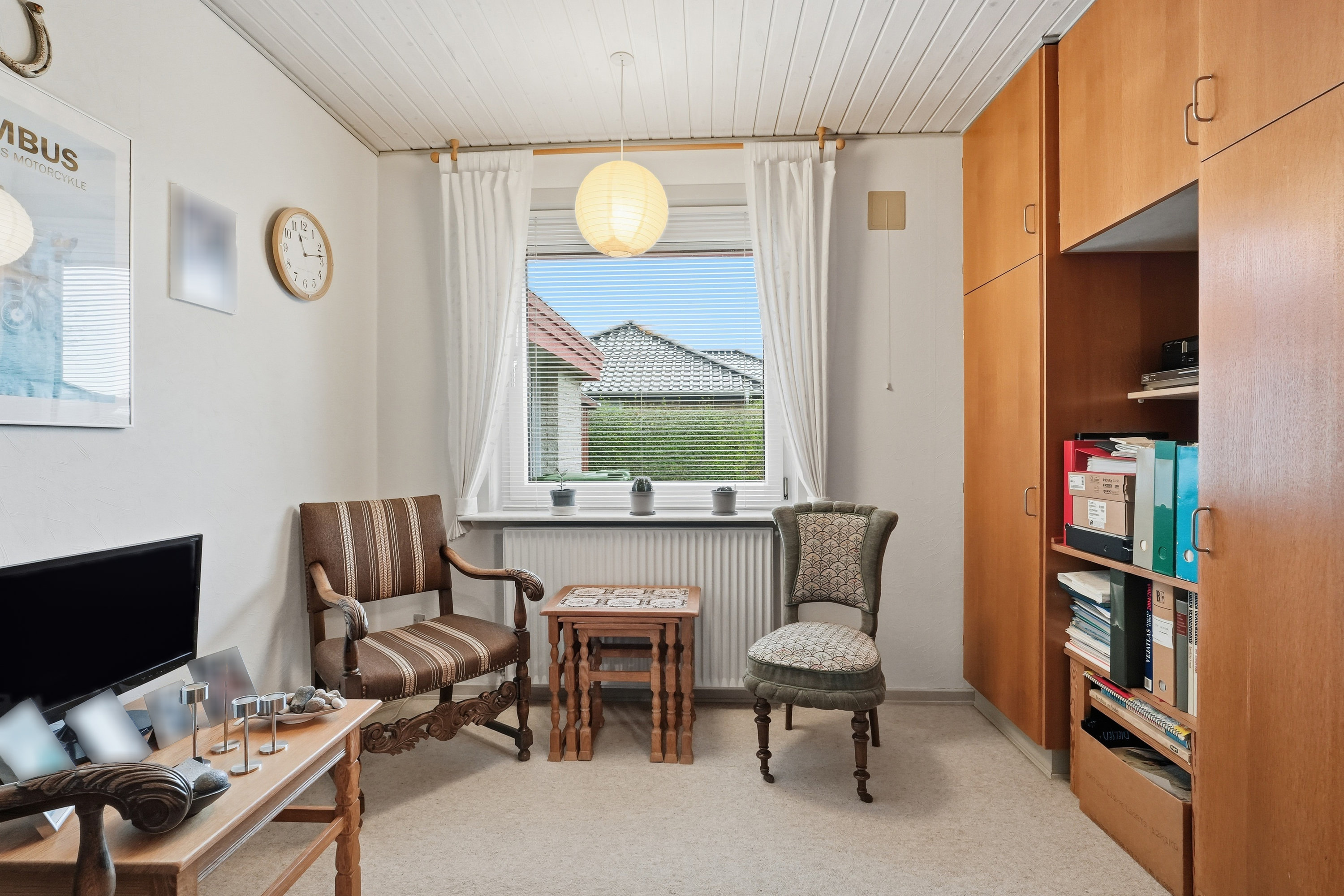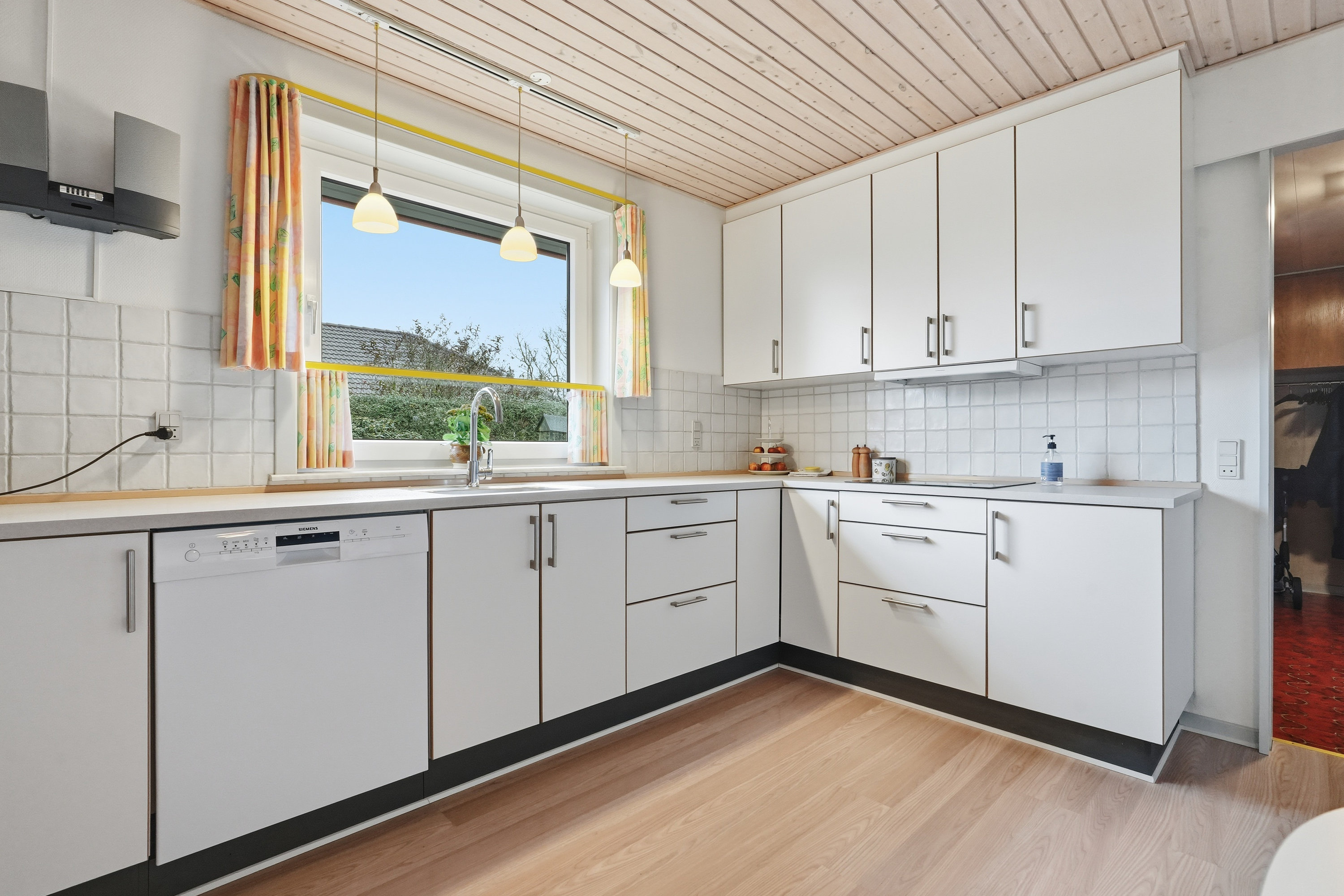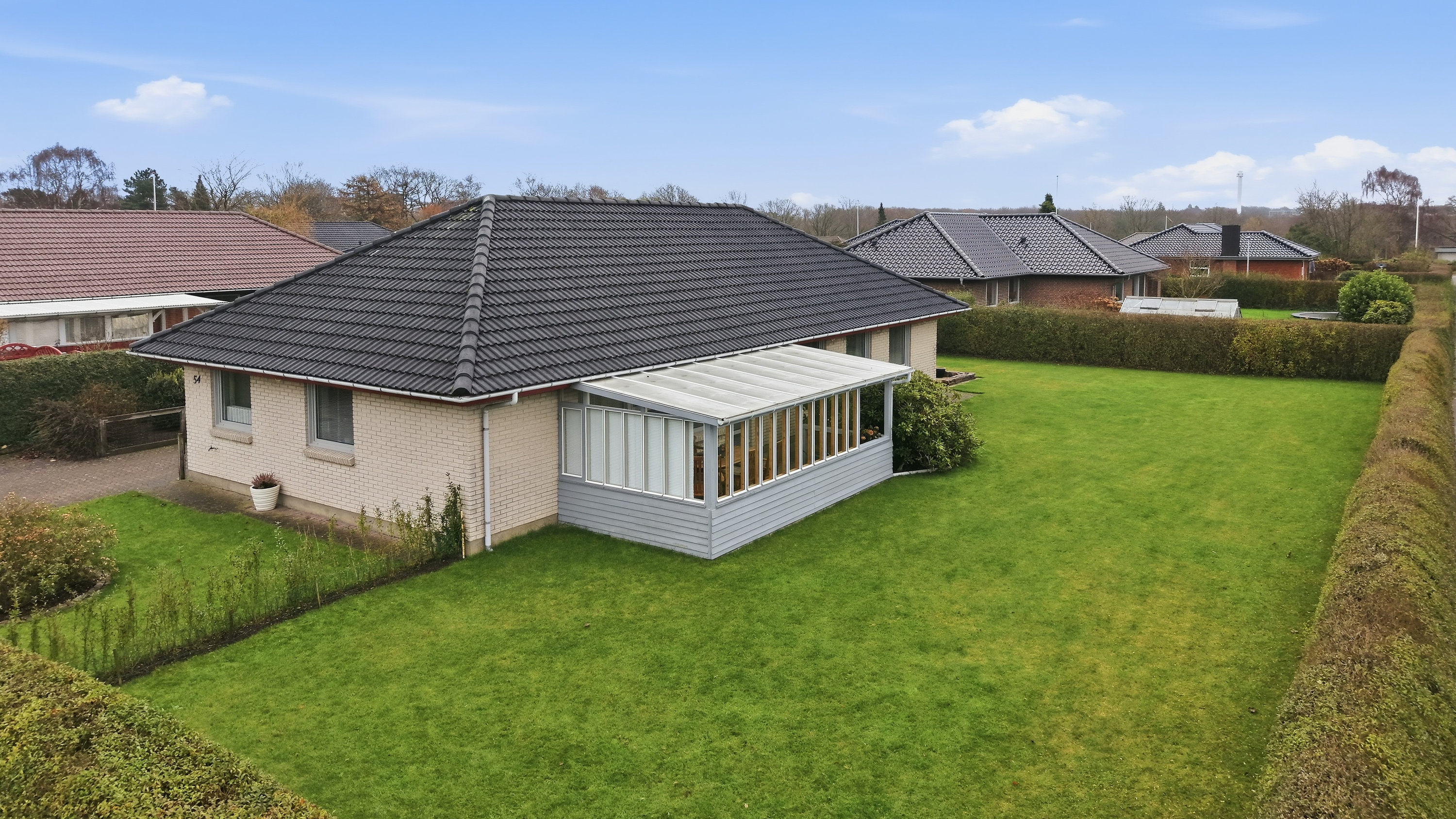Huset er opført i en solid og eftertragtet fuldmuret konstruktion, hvilket sikrer et behageligt og holdbart hjem i mange år fremover. Indenfor finder I en optimal planløsning med fire regulære værelser, der nemt kan indrettes til soveværelser, kontor eller gæsteværelse, hvilket giver fleksibilitet til den voksende familie.