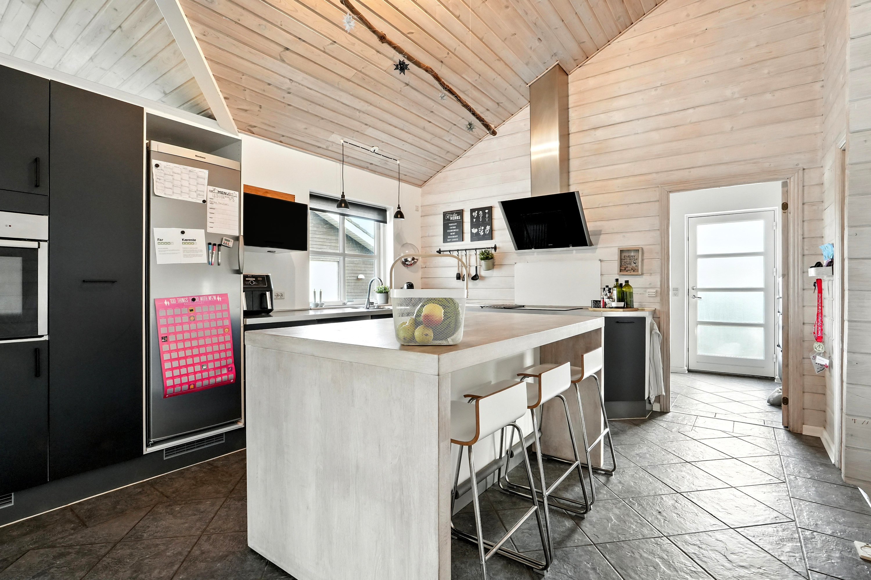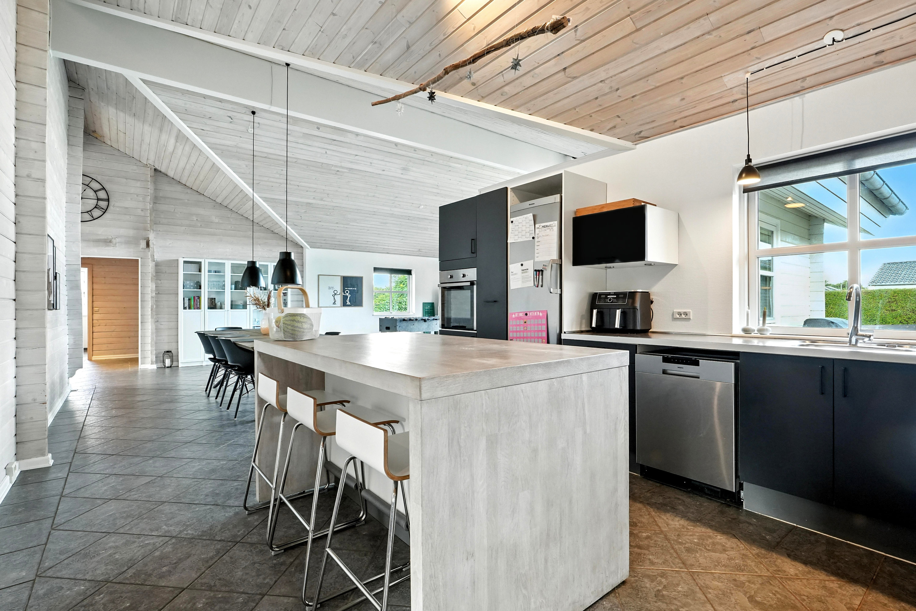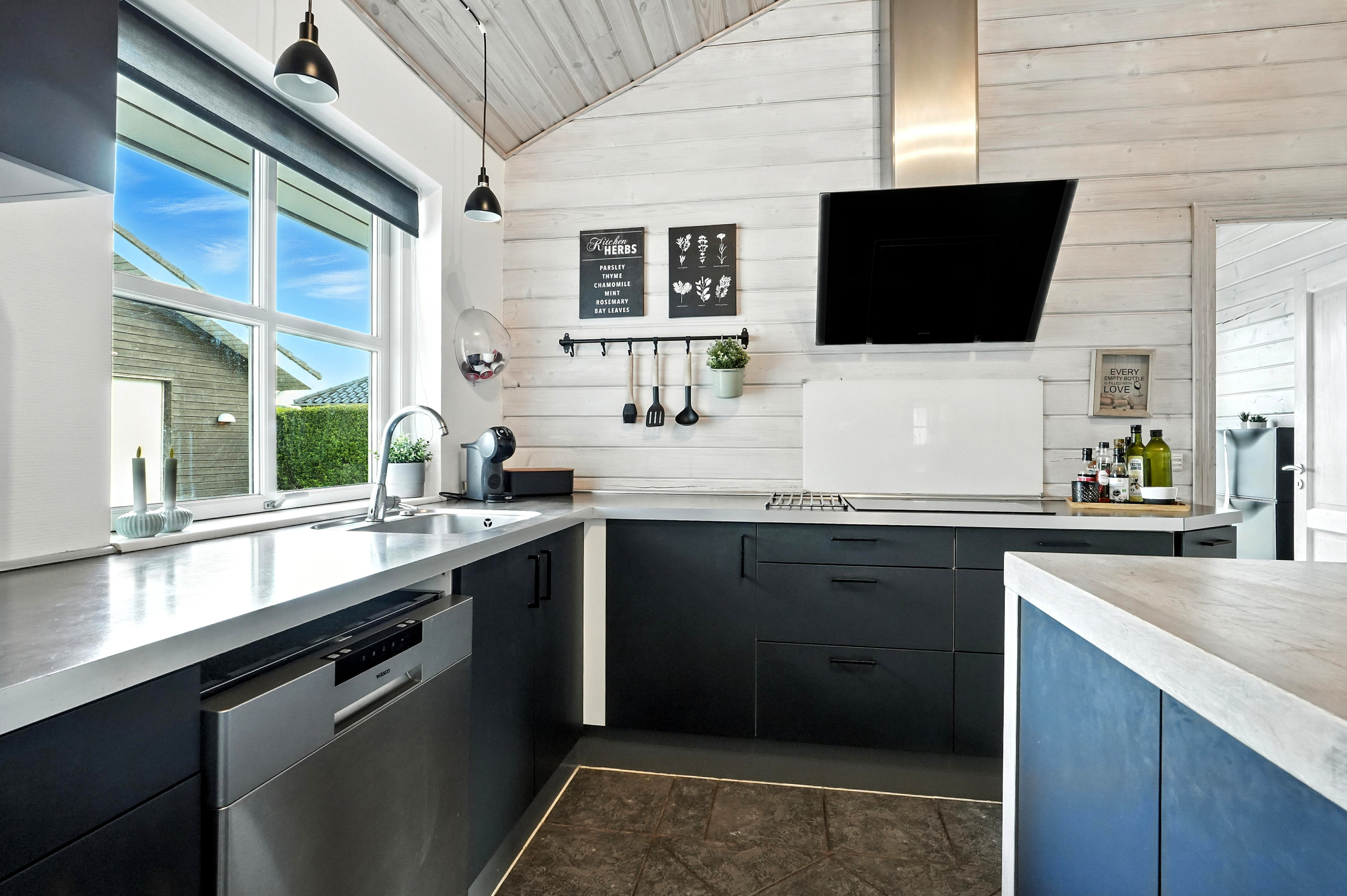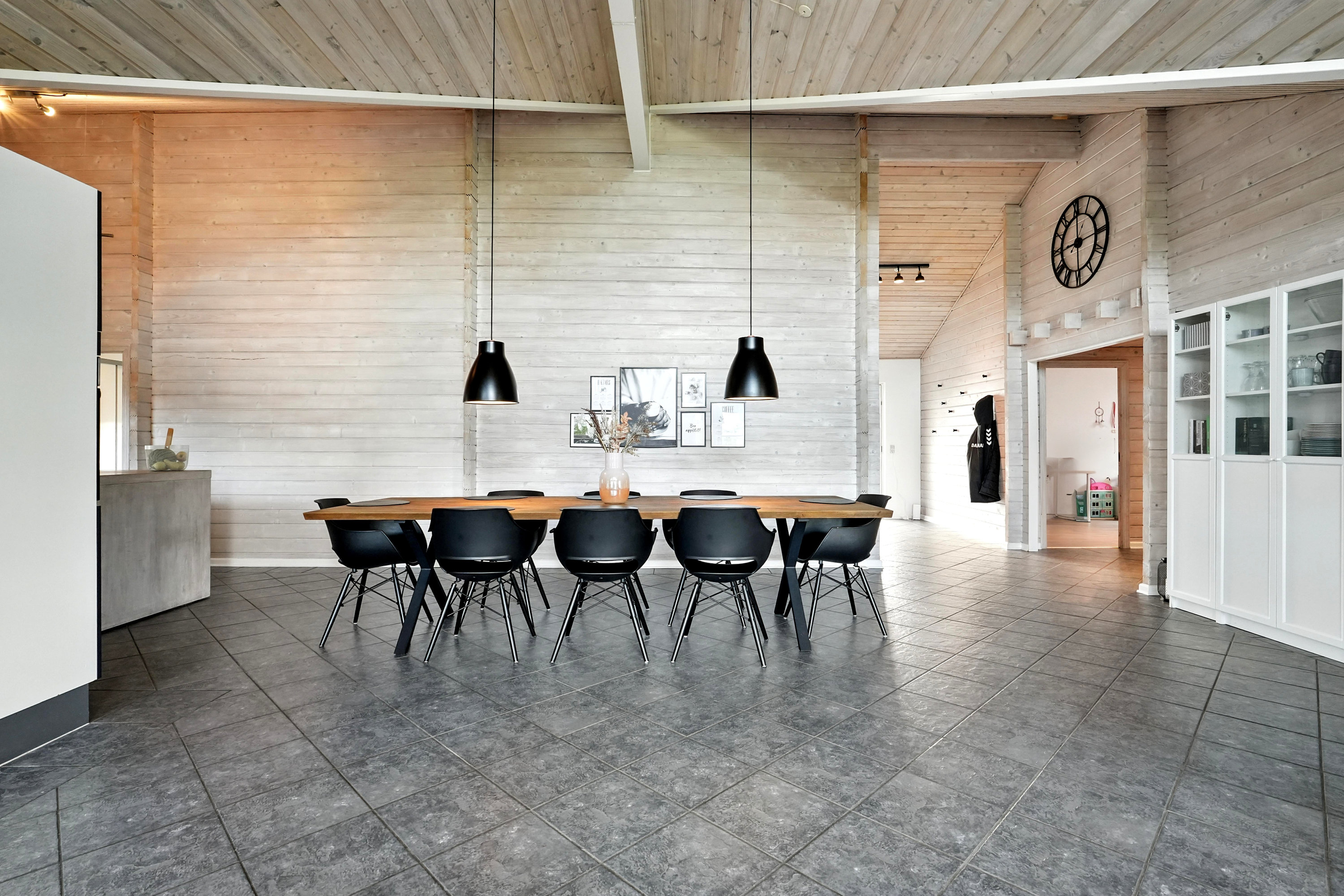 Husets naturlige samlingspunkt er det store køkken/alrum, der ligger centralt placeret med direkte adgang til terrasse og have. Køkkenet er fra Kvik og opført i tidløse kvalitetsmaterialer med god skabs- og bordplads, så madlavningen bliver en fornøjelse. De store vinduespartier giver rummet et behageligt lys og en skøn fornemmelse af luft og åbenhed.