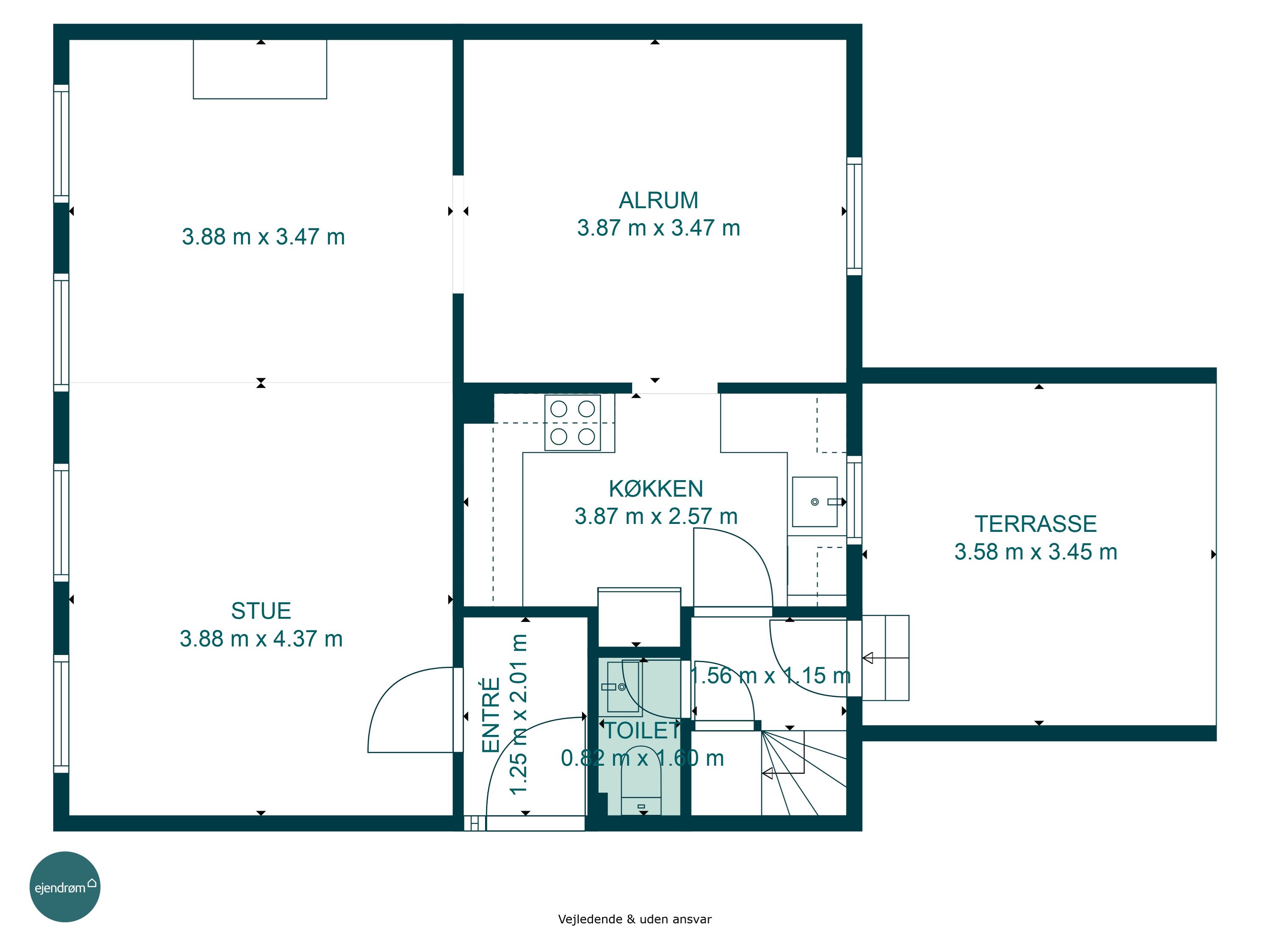 Boligen byder på 116 veludnyttede kvadratmeter. Her får du et rummeligt køkken-alrum, der skaber de perfekte rammer for hverdagens måltider og hyggelige aftener med gæster. Den store stue indbyder til afslapning, og de to lyse og rummelige værelser giver gode plads muligheder.