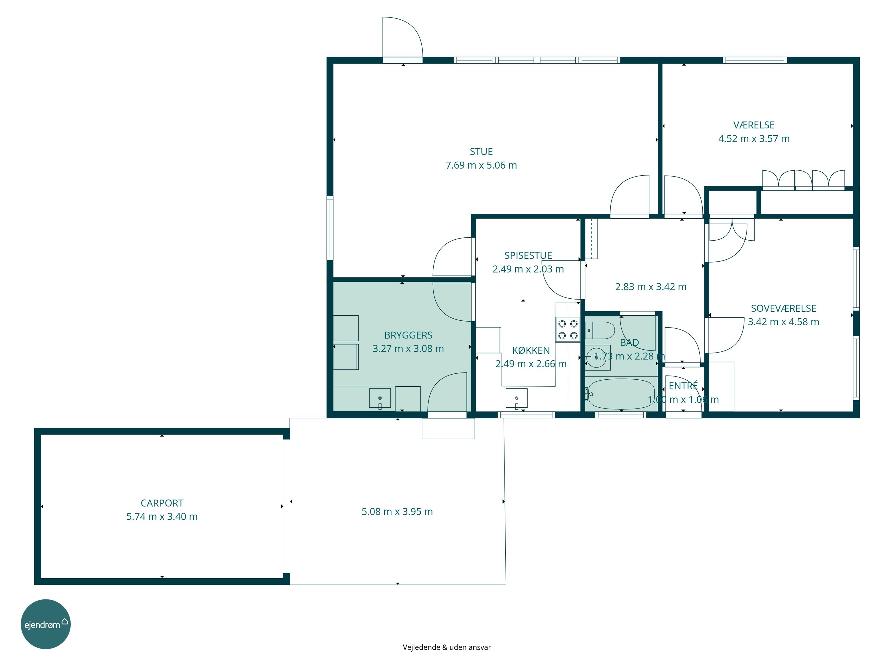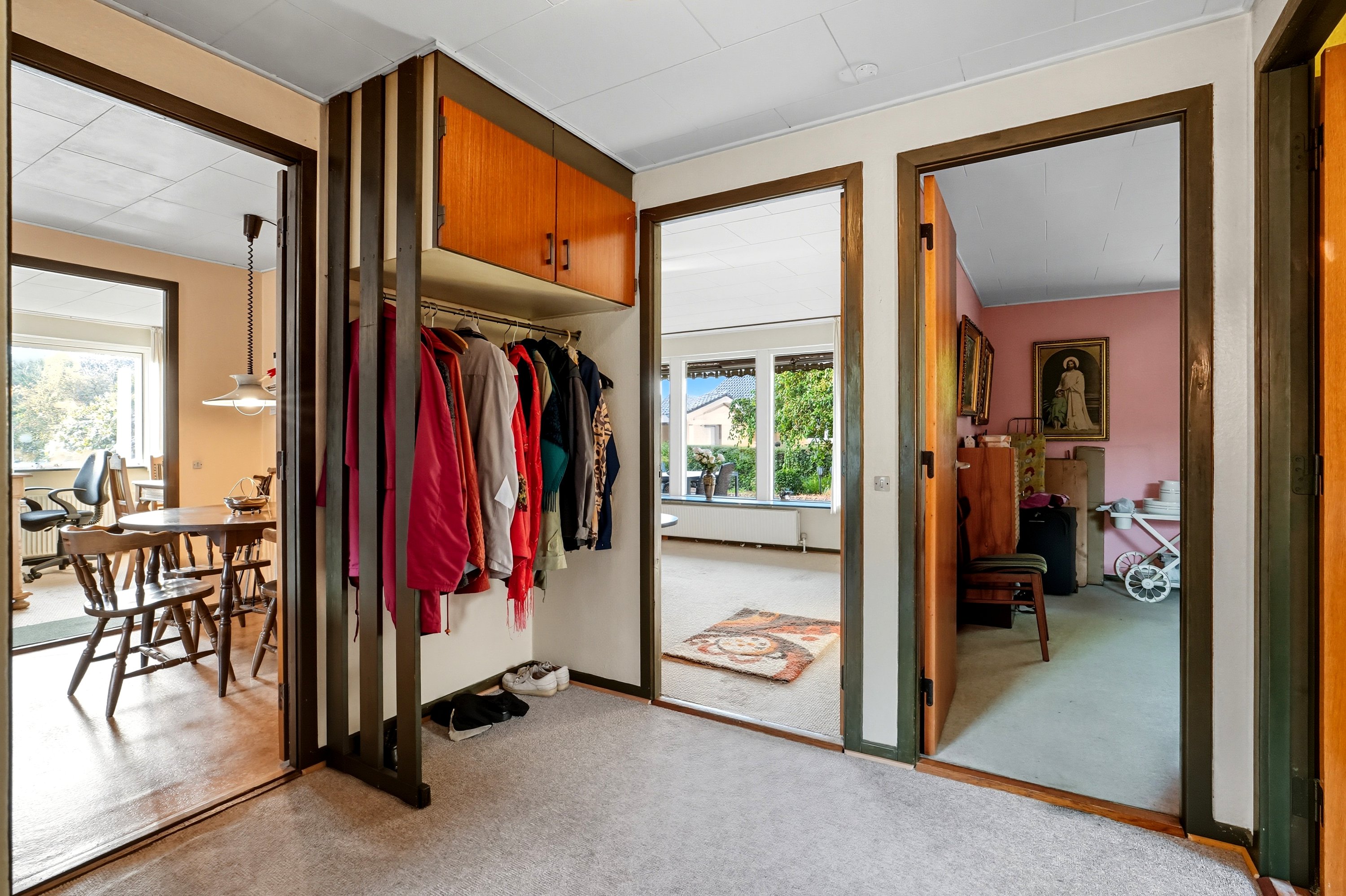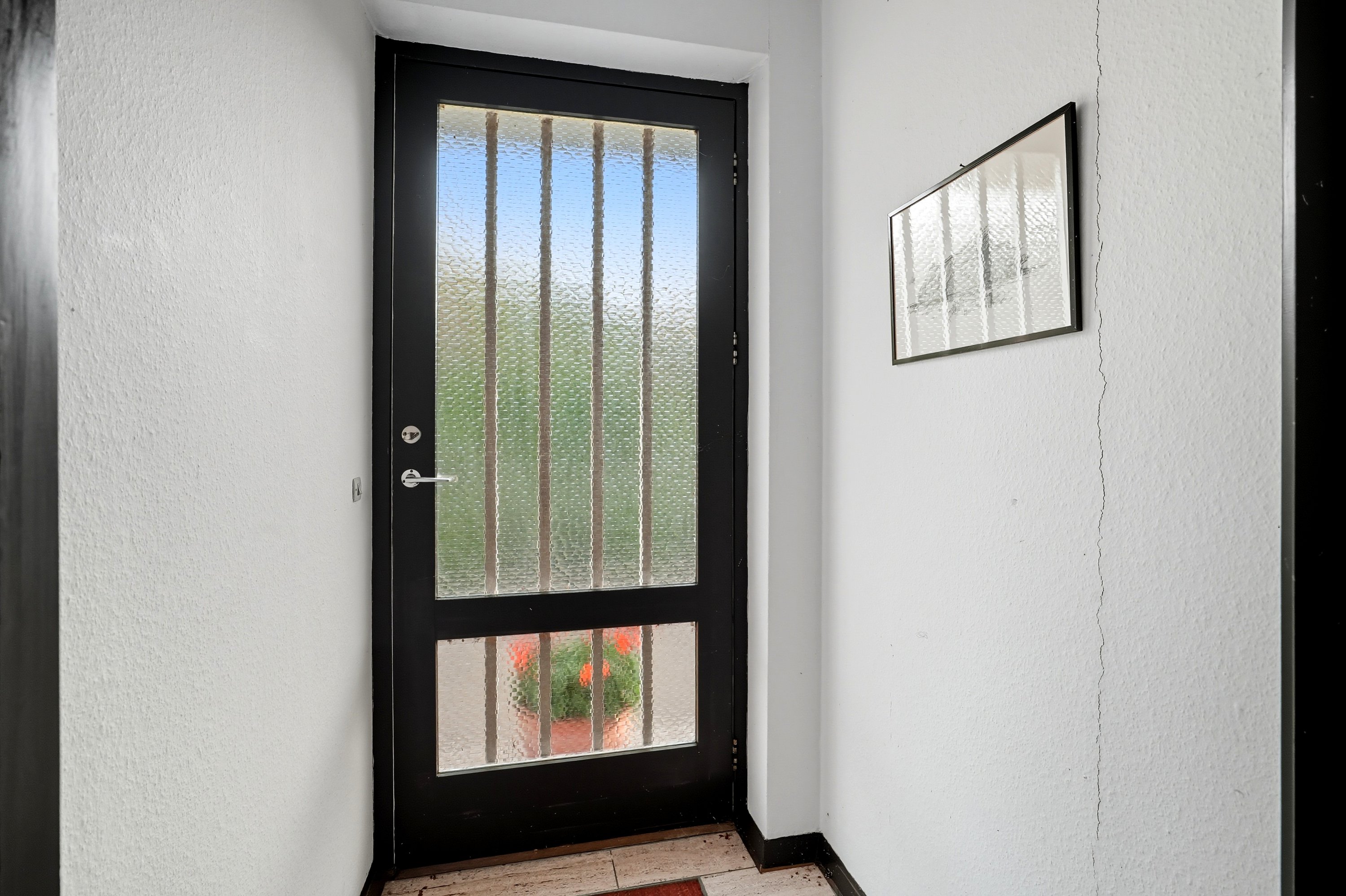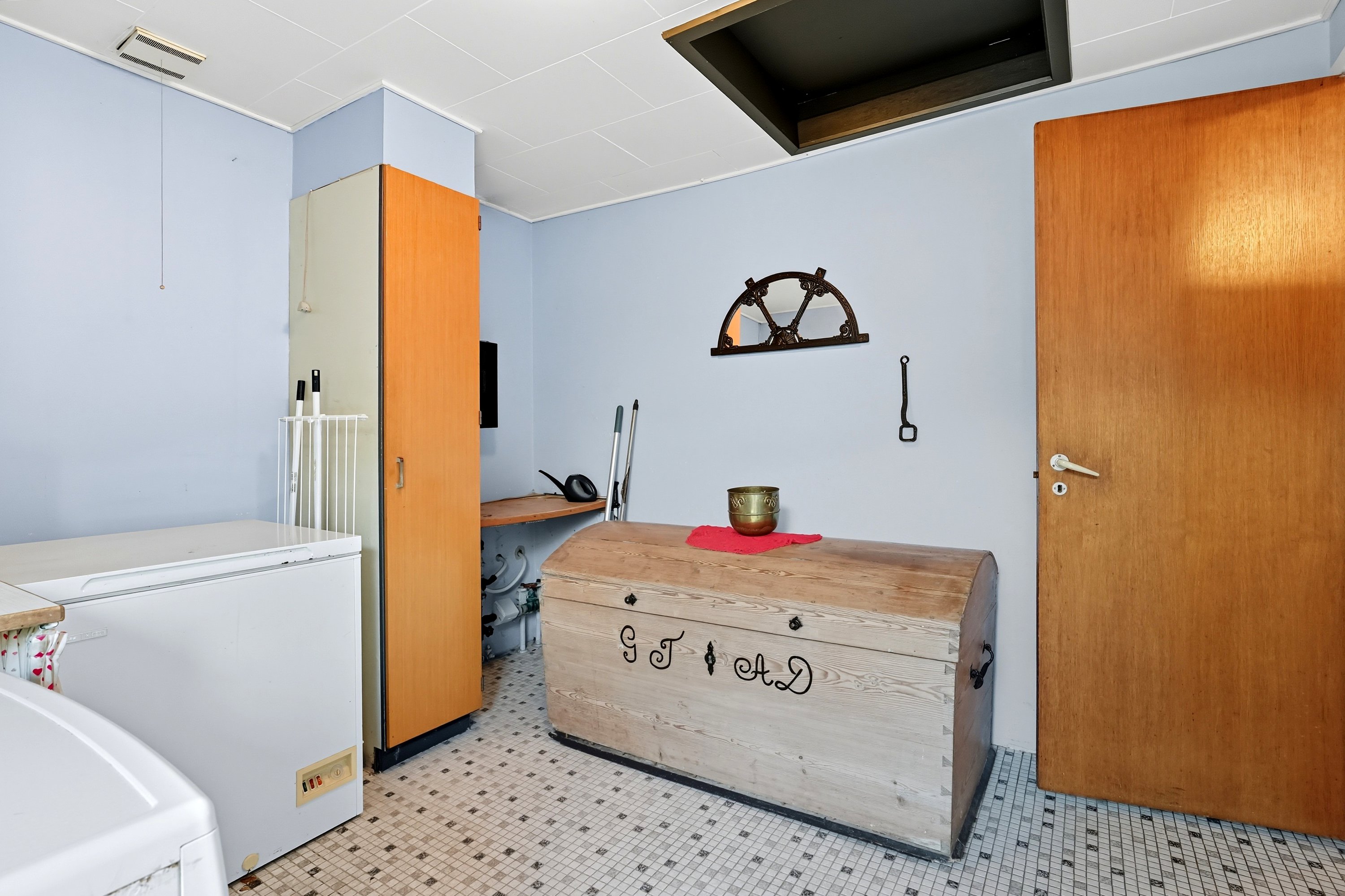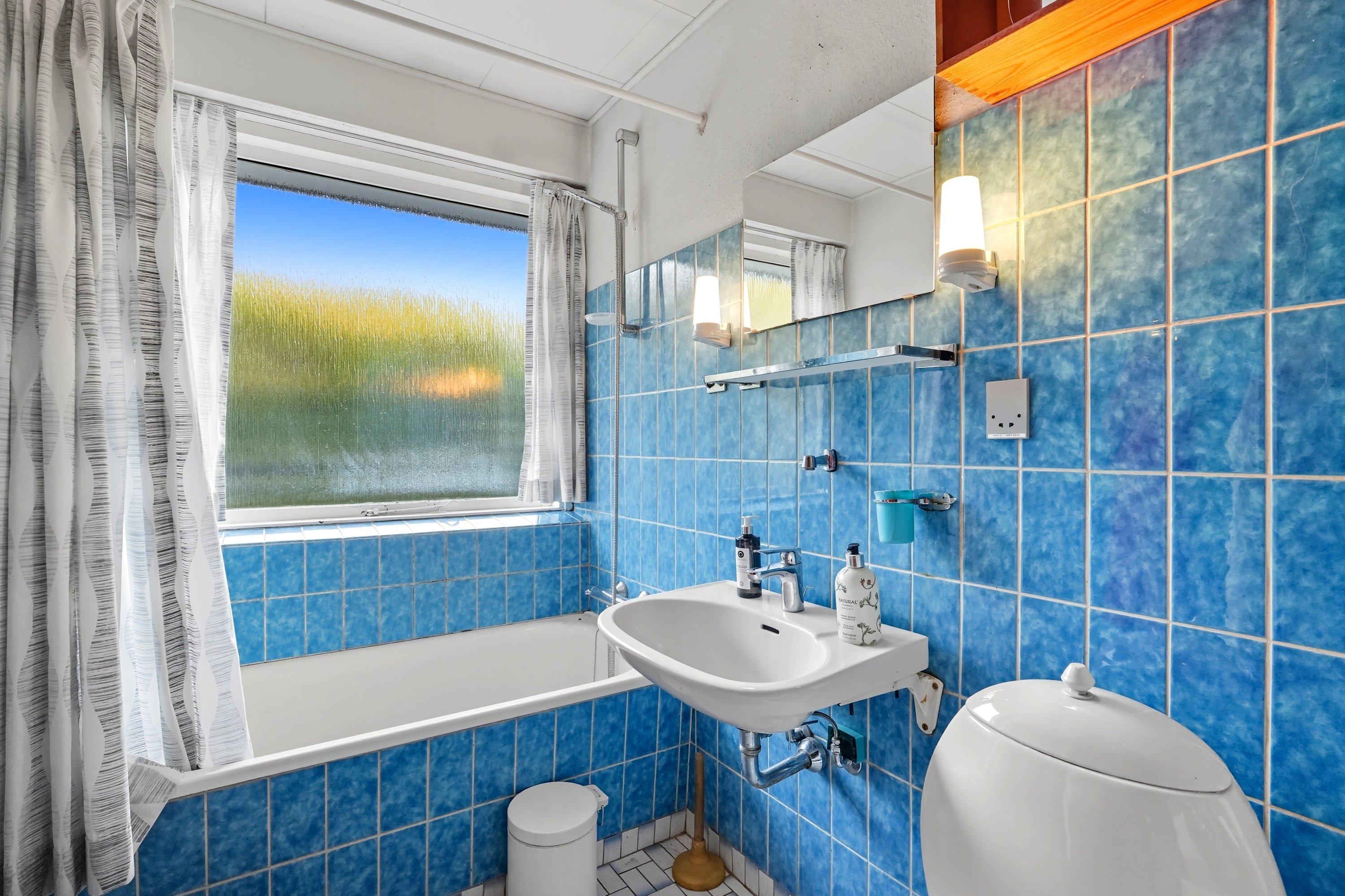 Badeværelset fremstår funktionelt og velholdt, men rummer et oplagt potentiale for opgradering. Ønsker man et større og mere moderne badeværelse, kan man med fordel inddrage kvadratmeterne omkring gæsteentréen– hermed opnås plads til både bruseniche og badekar. Hertil byder boligen på et praktisk bryggers med egen indgang og god plads til hverdagens opgaver.