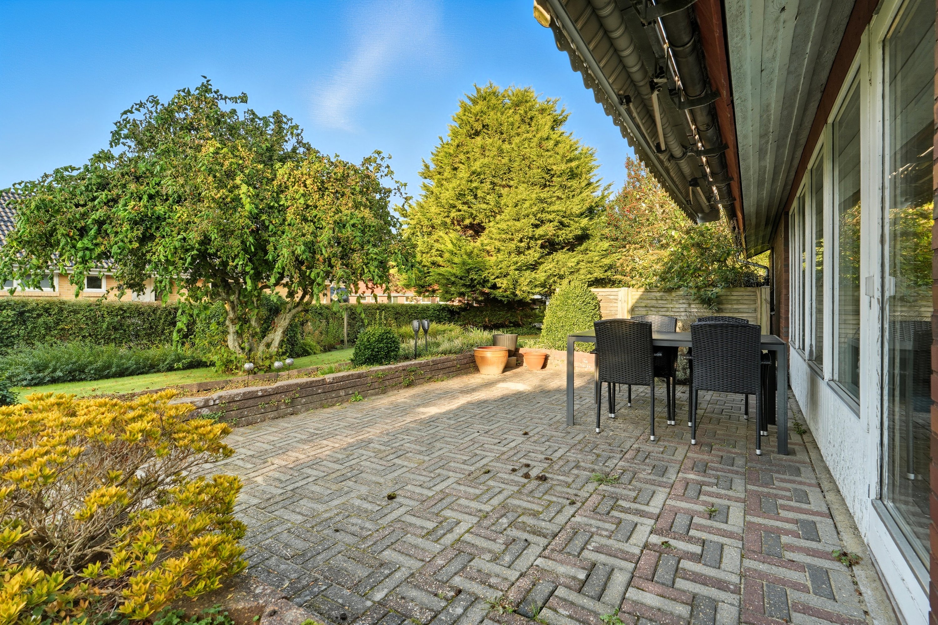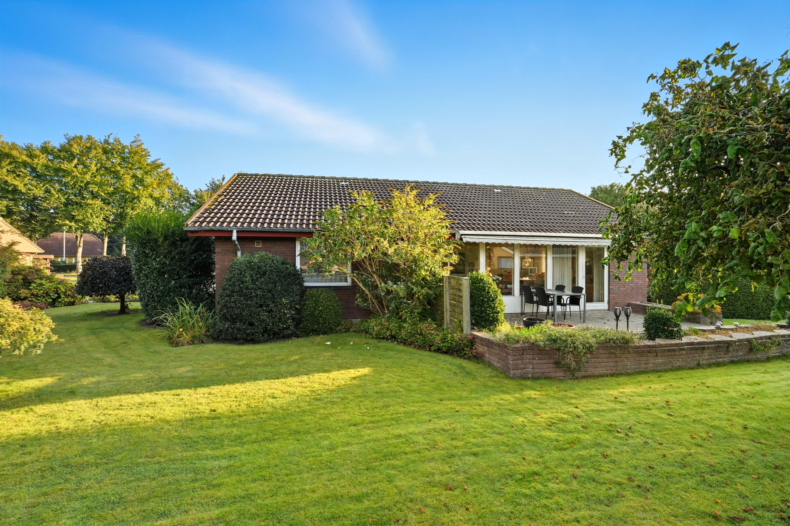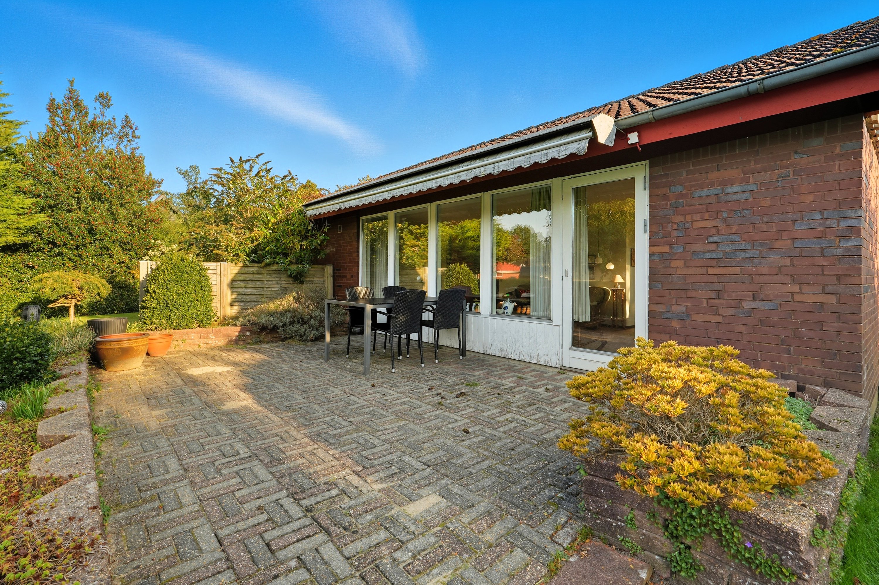 Udenfor byder ejendommen på en velanlagt have med et godt terrassemiljø – perfekt til privatliv og afslapning.