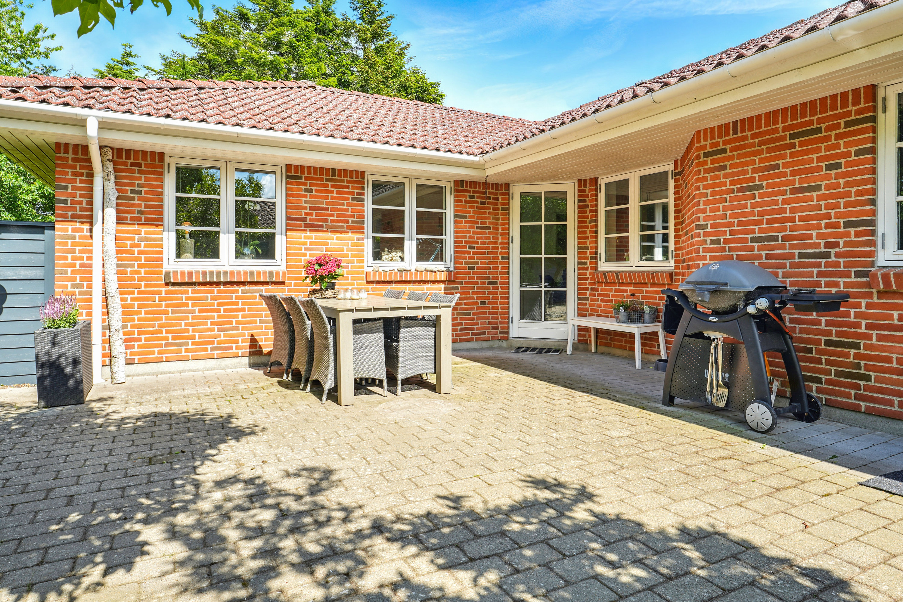 Planløsningen er gennemtænkt og rummer alt det, en familie har brug for: Tre gode værelser og et forældresoveværelse. Villaens ”hjerterum” er uden tvivl det store køkken/alrum, hvor det moderne køkken naturligt forbinder alrummet sammen. Herfra er der også udgang til en skøn og ugeneret gårdhave – et lukket og solrigt frirum, hvor familien kan samles til aftensmad, grill og hygge i det fri.