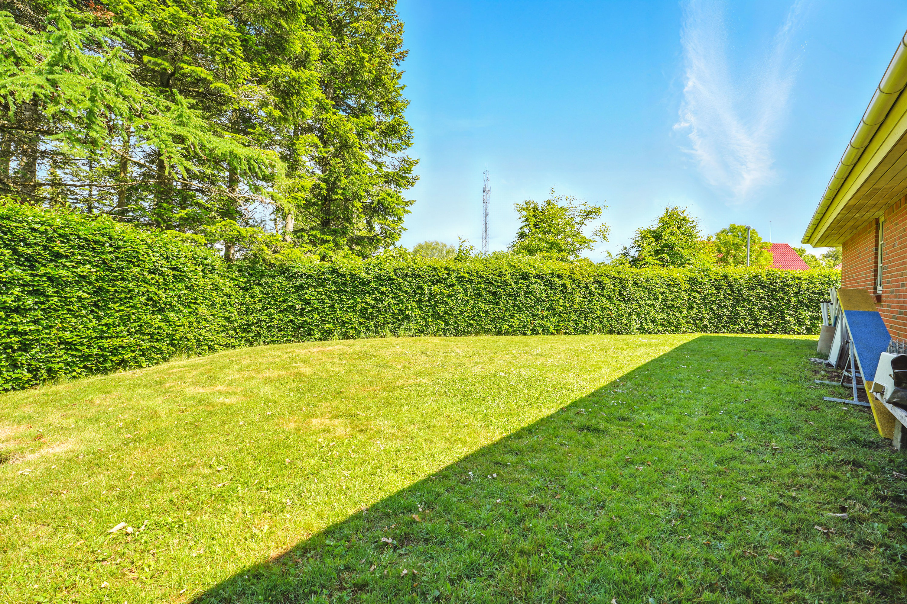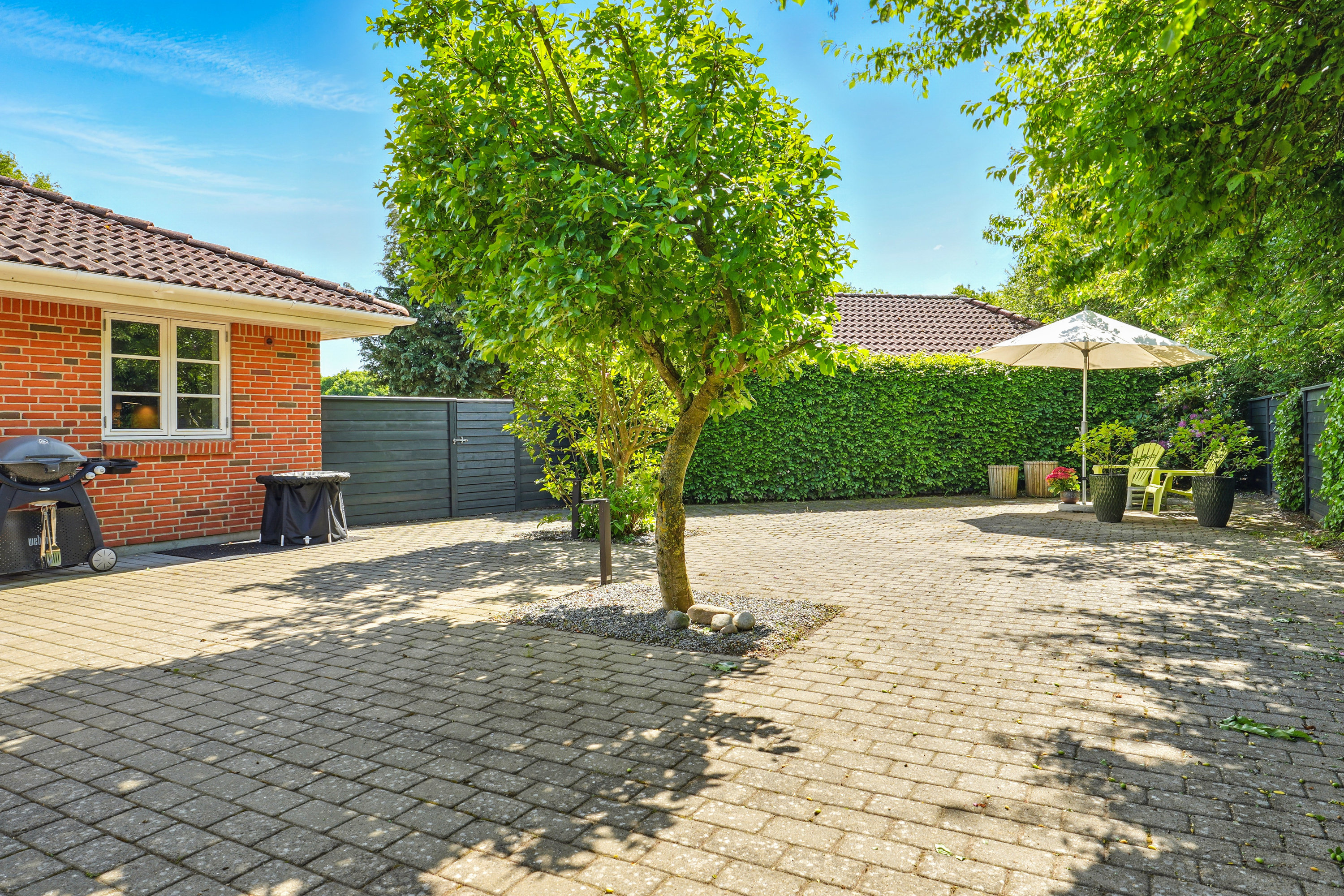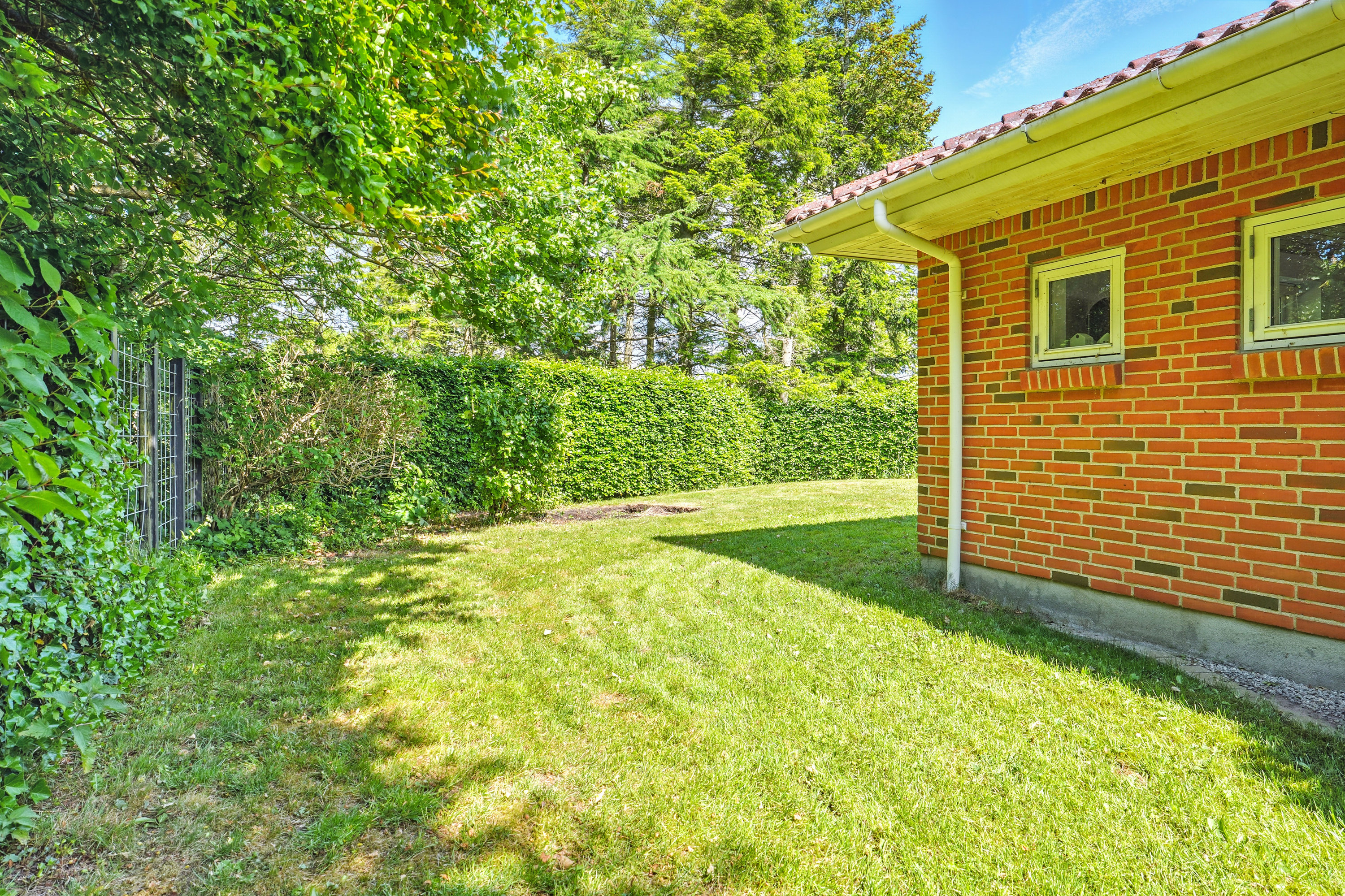 Grunden er overskuelig og nem at vedligeholde, men samtidig rig på muligheder for leg, afslapning og udeliv. Værd at fremhæve er det at ejendommen strækker sig op af grønne områder, som indbyder til boldspil, picnic og leg for hele familien.