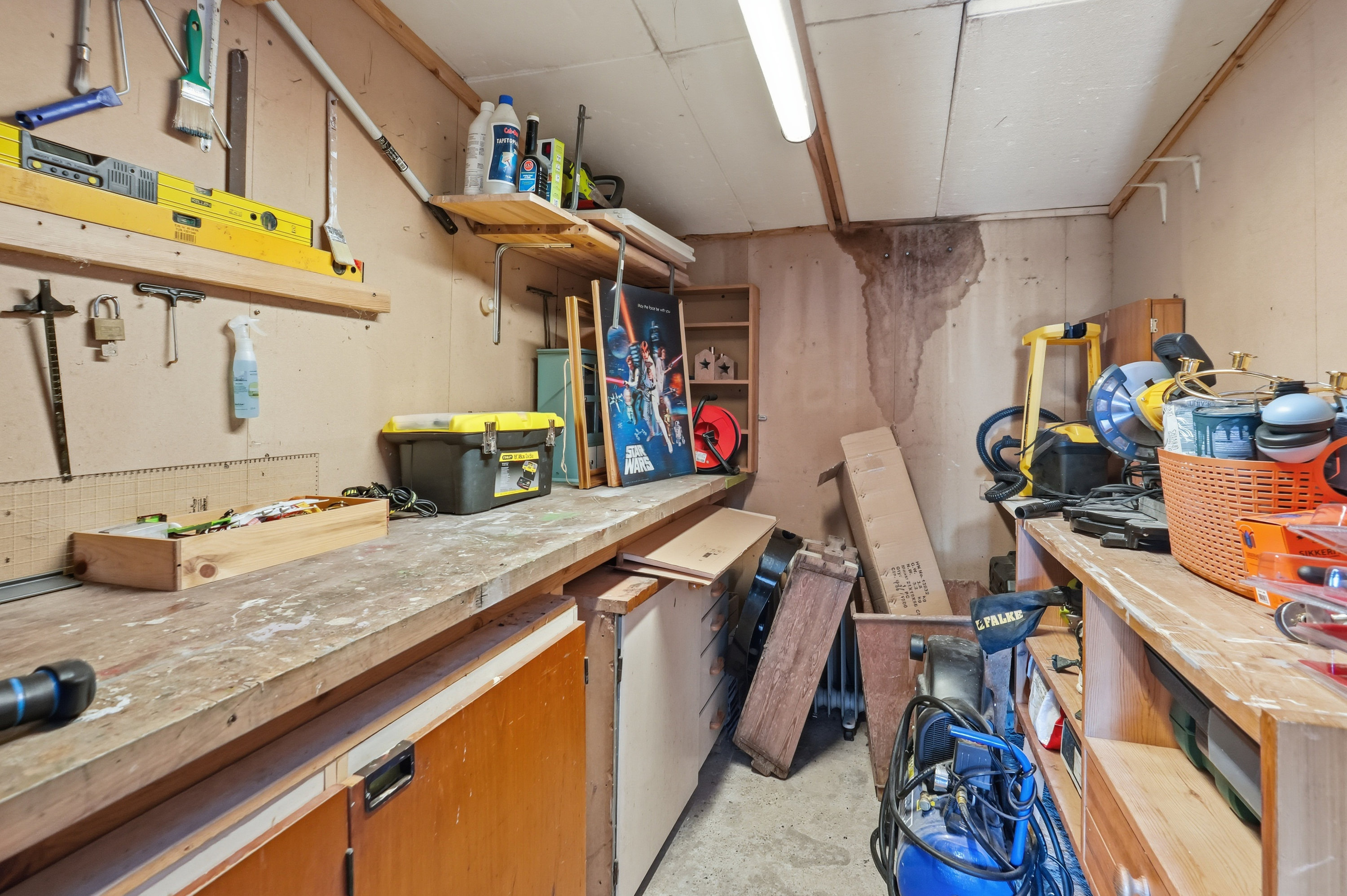 Til ejendommen hører desuden en garage samt et ekstra rum, som oplagt kan bruges som hobbyrum, værksted eller opbevaring – perfekt til dig, der ønsker lidt ekstra plads til interesser eller praktiske formål. Haven er stor, lukket og rigtig hyggelig med masser af plads til leg, afslapning og udeliv. Her er gode muligheder for både solkroge, terrassemiljø og haveprojekter – et skønt frirum i hverdagen.
