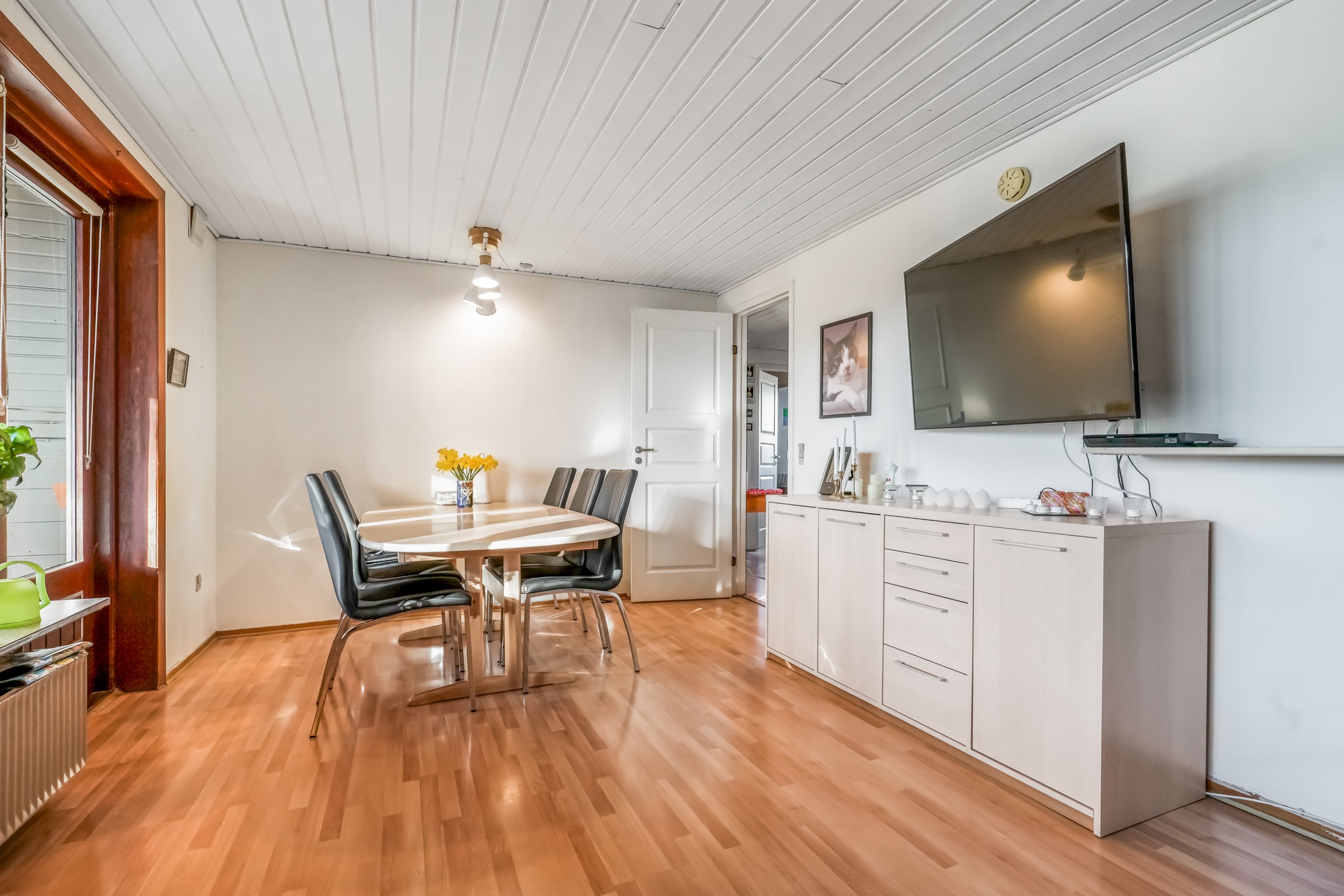 Boligen byder på et praktisk bryggers, et rummeligt spisekøkken, hvor familien kan samles om hyggelige måltider, og en lys stue med udgang til en charmerende udestue – perfekt til afslapning året rundt. Derudover får du tre gode værelser med plads til hele familien samt et badeværelse. Udenfor venter en lukket have, der indbyder til både leg, grillhygge og afslapning i grønne omgivelser.