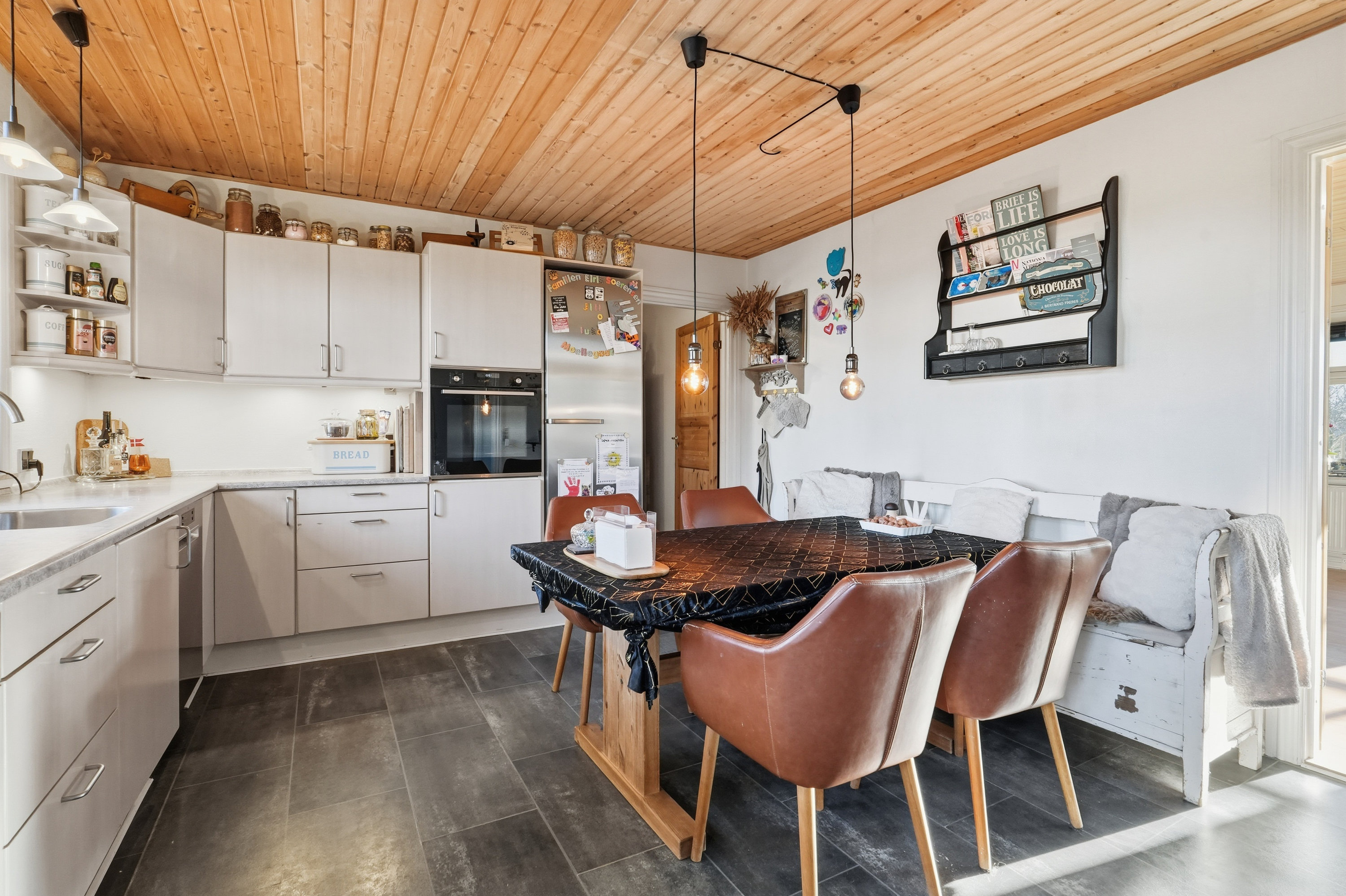 Boligen består af hele 215 m2. Og byder på: hyggelig og indbydende entré, herfra er der adgang til lyst køkken med god spiseplads og med 2 gode viktualierum. Videre er en stor stue med udgang til haven. Stuen er møbleringsvenlig og med plads til hele familien. Fra entréen er et moderniseret badeværelse med gulvvarme og bruseniche samt et godt bryggers med plads til tøjvask. 1.salen byder på 4 rigtig gode værelser samt et hyggeligt aktivitetsrum, hvor børnene kan boltre sig.