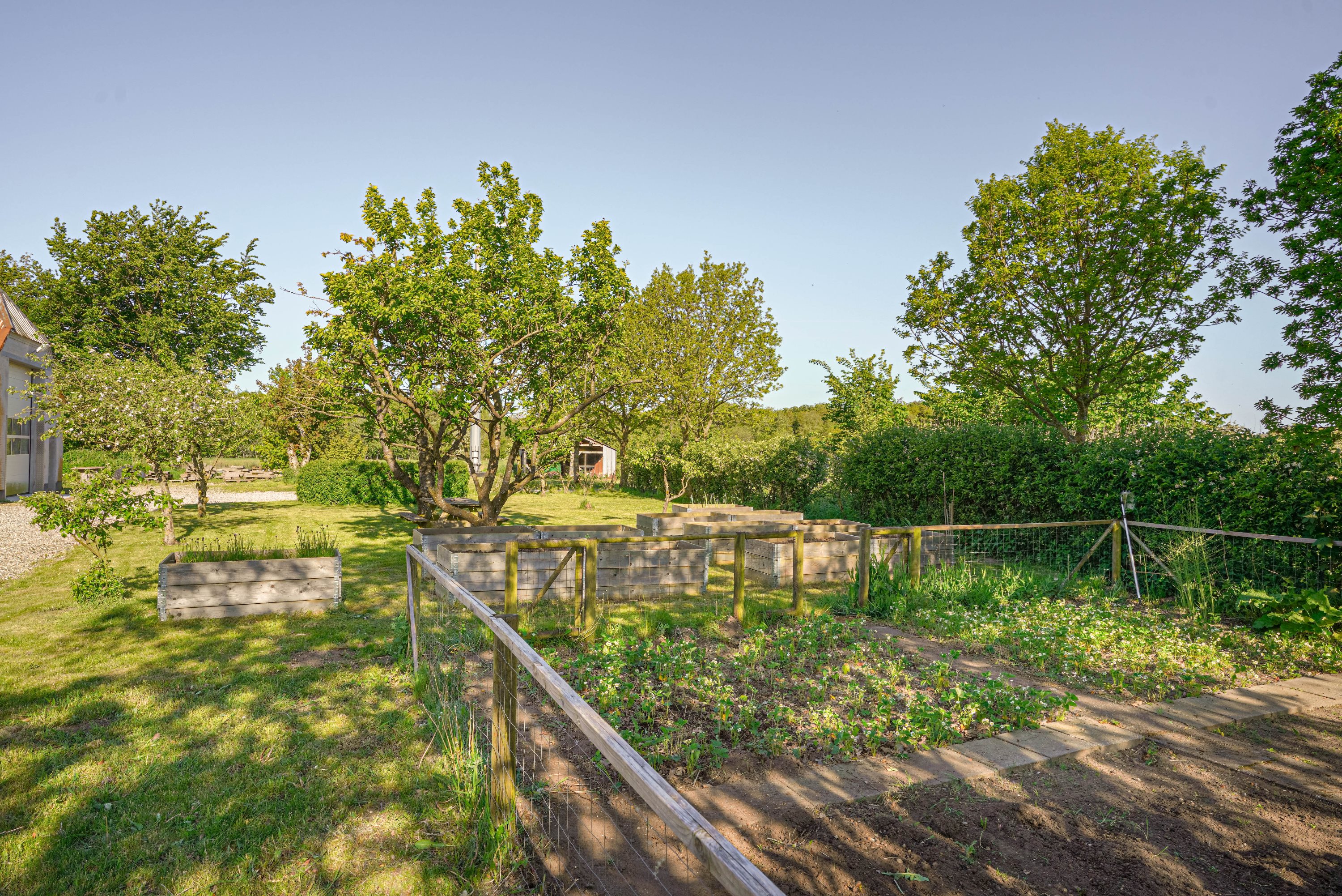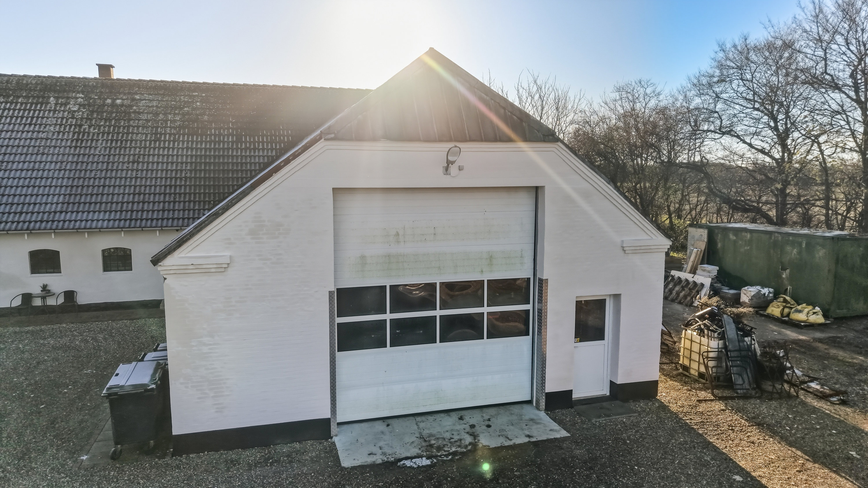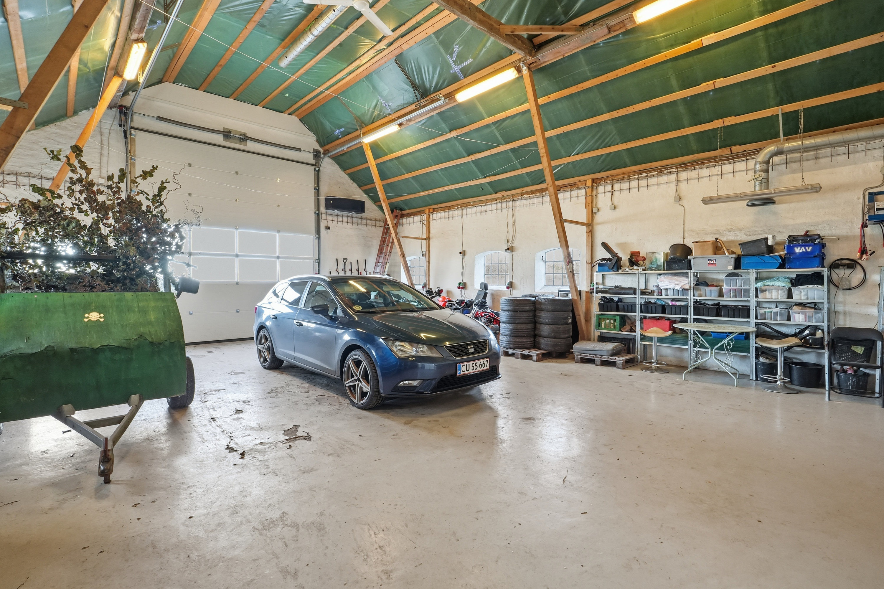 Udehusbygningerne er meget anvendelige. Her får du både et godt fyrrum, et fint værksted med god loftshøjde og med plads til lift samt den ældre stald del hvor det kun er fantasien der sætter grænser. Her kan man lave en gildesal eller have dyrehold. Mulighederne er rigtig mange.