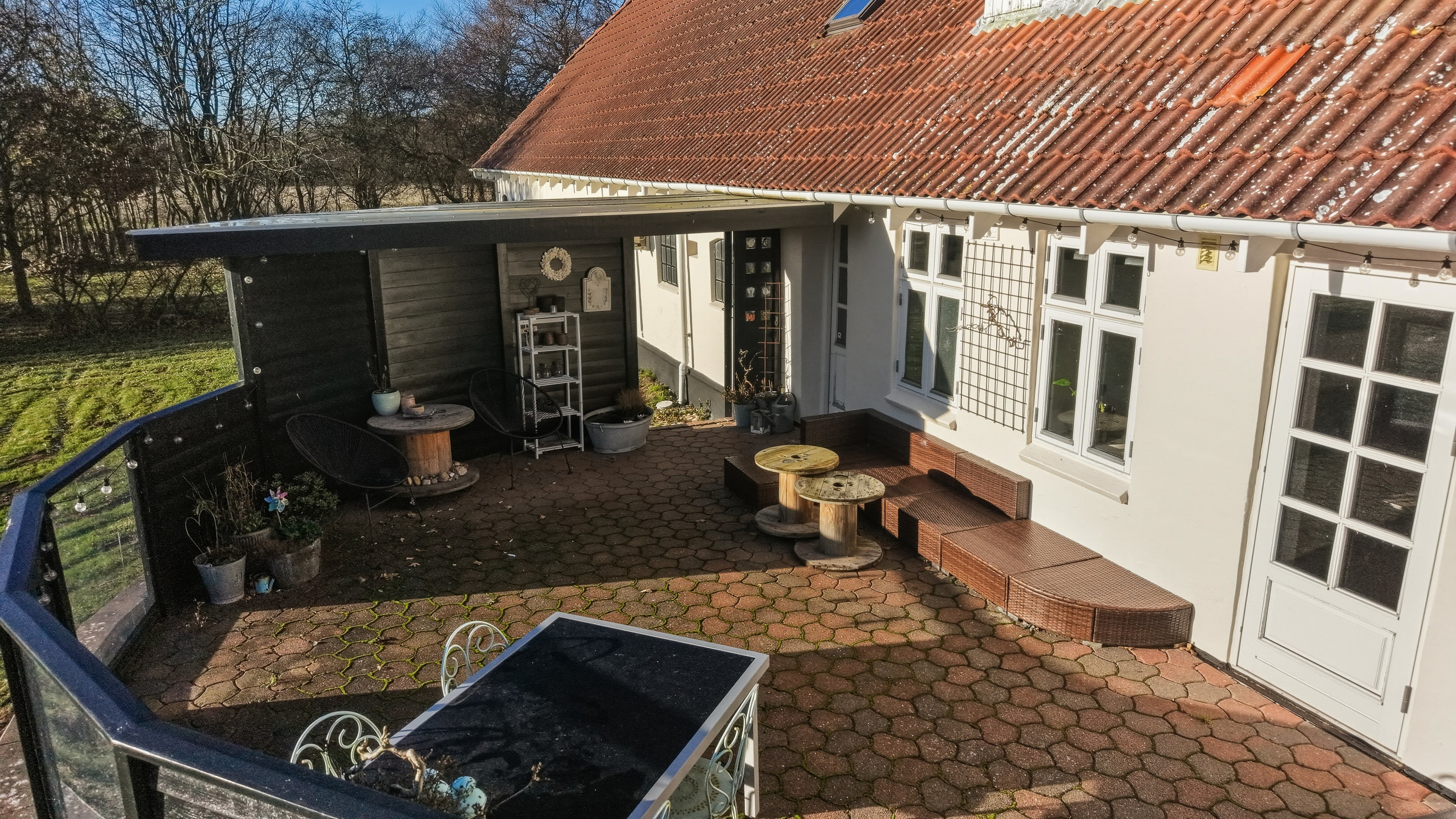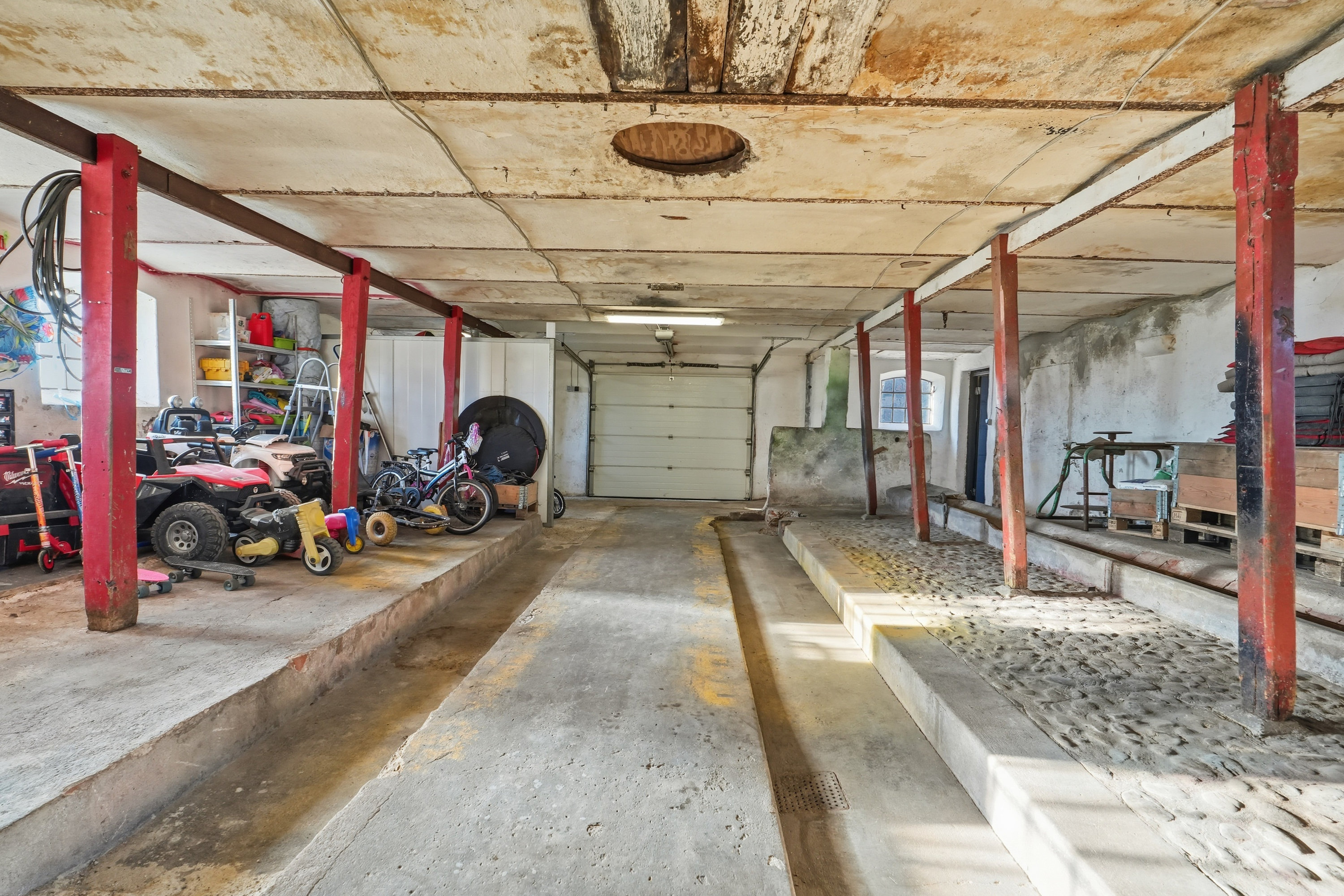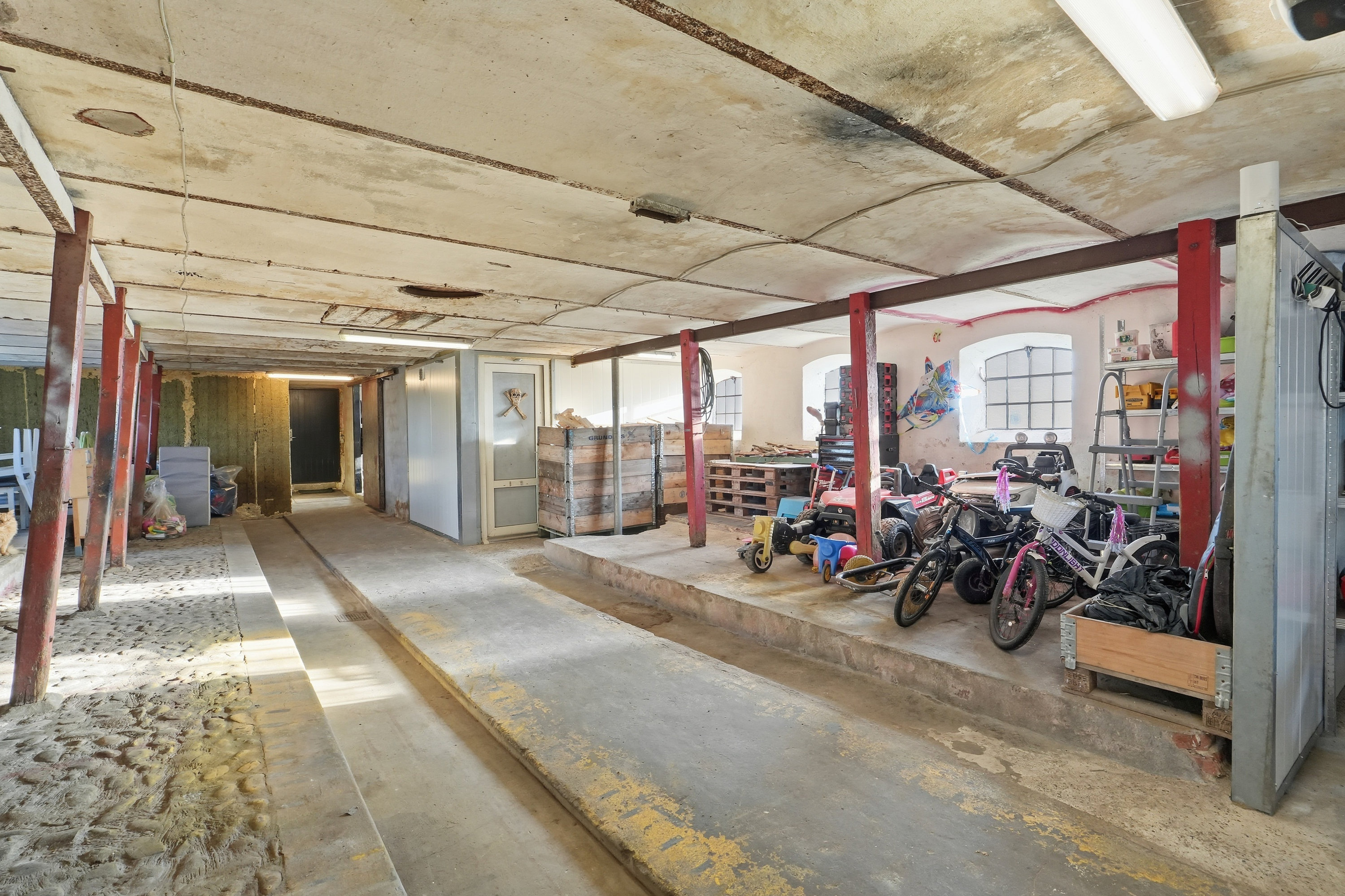 Udehusbygningerne er meget anvendelige. Her får du både et godt fyrrum, et fint værksted med god loftshøjde og med plads til lift samt den ældre stald del hvor det kun er fantasien der sætter grænser. Her kan man lave en gildesal eller have dyrehold. Mulighederne er rigtig mange.