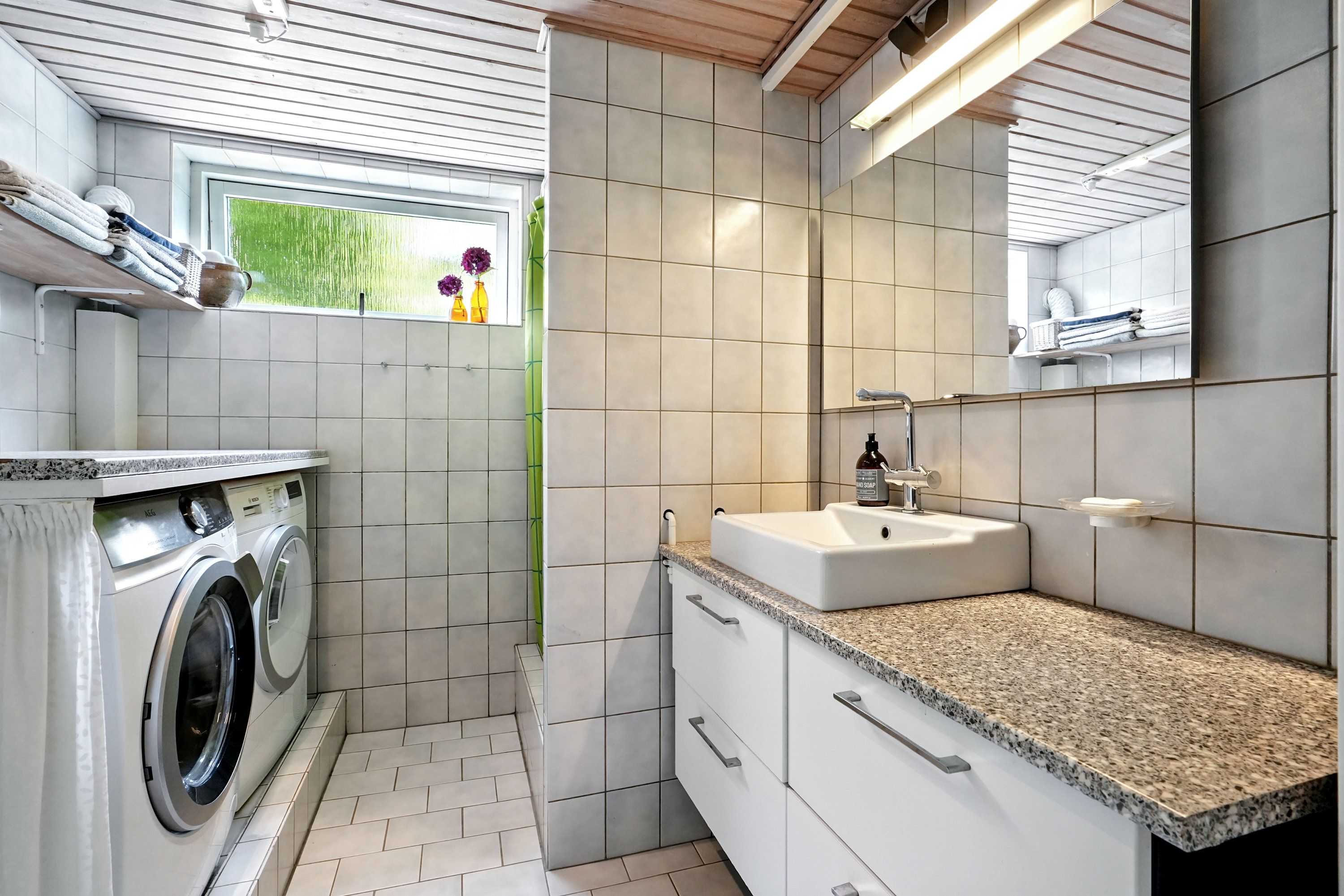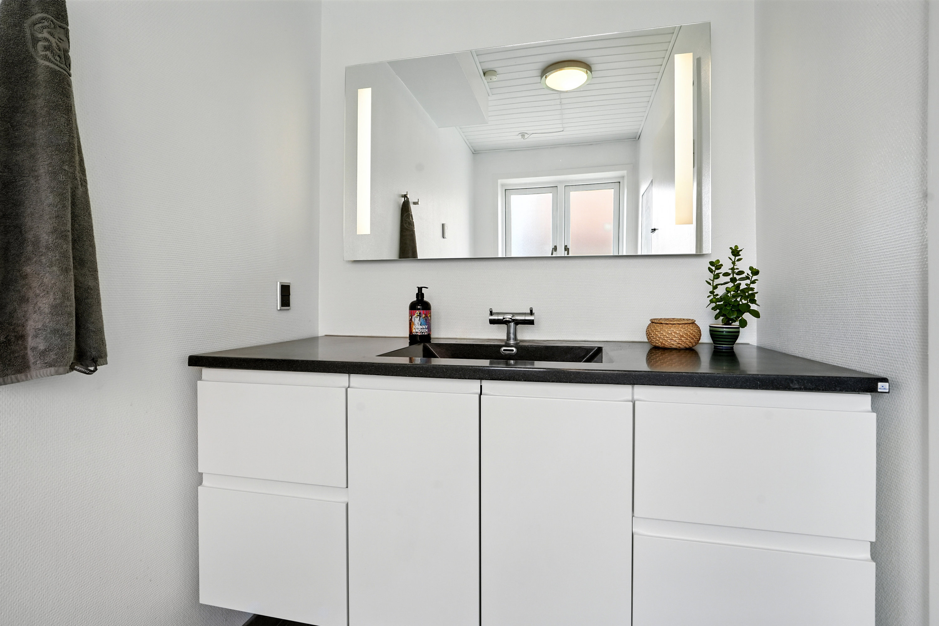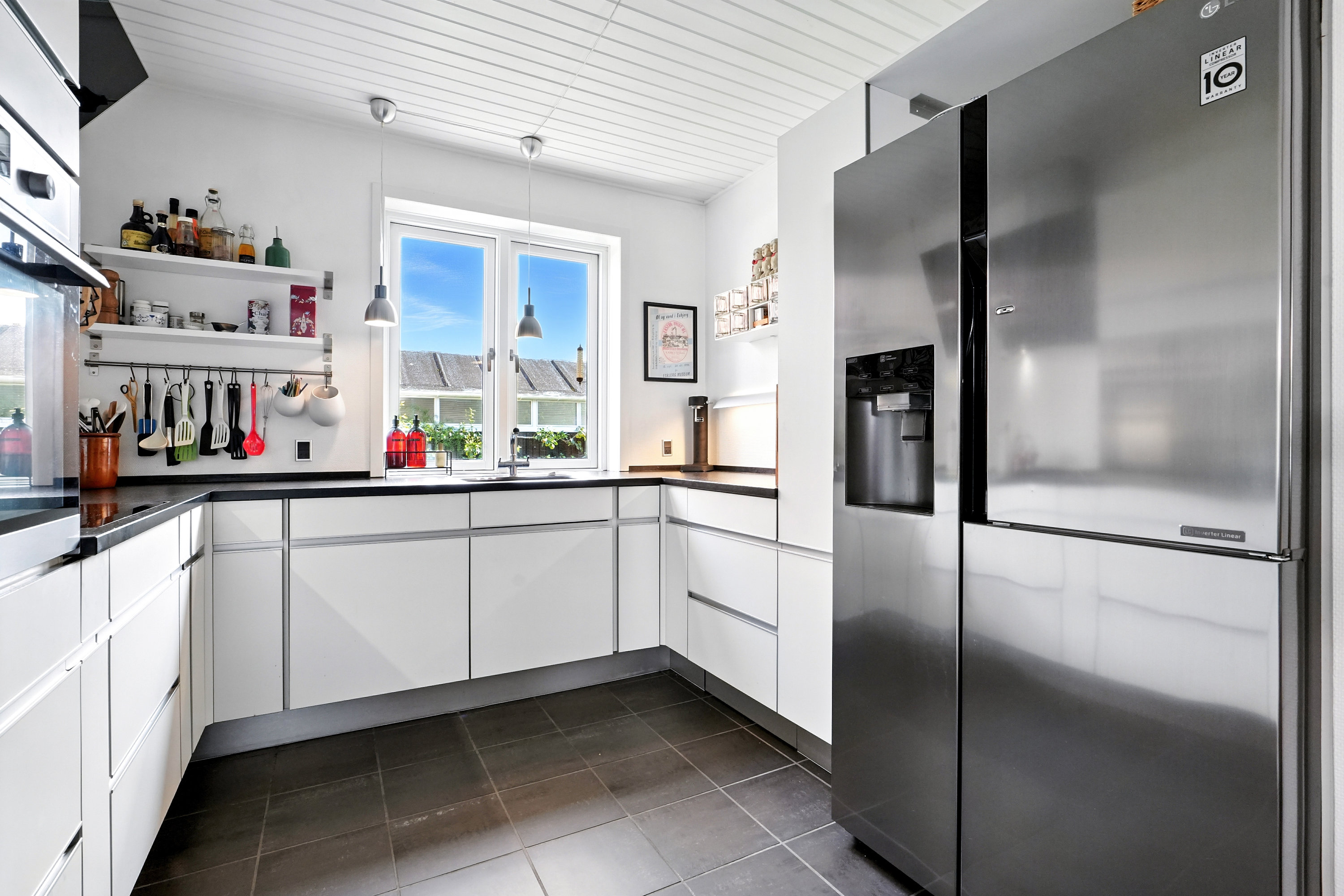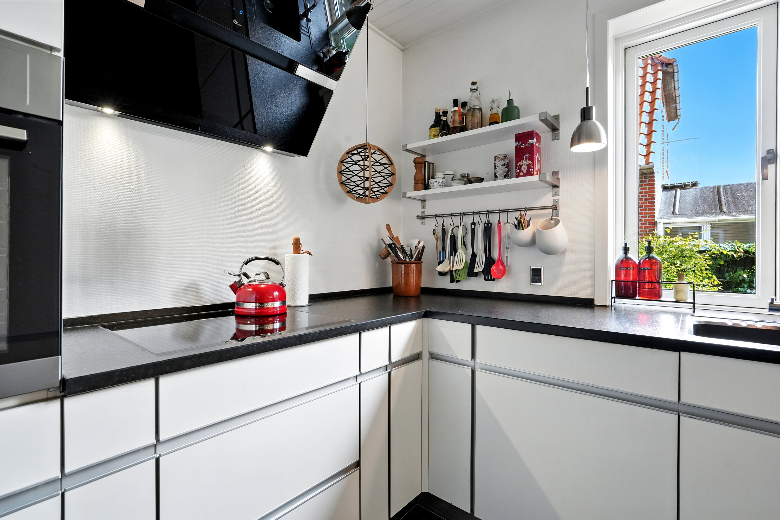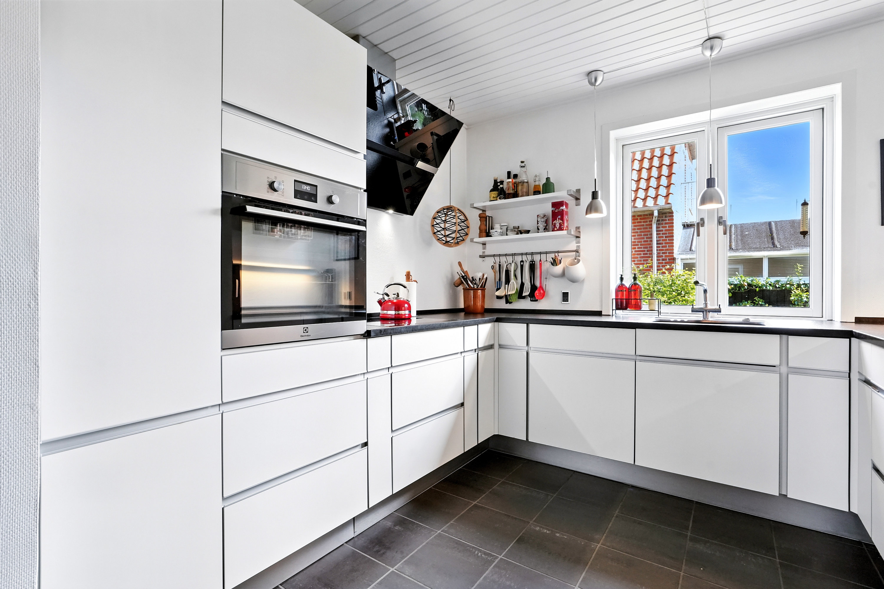 Køkkenet er fra Vordingborg og er udstyret med satineret granit, hvilket giver et eksklusivt og tidløst look. Der er ikke sparet på noget, og køkkenet er både funktionelt og elegant. I stueetagen, samt i et værelse og badeværelset i kælderen samt på badeværelse på 1. sal er der gulvvarme, hvilket sikrer en behagelig temperatur hele året rundt.