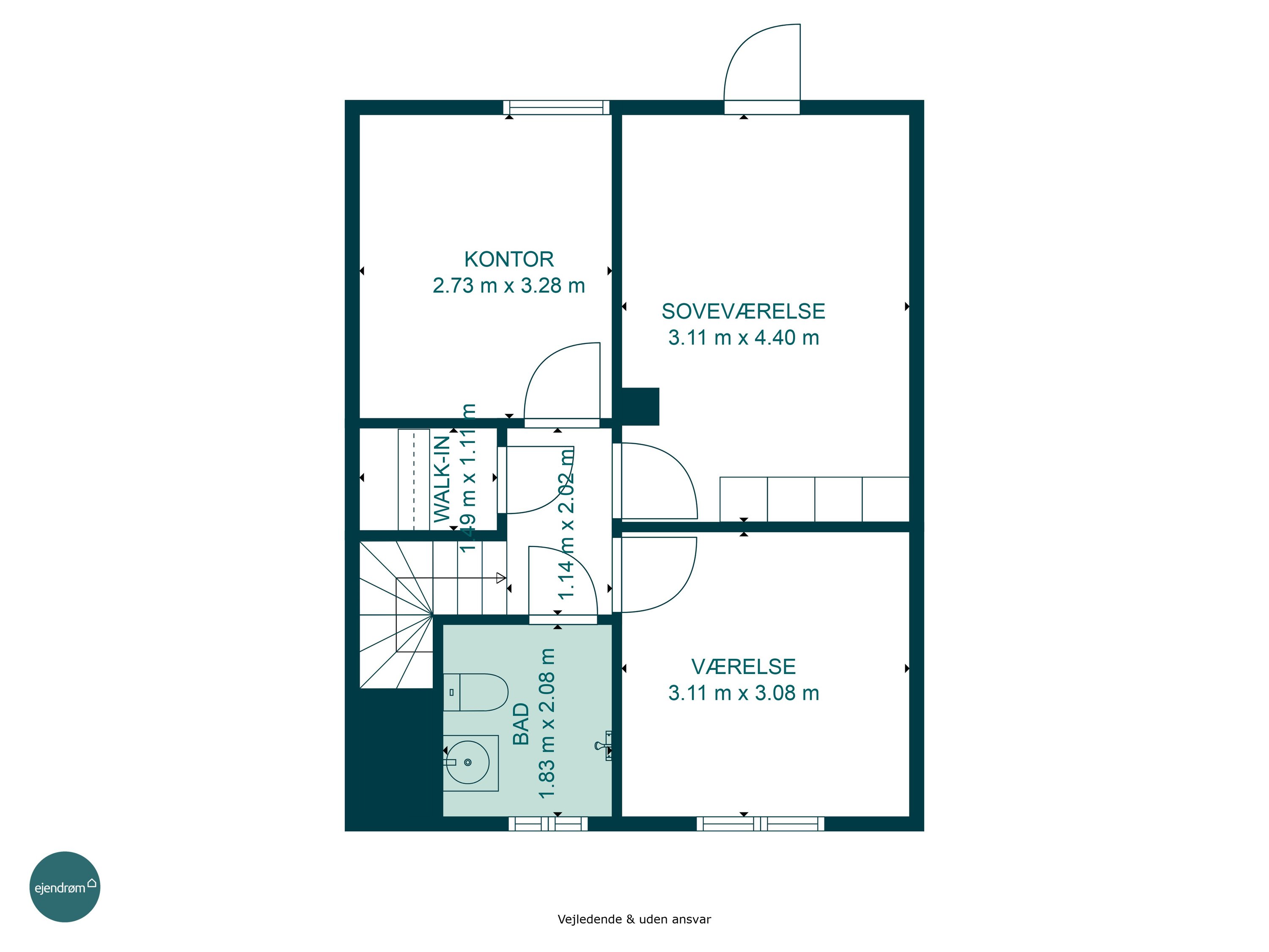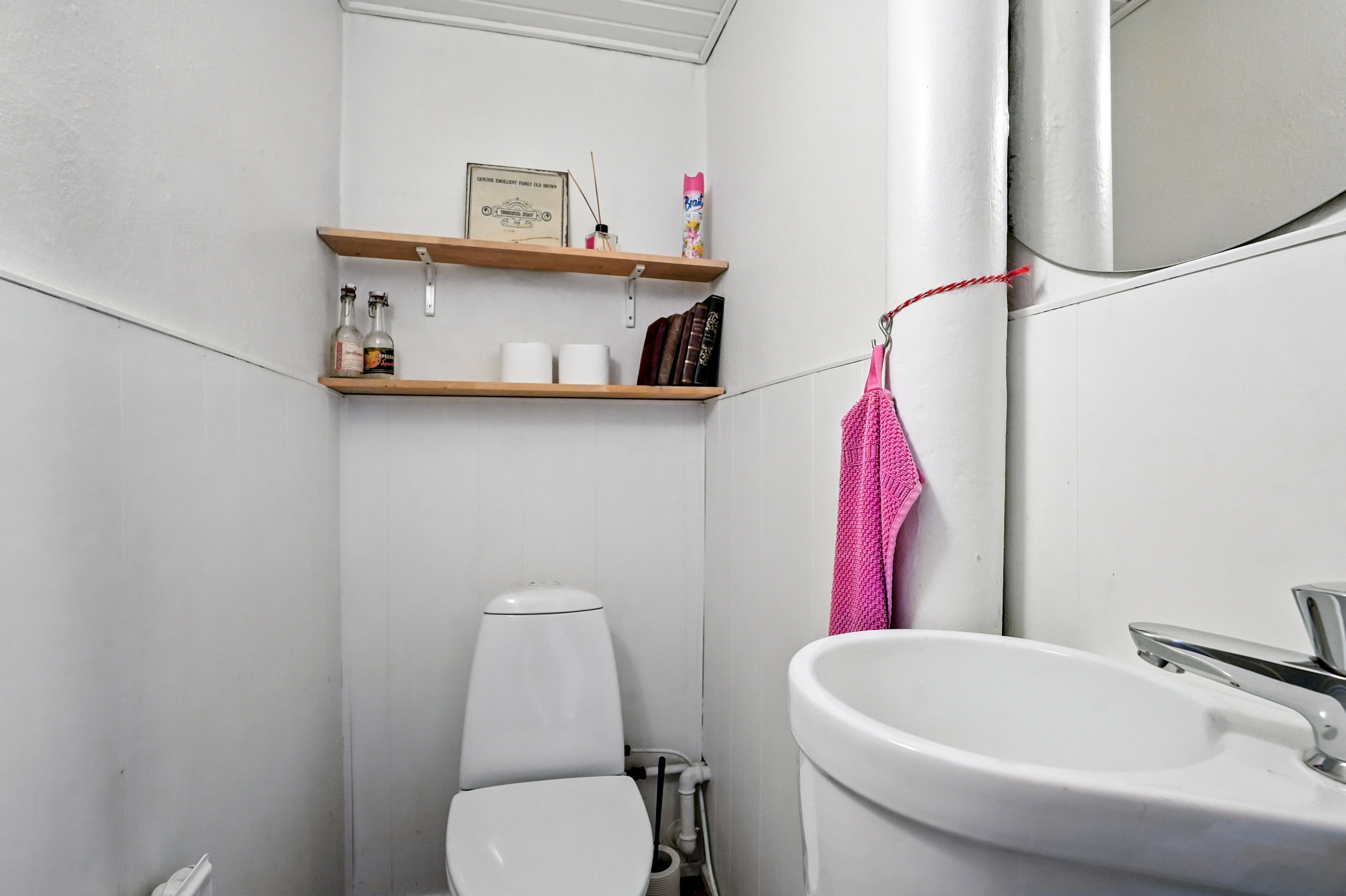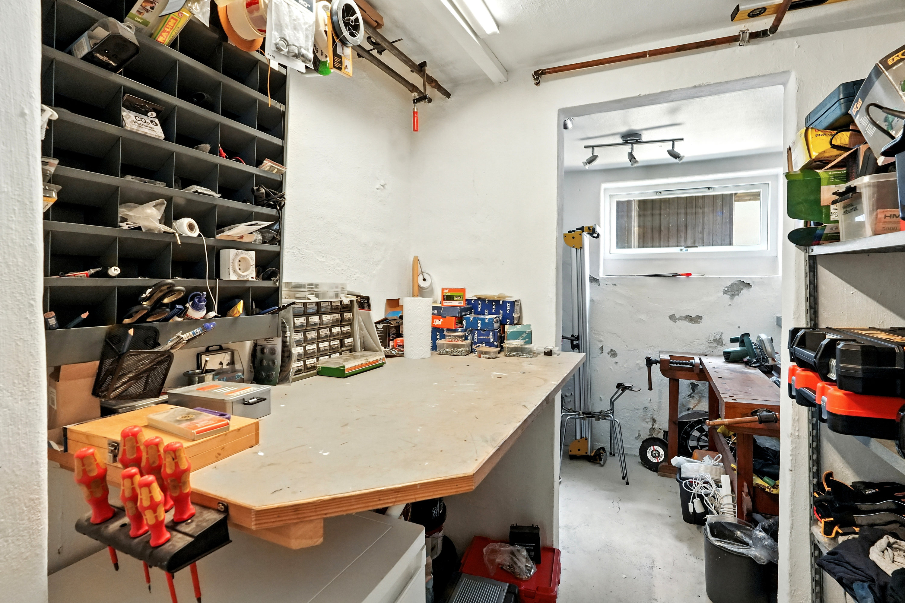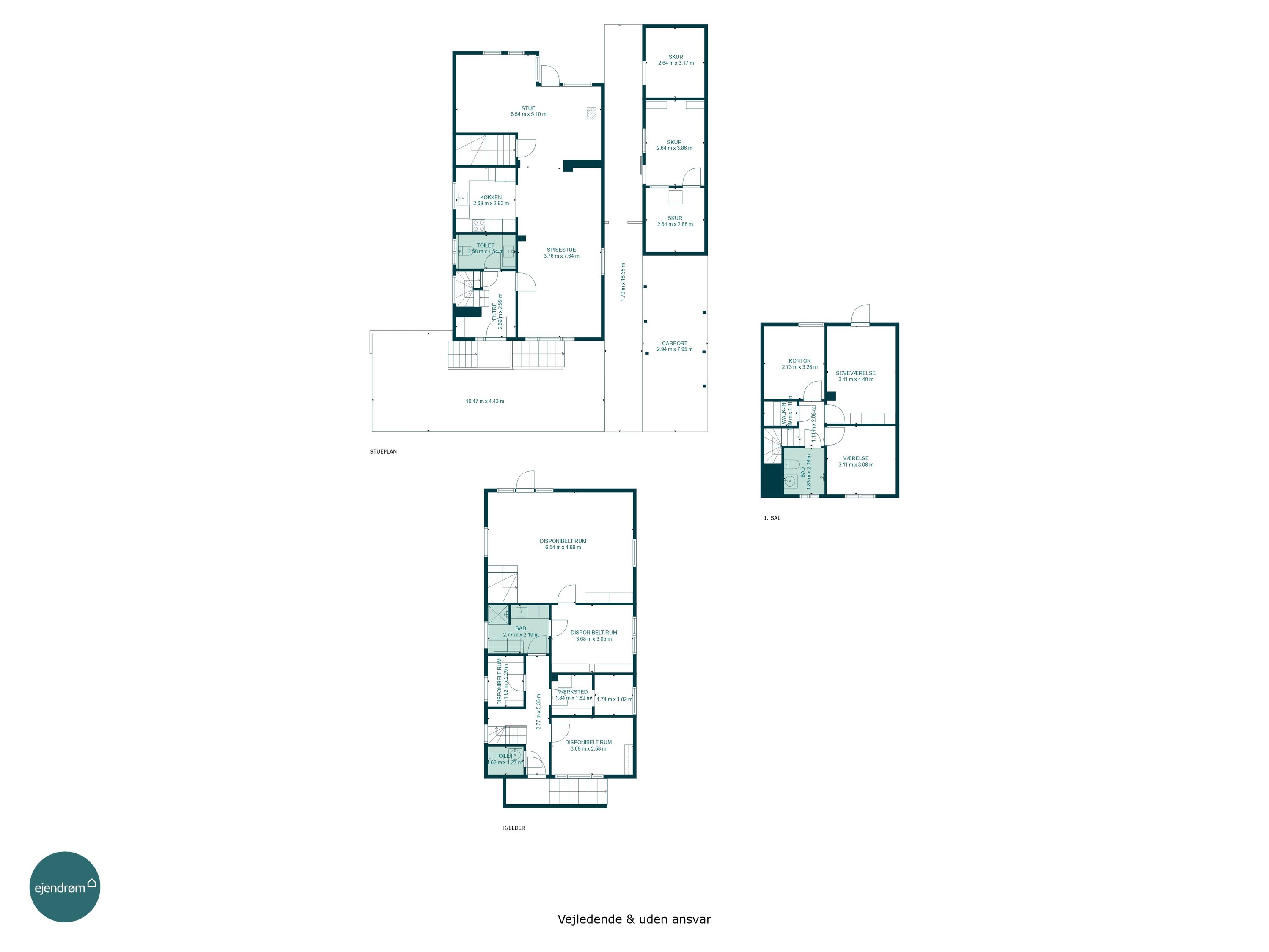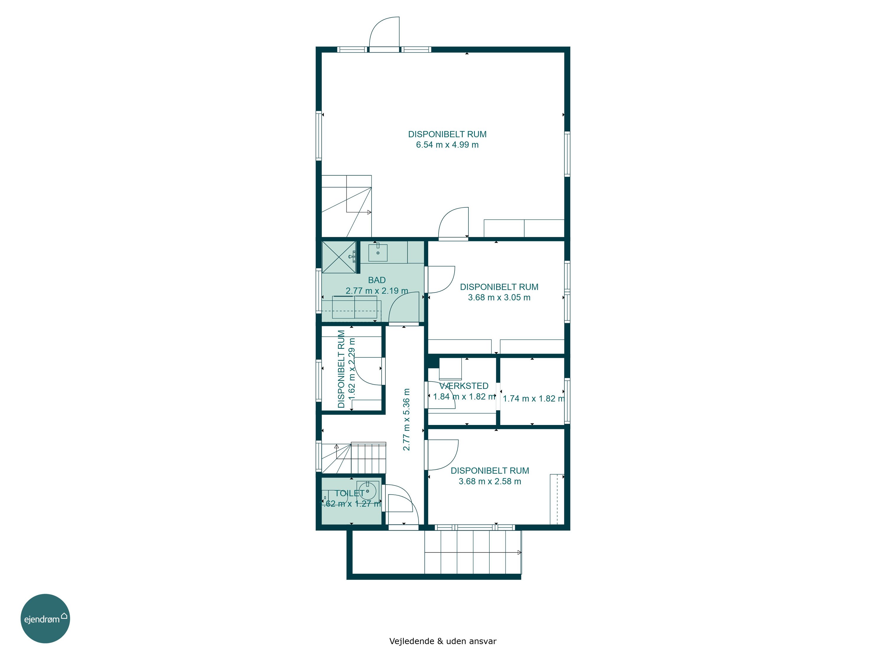 Indvendigt rummer huset tre værelser på første sal, som er ideelt for en lille familie eller som ekstra plads til kontor eller hobbyrum. Kælderen byder på to disponible rum, som kan bruges til opbevaring eller indrettes efter behov. Desuden er der et toilet på hvert plan, hvilket gør hverdagen mere praktisk.
