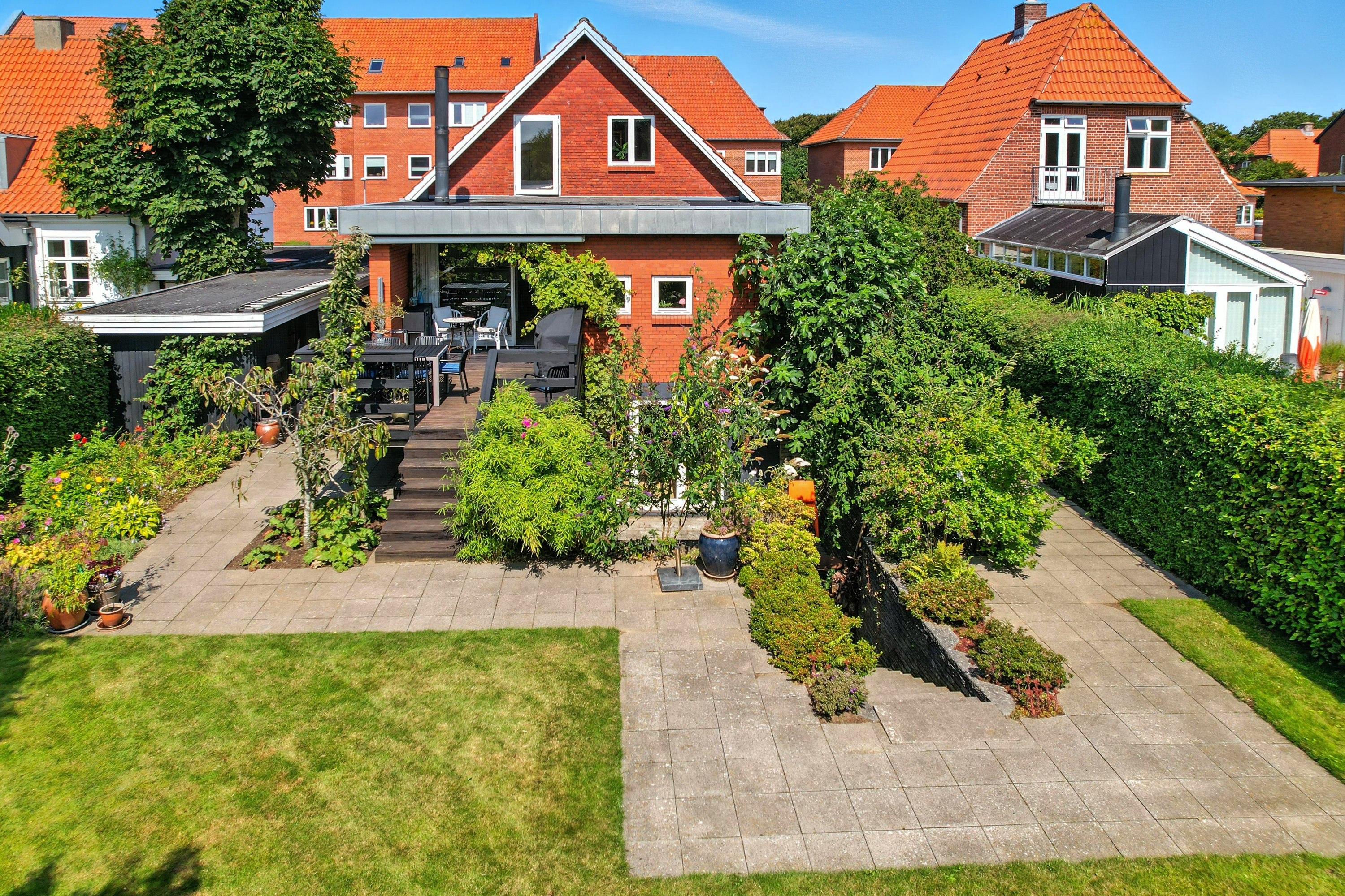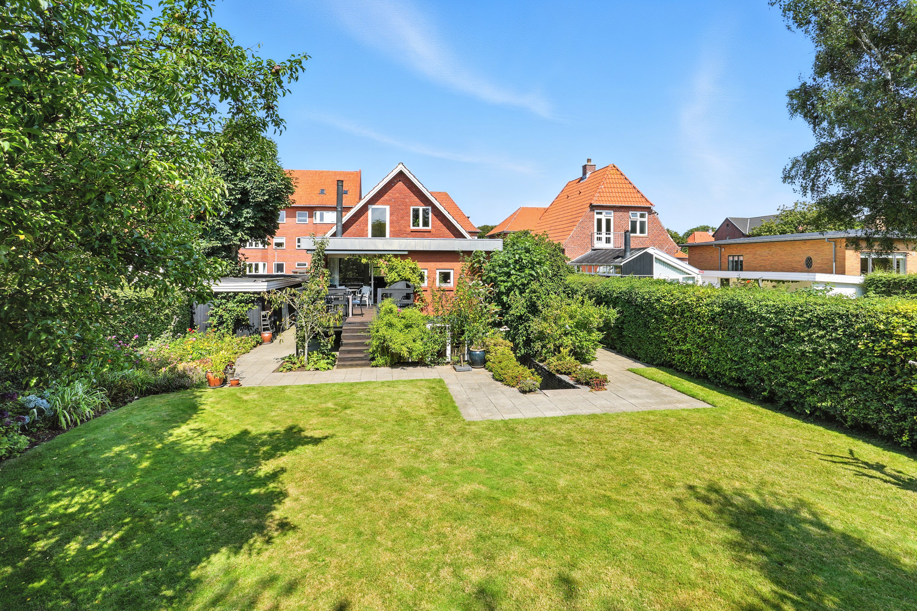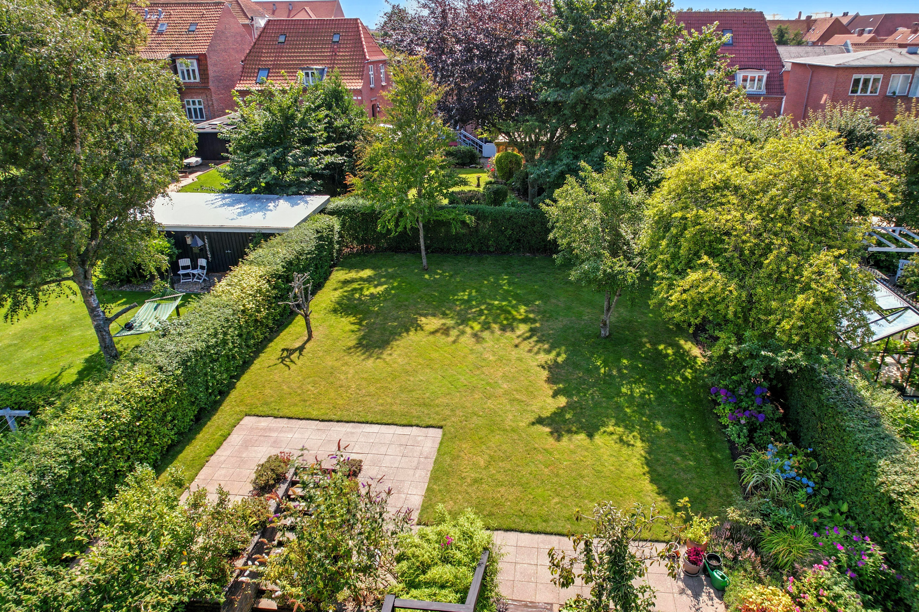 Dette charmerende byhus ligger centralt i Esbjerg C, hvor du får det bedste fra begge verdener: Den perfekte kombination af byens liv og samtidig muligheden for at nyde roen og privatlivet. Huset er omkranset af en smuk have, der giver masser af privatliv på trods af den centrale placering. Den sydvendte terrasse er et sandt fristed, hvor du kan nyde solens timer fra morgen til aften, og den rummelige have giver masser af muligheder for udendørsaktiviteter og afslapning.