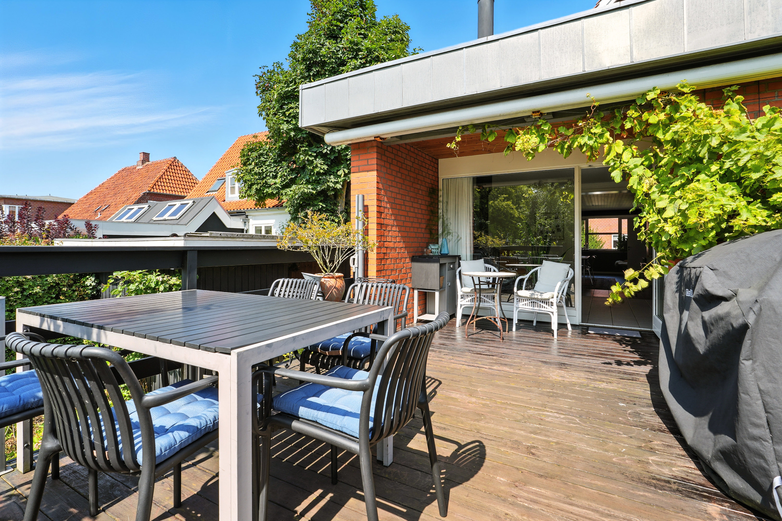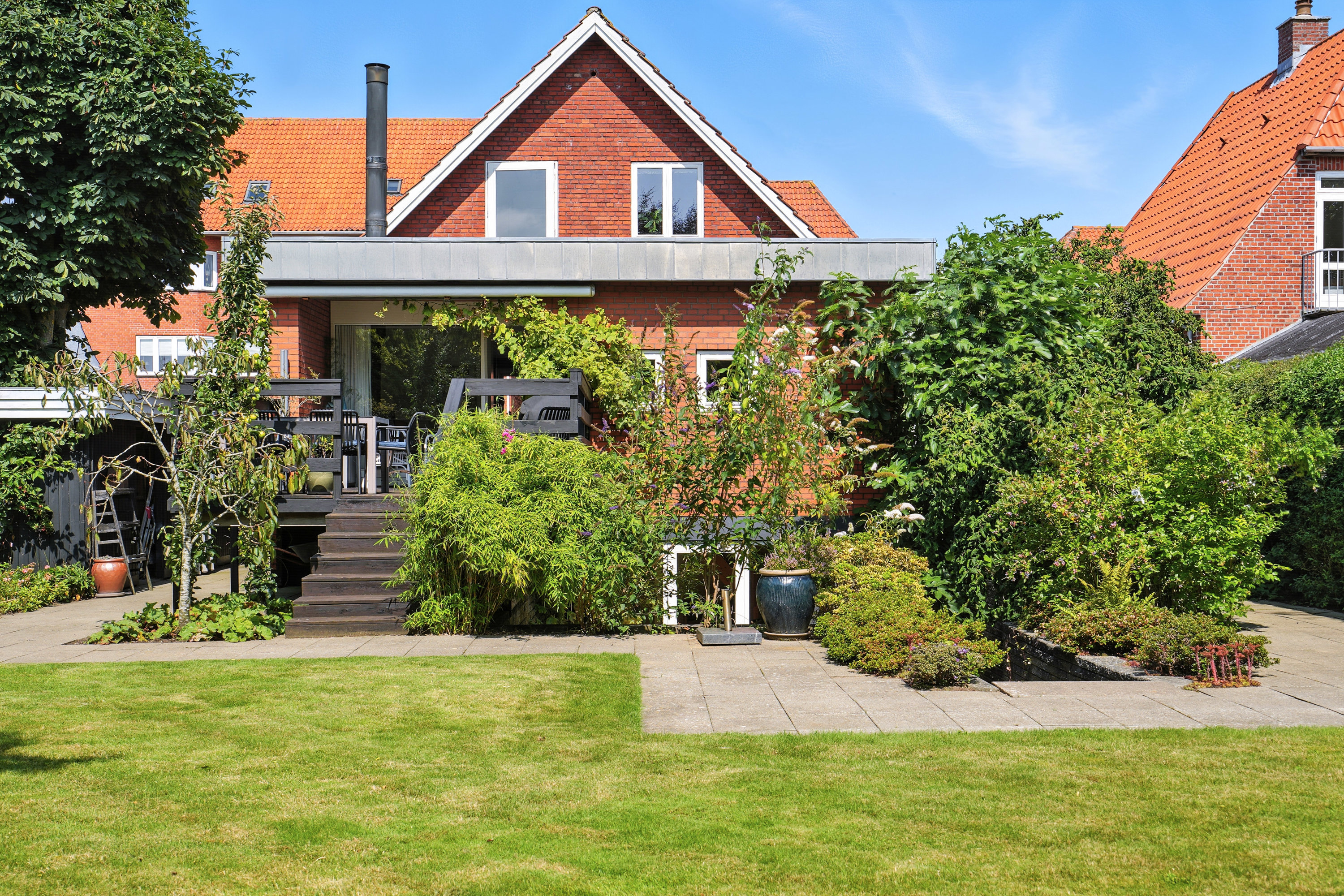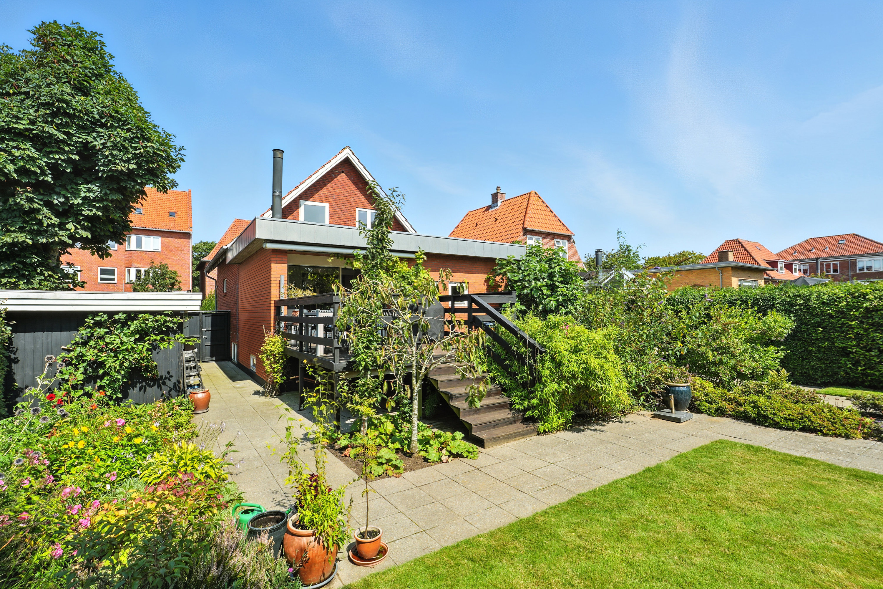 Dette charmerende byhus ligger centralt i Esbjerg C, hvor du får det bedste fra begge verdener: Den perfekte kombination af byens liv og samtidig muligheden for at nyde roen og privatlivet. Huset er omkranset af en smuk have, der giver masser af privatliv på trods af den centrale placering. Den sydvendte terrasse er et sandt fristed, hvor du kan nyde solens timer fra morgen til aften, og den rummelige have giver masser af muligheder for udendørsaktiviteter og afslapning.