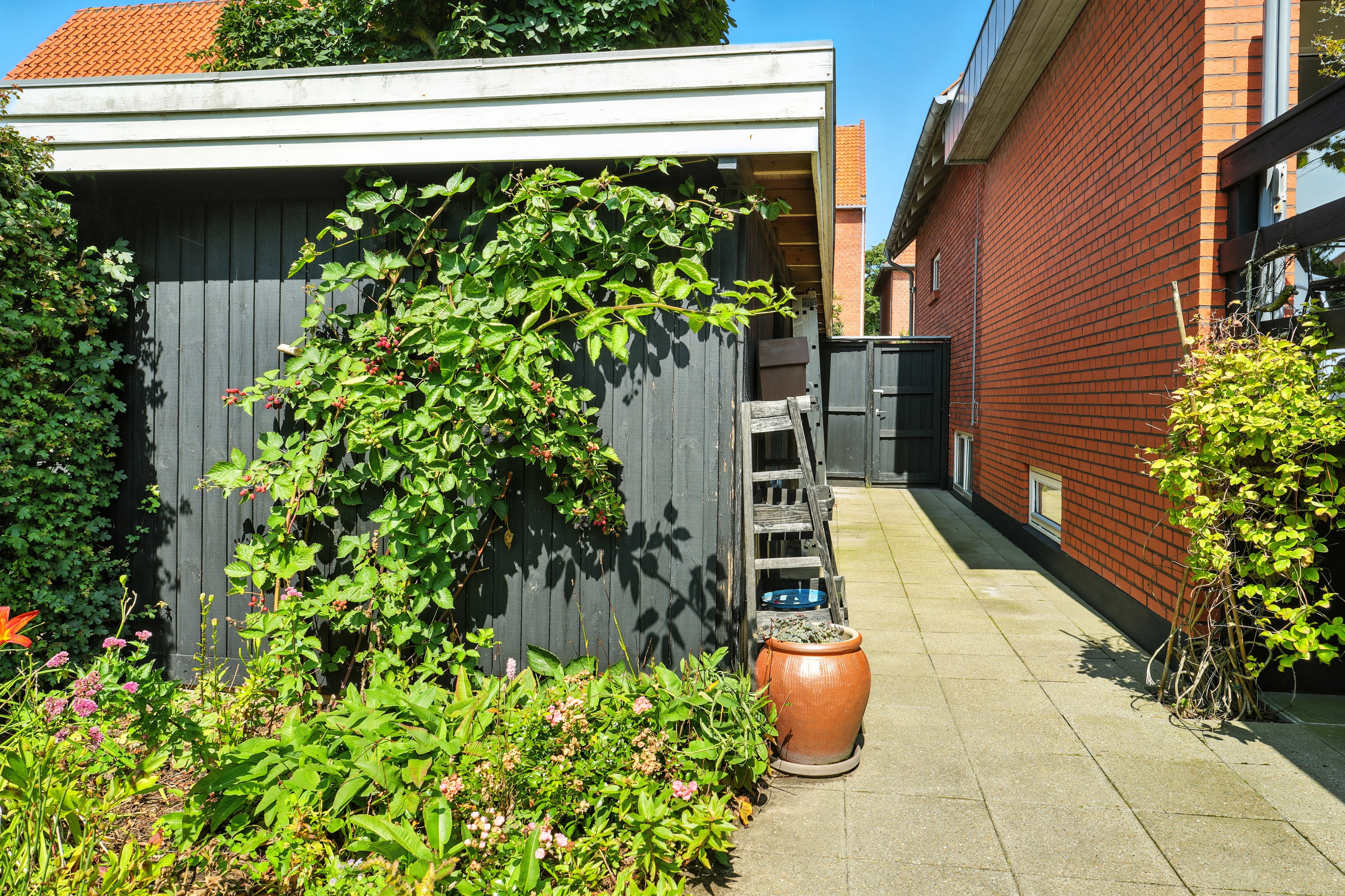 Endelig er der en carport på grunden, som giver mulighed for at køre bilen ind på din egen grund – en ekstra bekvemmelighed i denne centralt beliggende bolig.