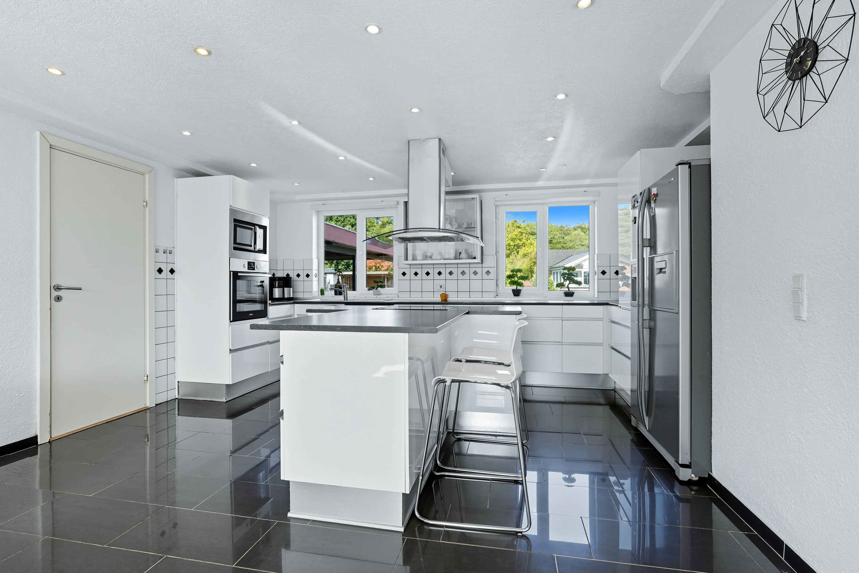 I stueplan bydes I velkommen i et stort køkken-alrum fra 2015/2016, hvor der er god plads til madlavning og hverdagens samvær. Køkkenet ligger i åben forbindelse til spisestuen, mens der i forlængelse heraf er endnu en opholdsstue – ideel som hyggelig stue eller tv-rum. Herfra er der direkte adgang til husets terrasse.