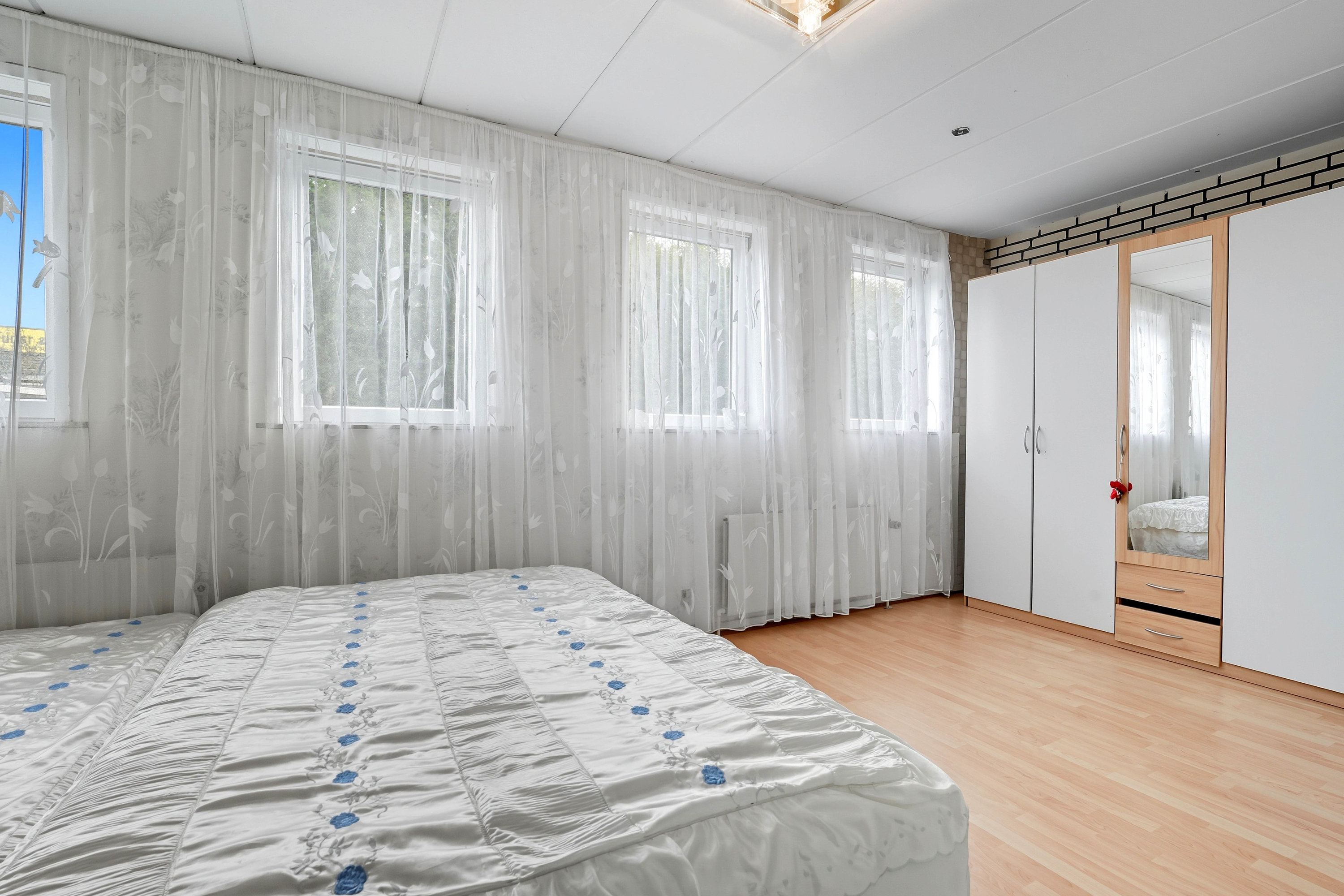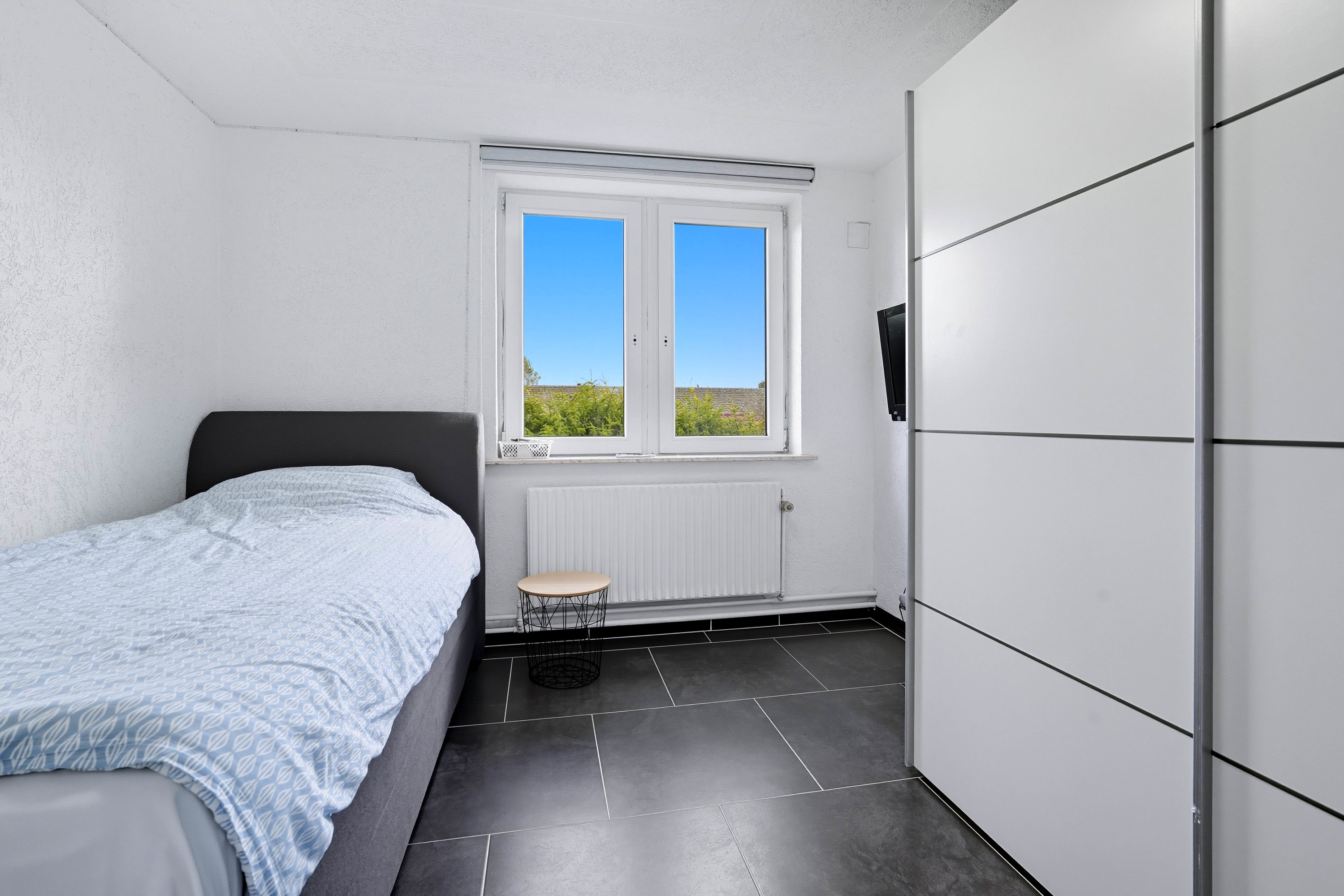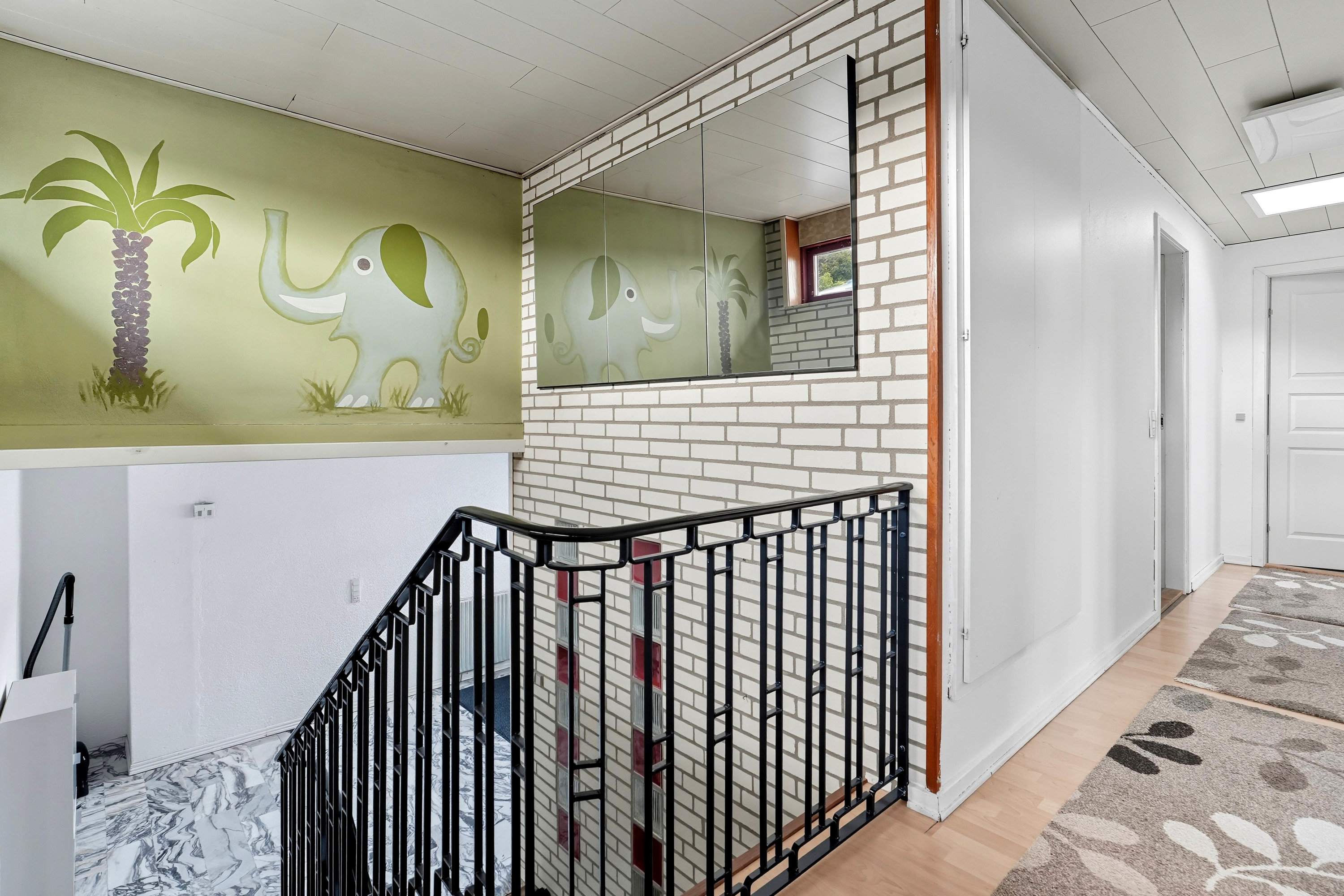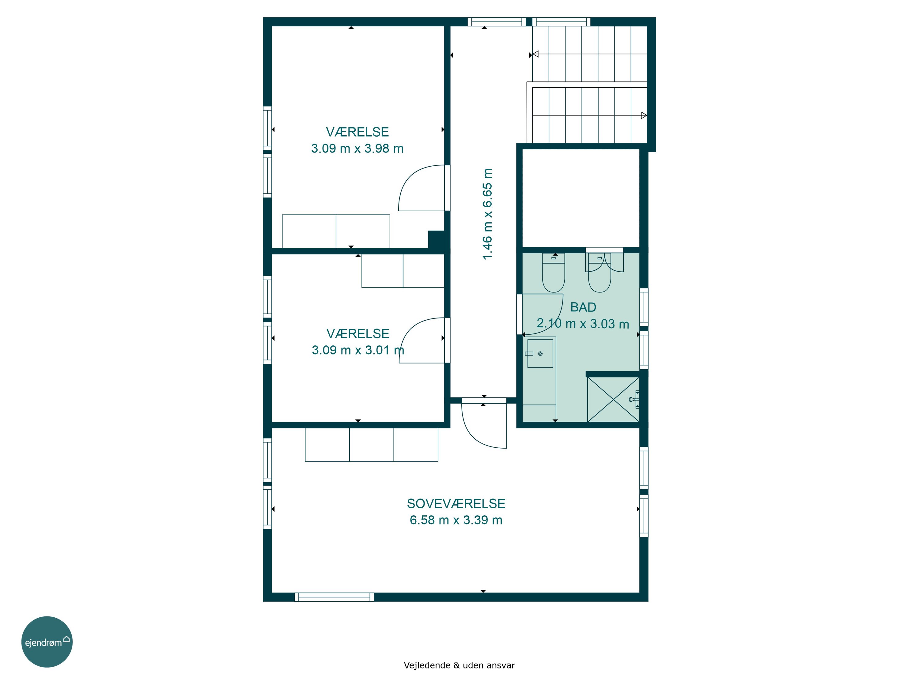 Førstesalen rummer tre værelser samt endnu et badeværelse med gulvvarme – en oplagt afdeling til børnene eller teenageafdelingen.