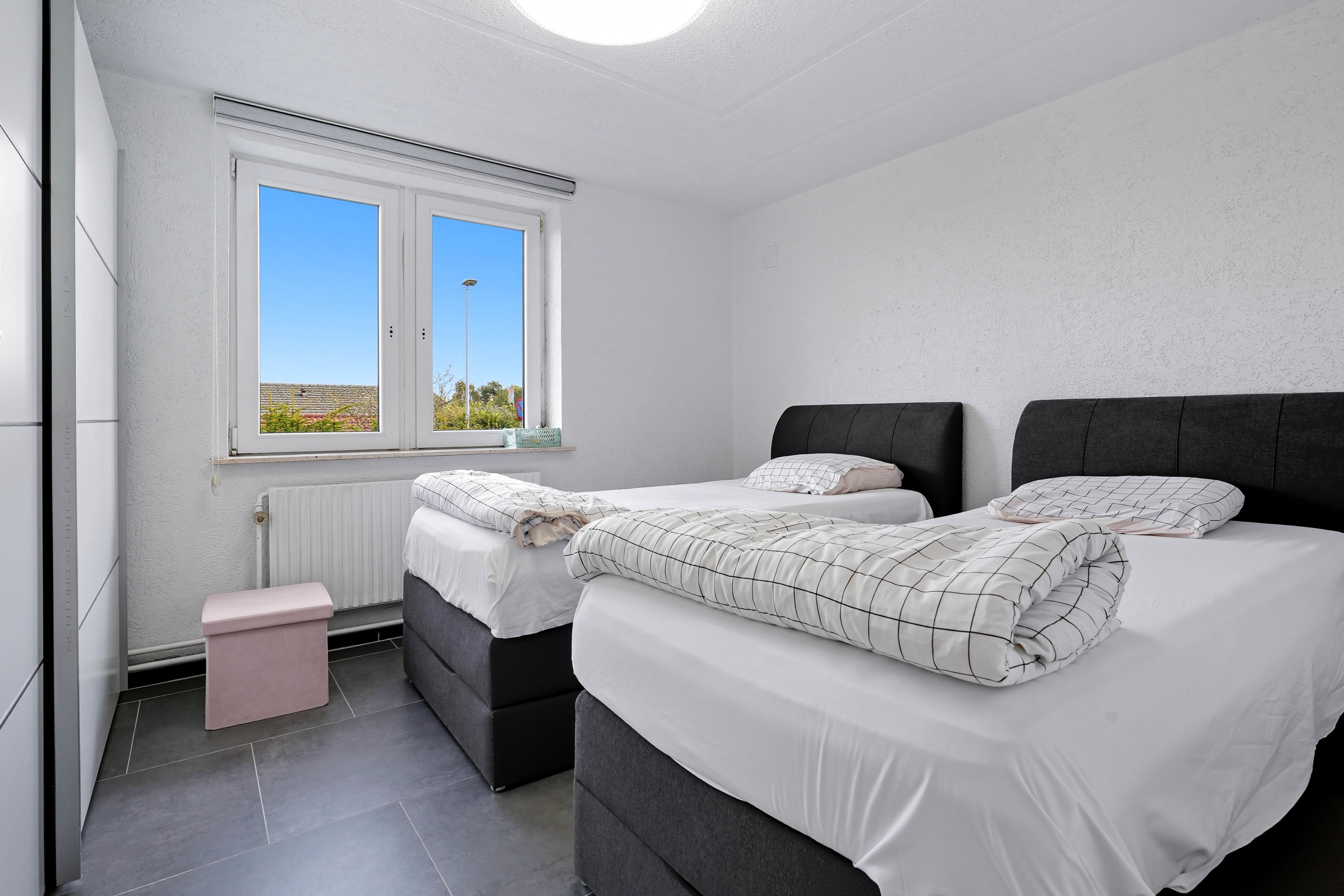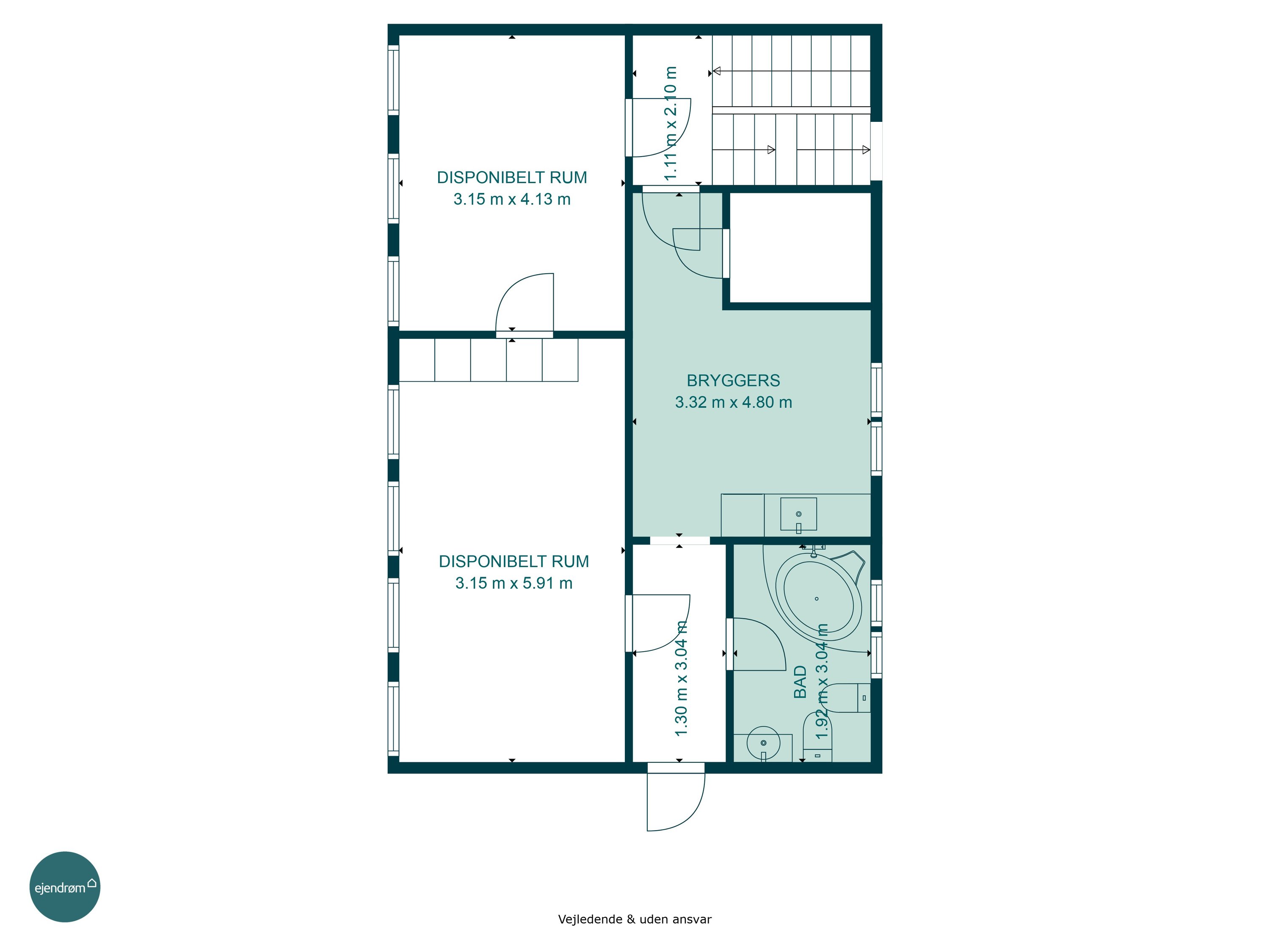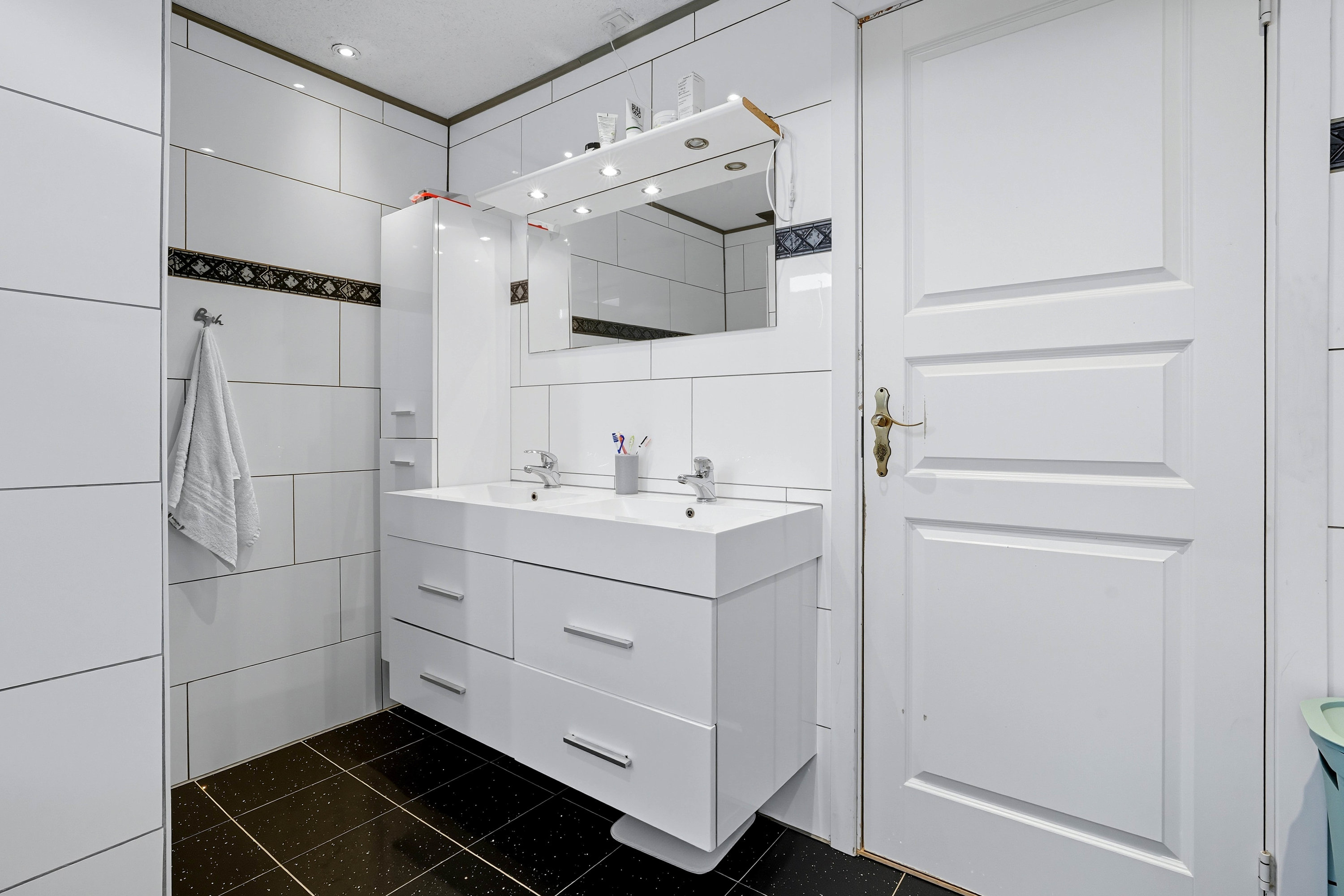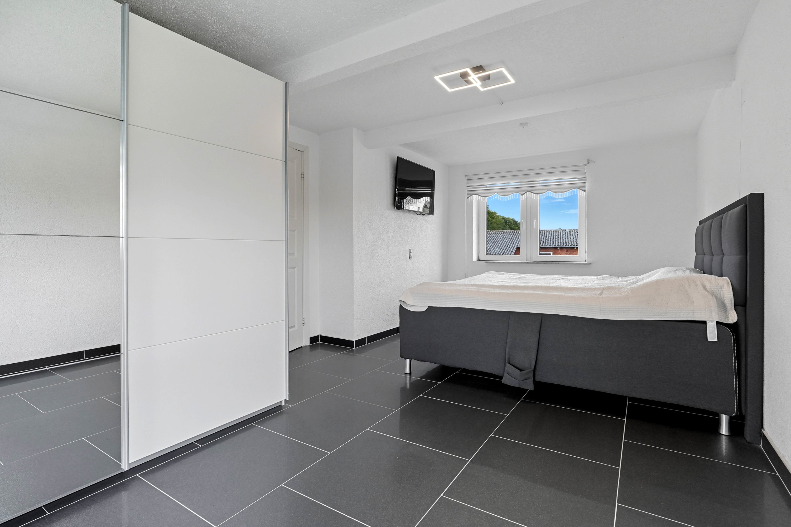 Førstesalen rummer tre værelser samt endnu et badeværelse med gulvvarme – en oplagt afdeling til børnene eller teenageafdelingen.
