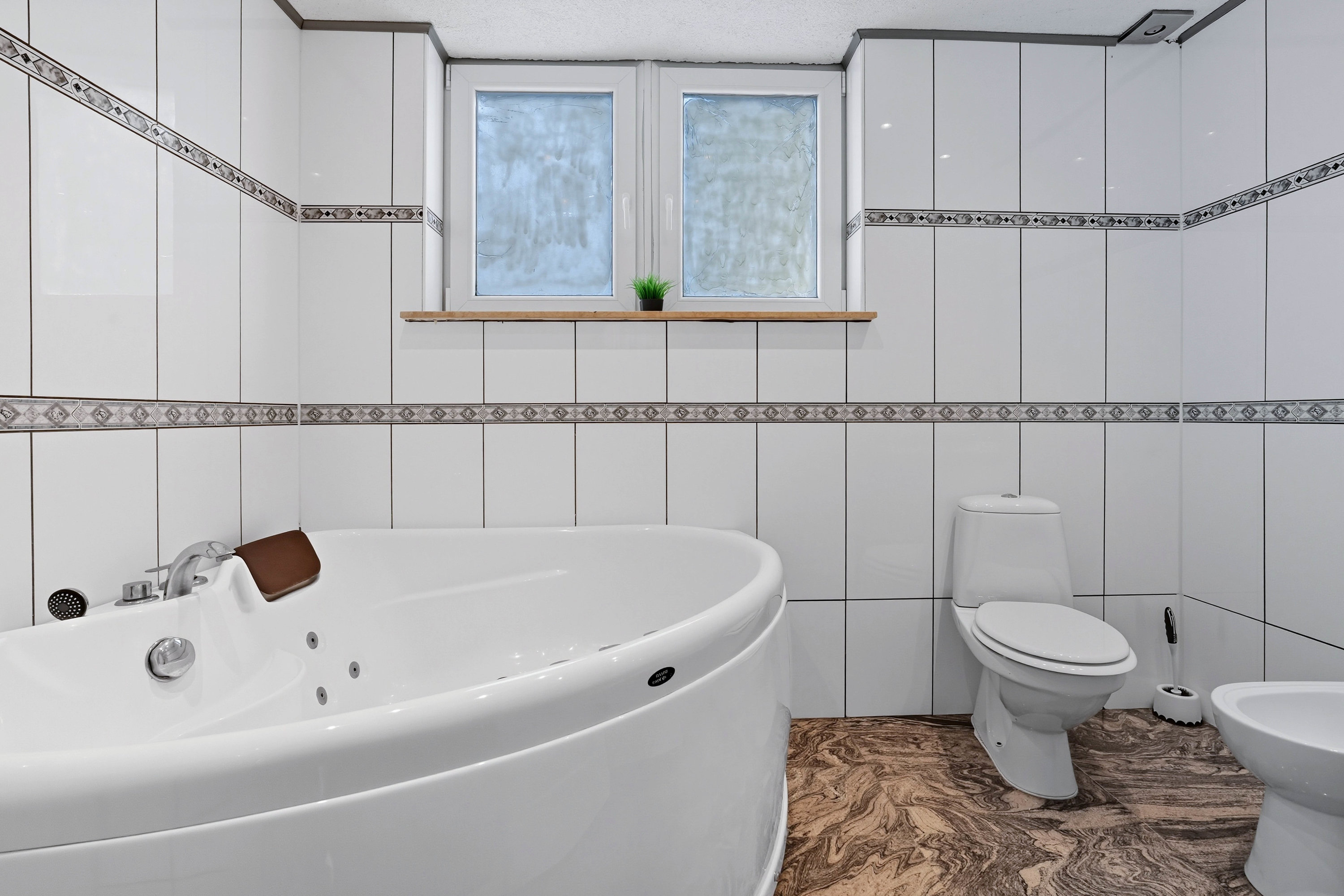På samme etage finder I et lyst soveværelse, et badeværelse med gulvvarme, et bryggers samt et ekstra toilet.