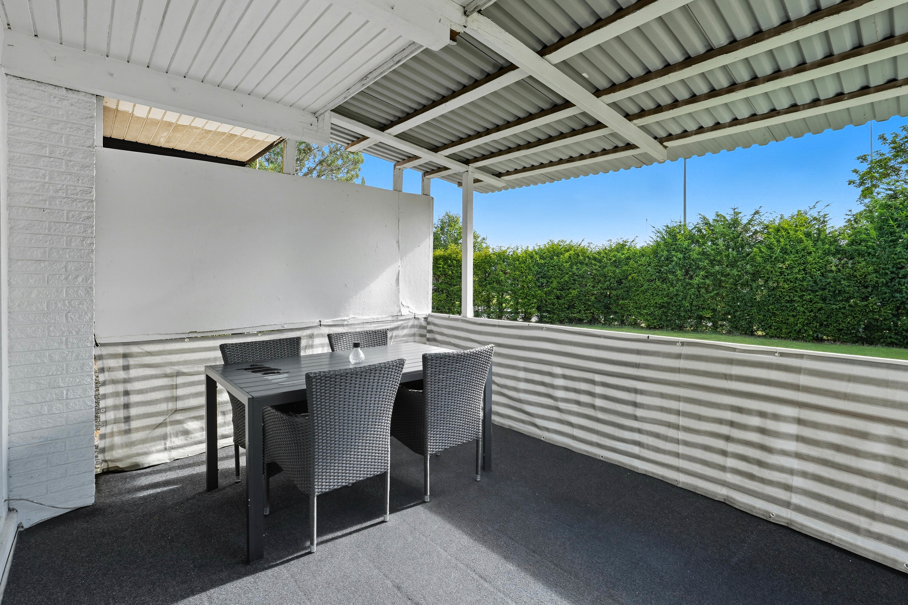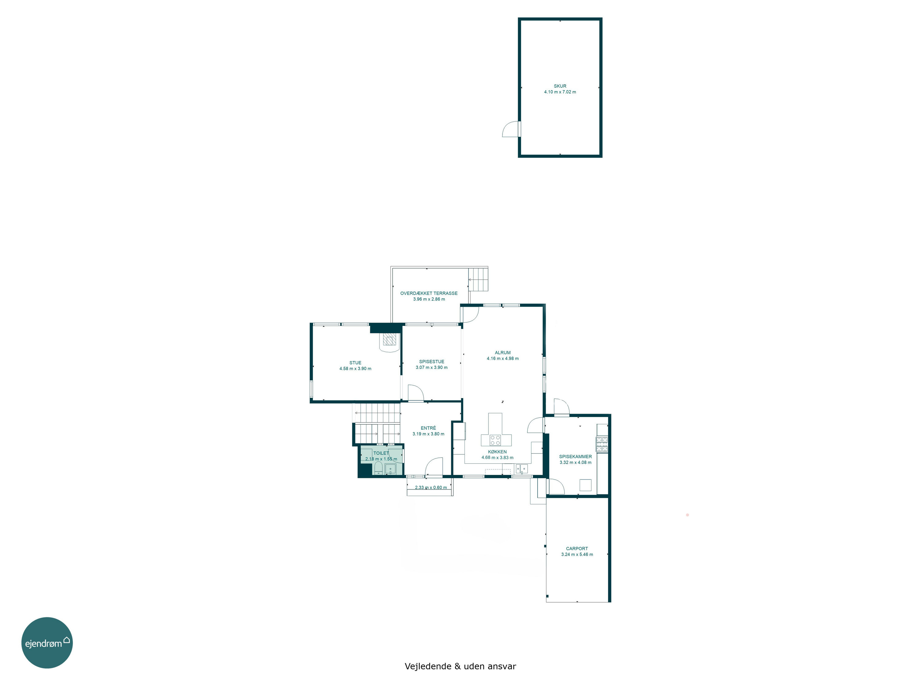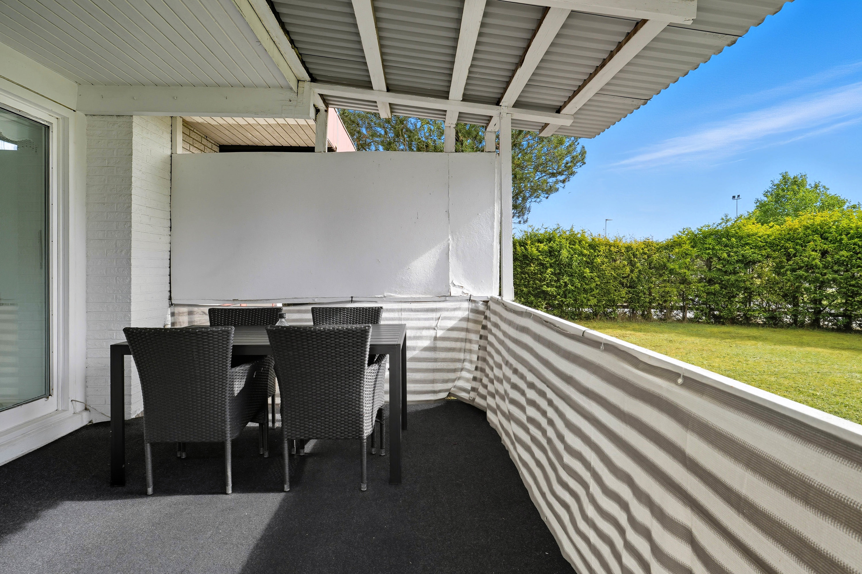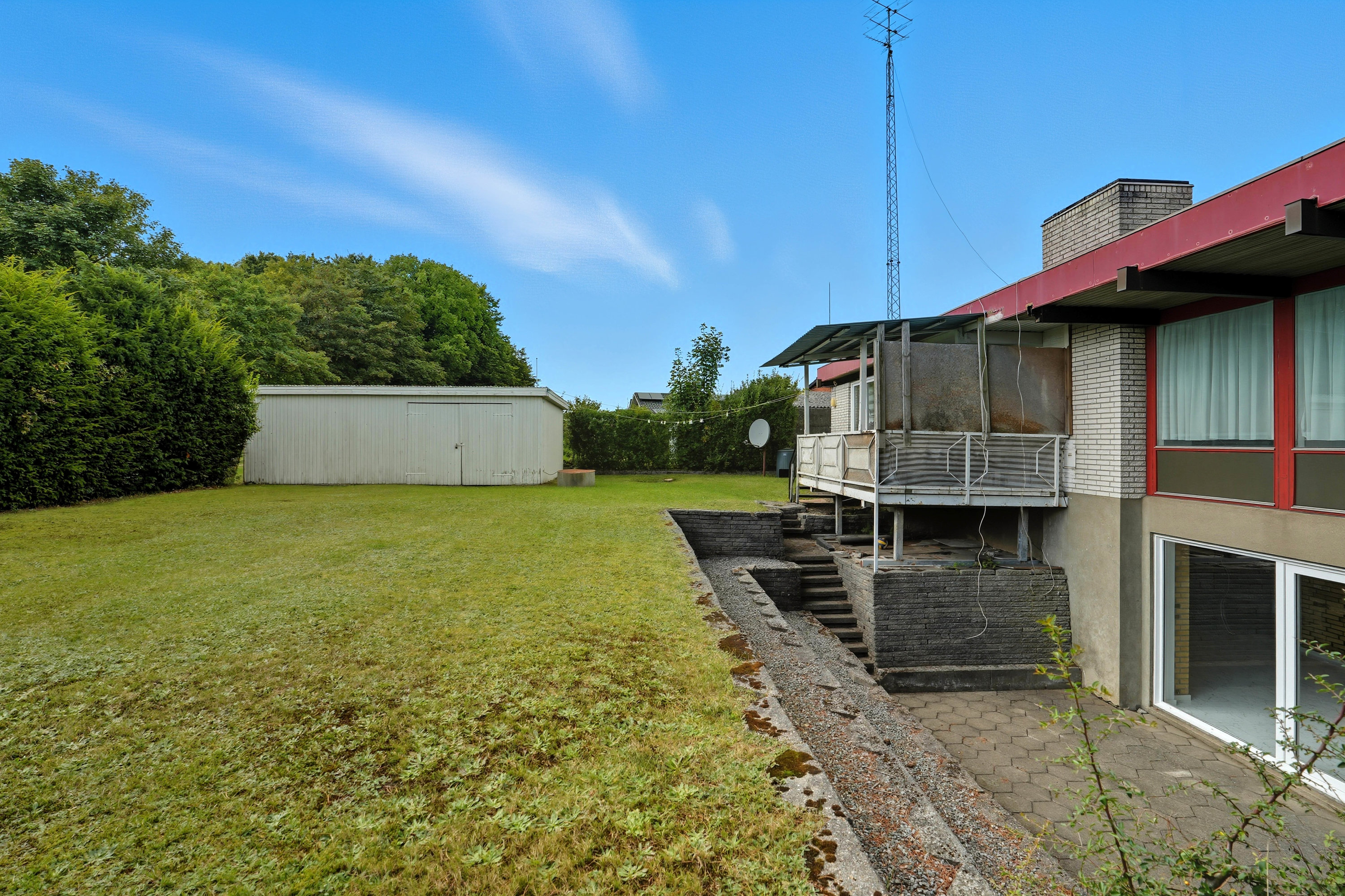 Udenfor fuldendes helheden af både carport, garage og udhus, så der er rigeligt med plads til biler, cykler og opbevaring.