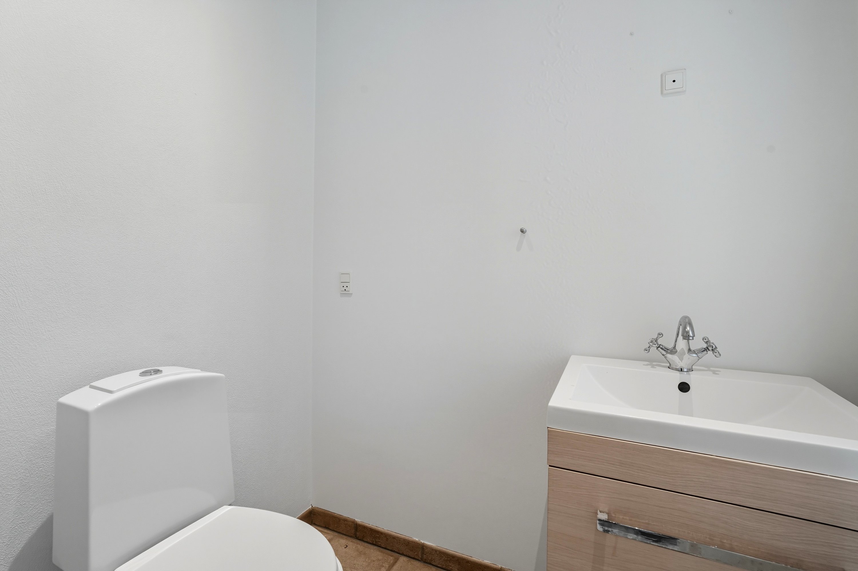 Indretningen byder på en stor og præsentabel bryggers. Hertil er der et dejligt gæste-W.C., som er ideelt at have i stueplanen. Alting flot moderniseret i tidløse og gode materialer.