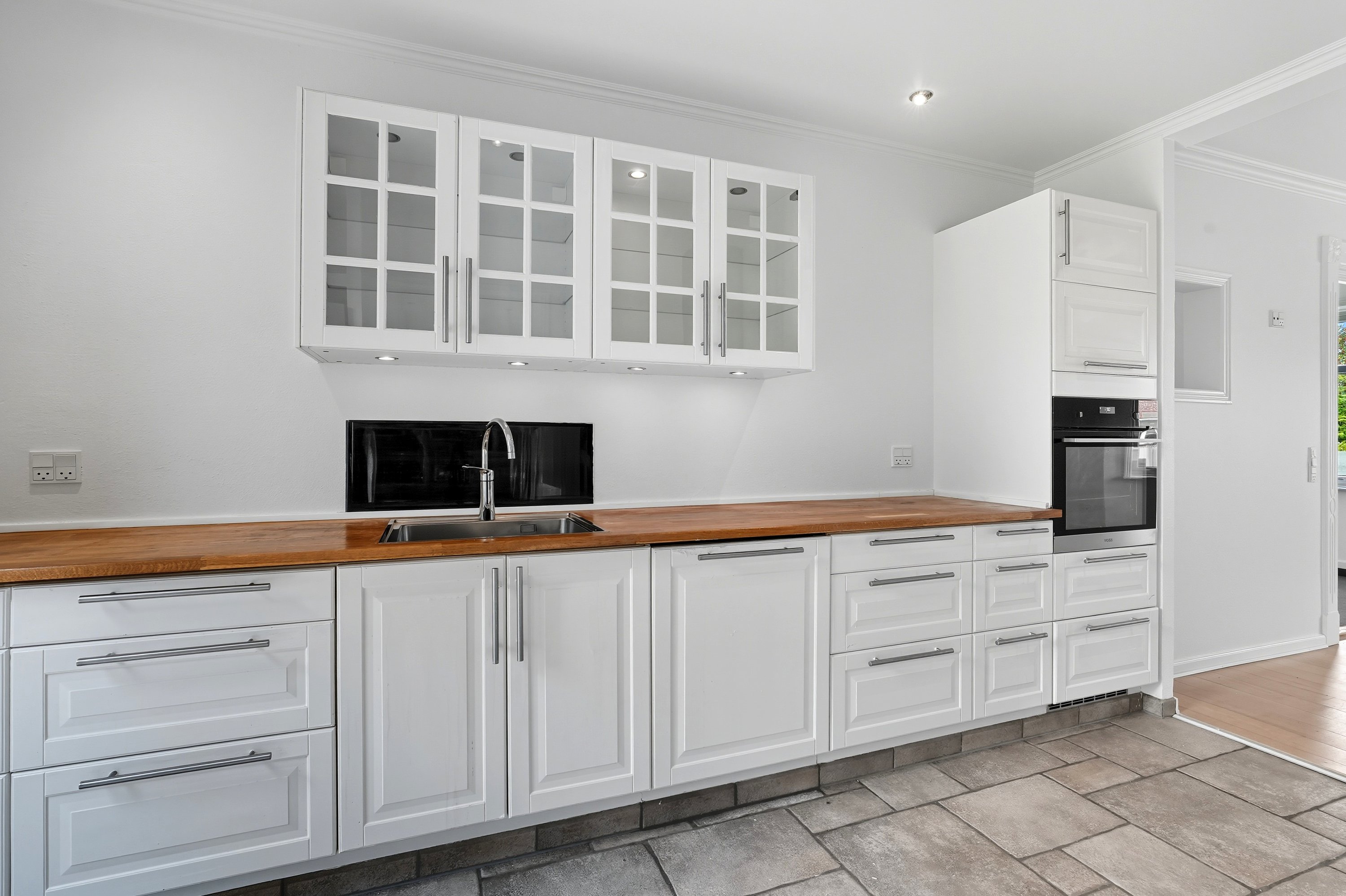 Bag de franske døre er der en hyggelig opholdsstue med gode indretningsmuligheder og brændeovn. En hyggelig stue som er perfekt for familien der ønsker de bedste rammer, når samværet skal styrkes.