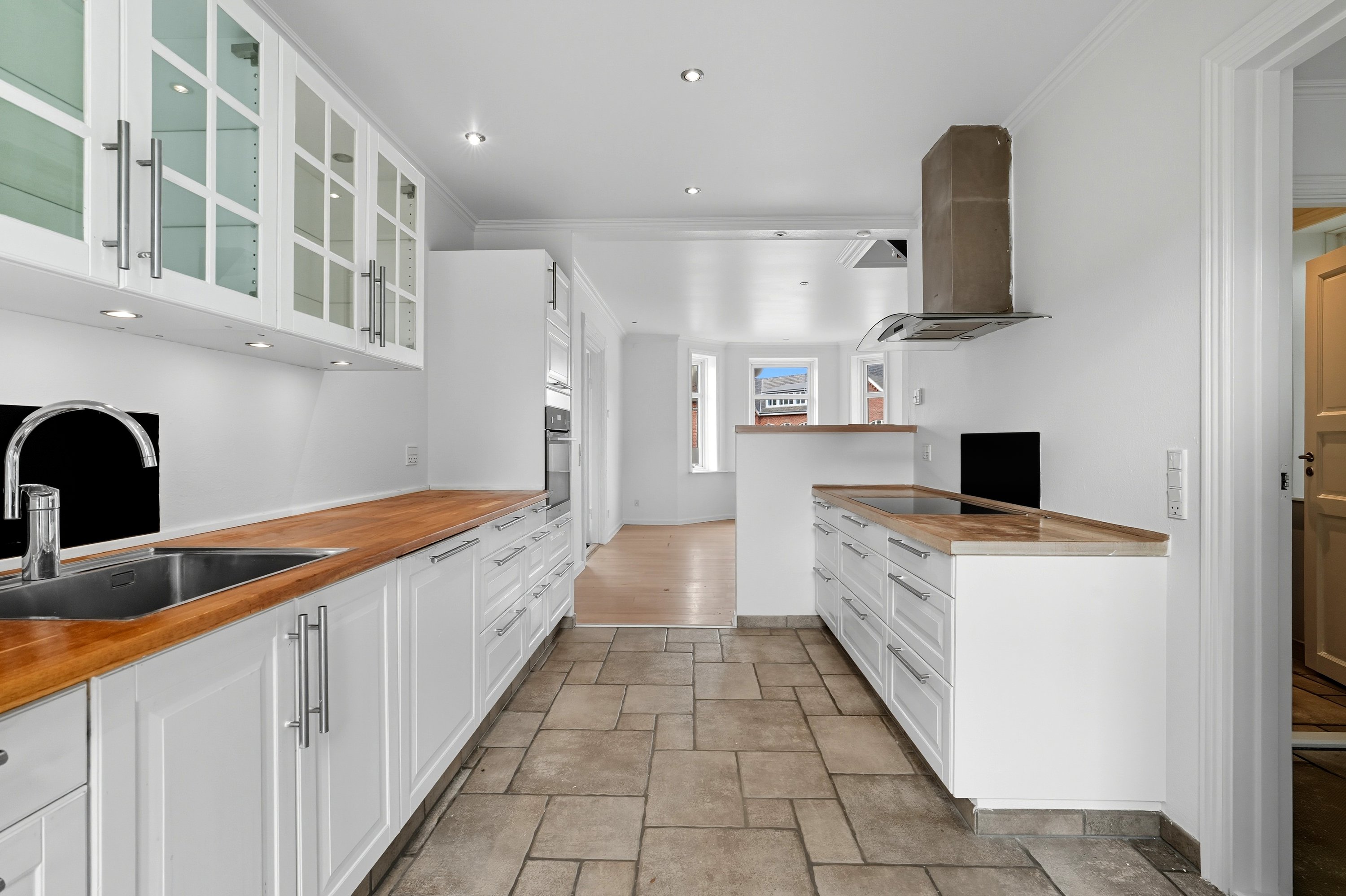 “Hjertet” er det åbne og smukke køkken/alrum. Ligesom bryggerset, er dette ligeledes flot moderniseret. Det betyder også at der er en god rød tråd i hjemmet, som danner rammerne om stueplanen. Køkkenet har masser af skabs- og bordplads. Dertil er der masser af plads i alrummet til det store langbord, når familien er samlet.