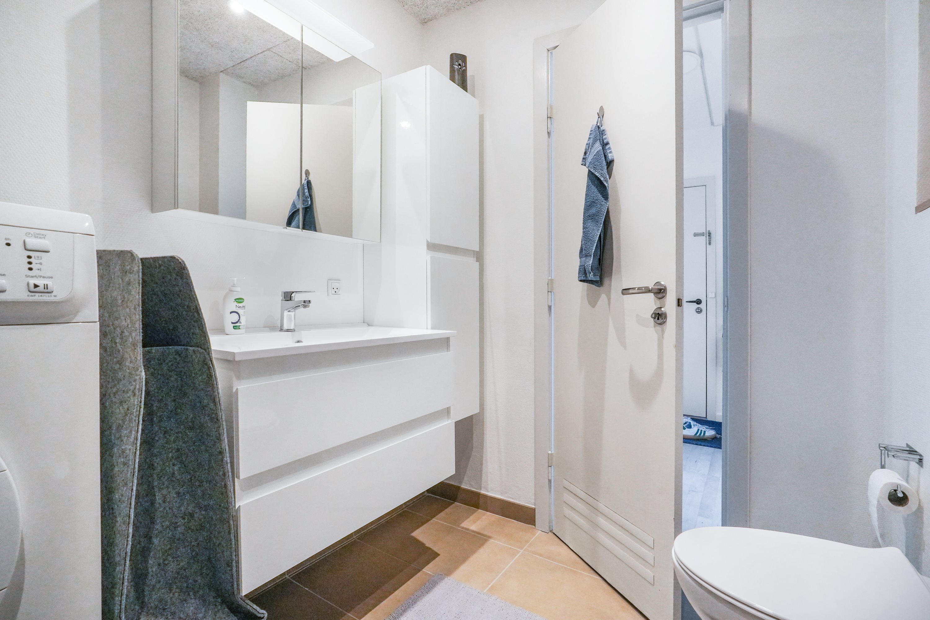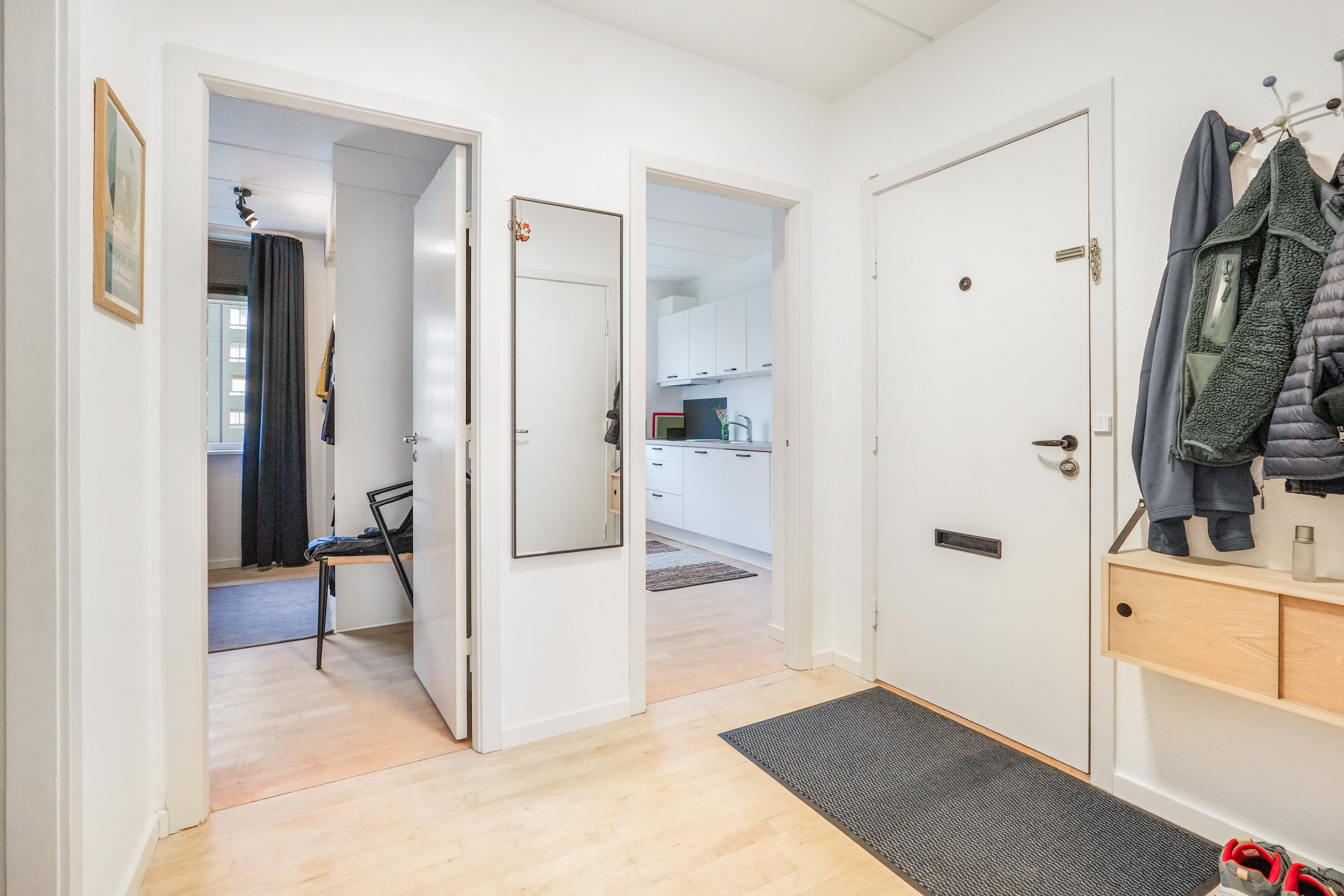 Rummelig entré med plads til overtøj og sko.