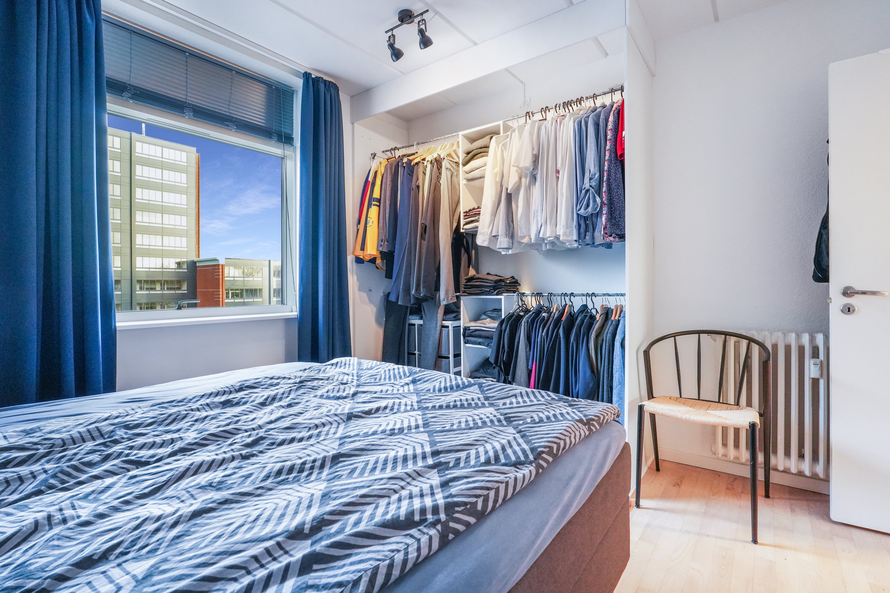 Stort soveværelse med masser af skabsplads, perfekt til opbevaring.