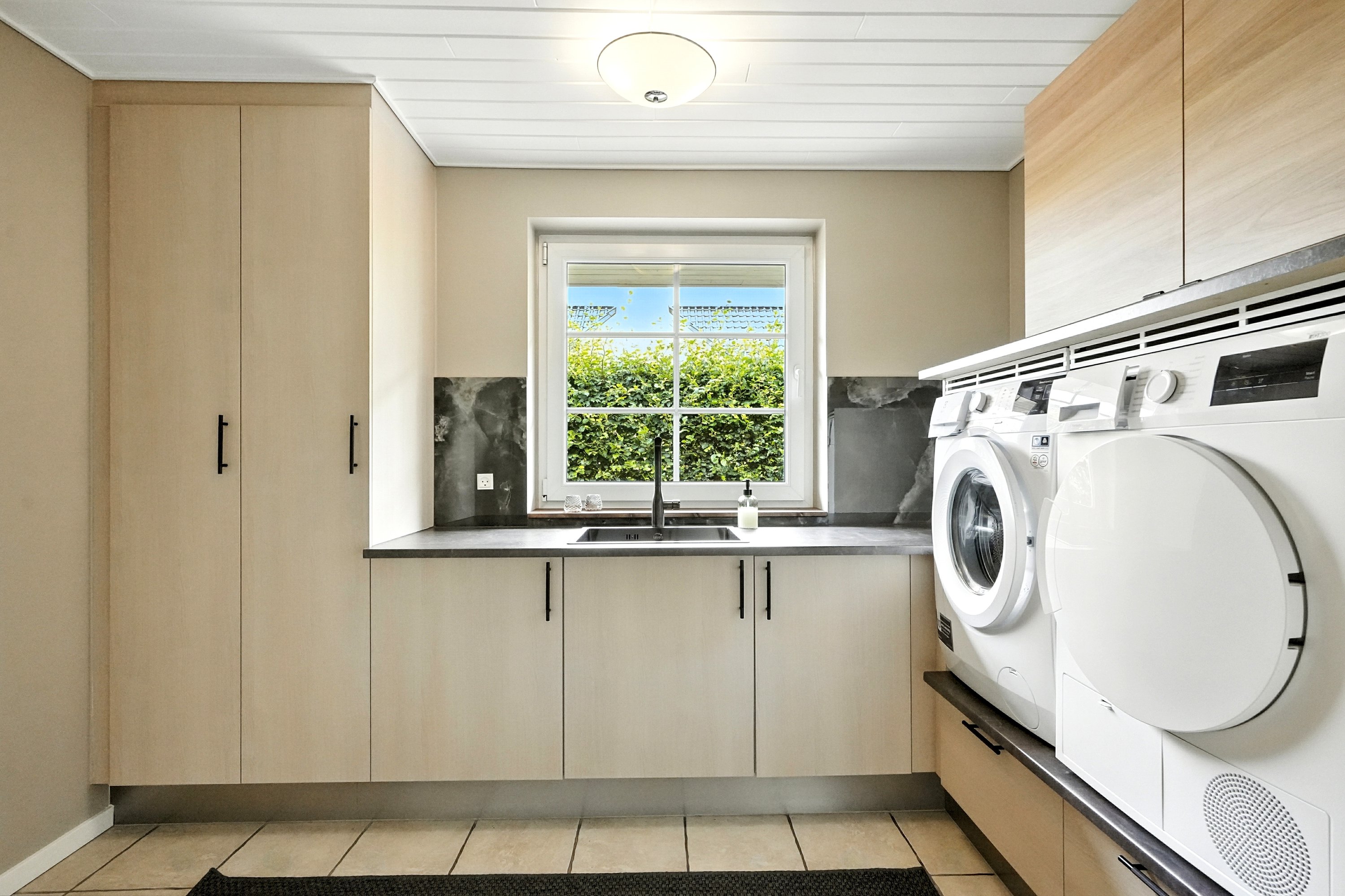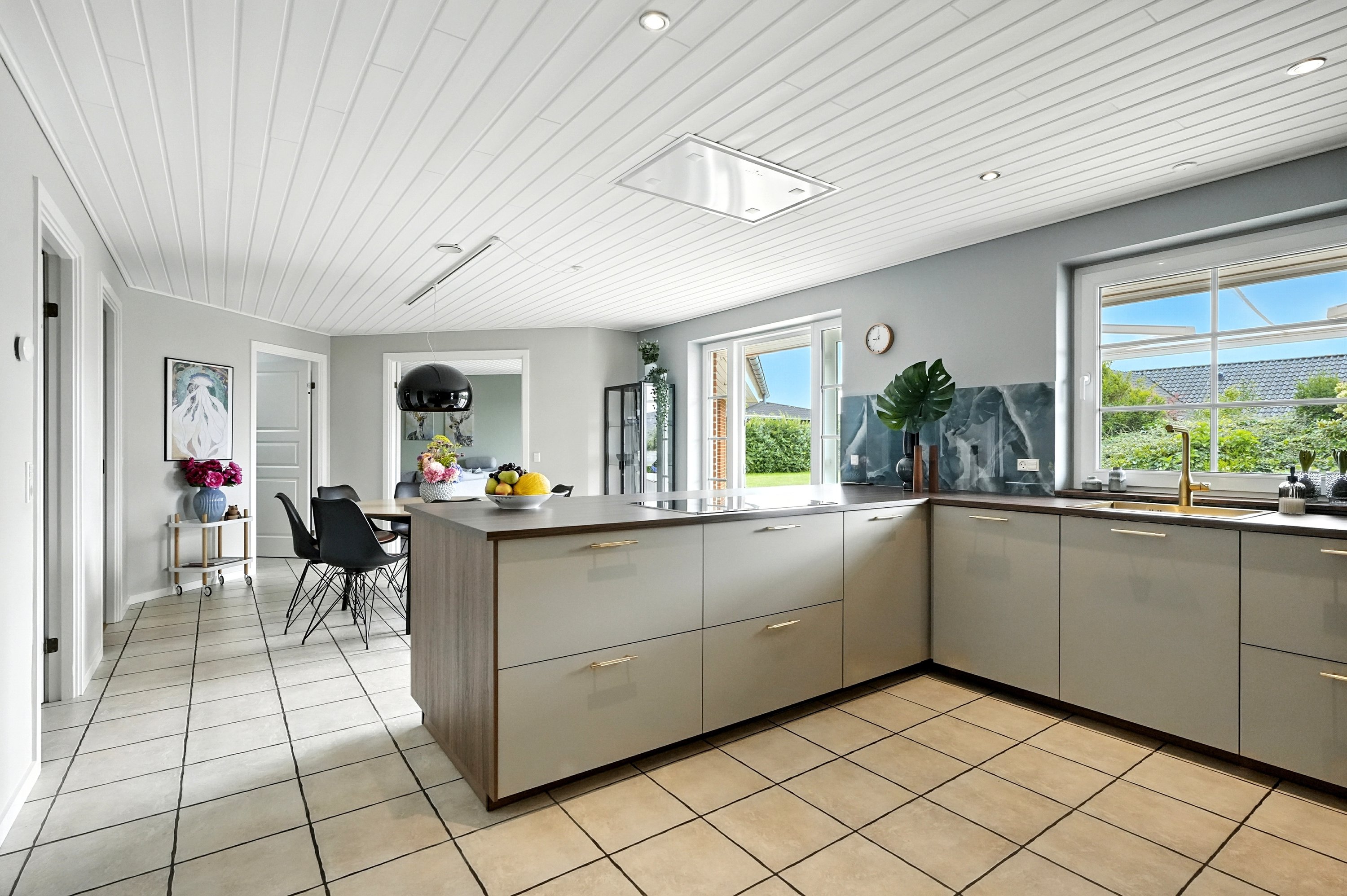 “Hjertet” er det åbne køkken/alrum, hvor de store vinduespartier sikrer et skønt lysindfald. Her er der desuden direkte udgang til den dejlige terrasse. Køkkenet er fra 2024, og valgt med unikke løsninger, som vil behage den kvalitetsbevidste køber. Køkkenet har masser af bord- og skabsplads, så madlavningen bliver en leg.