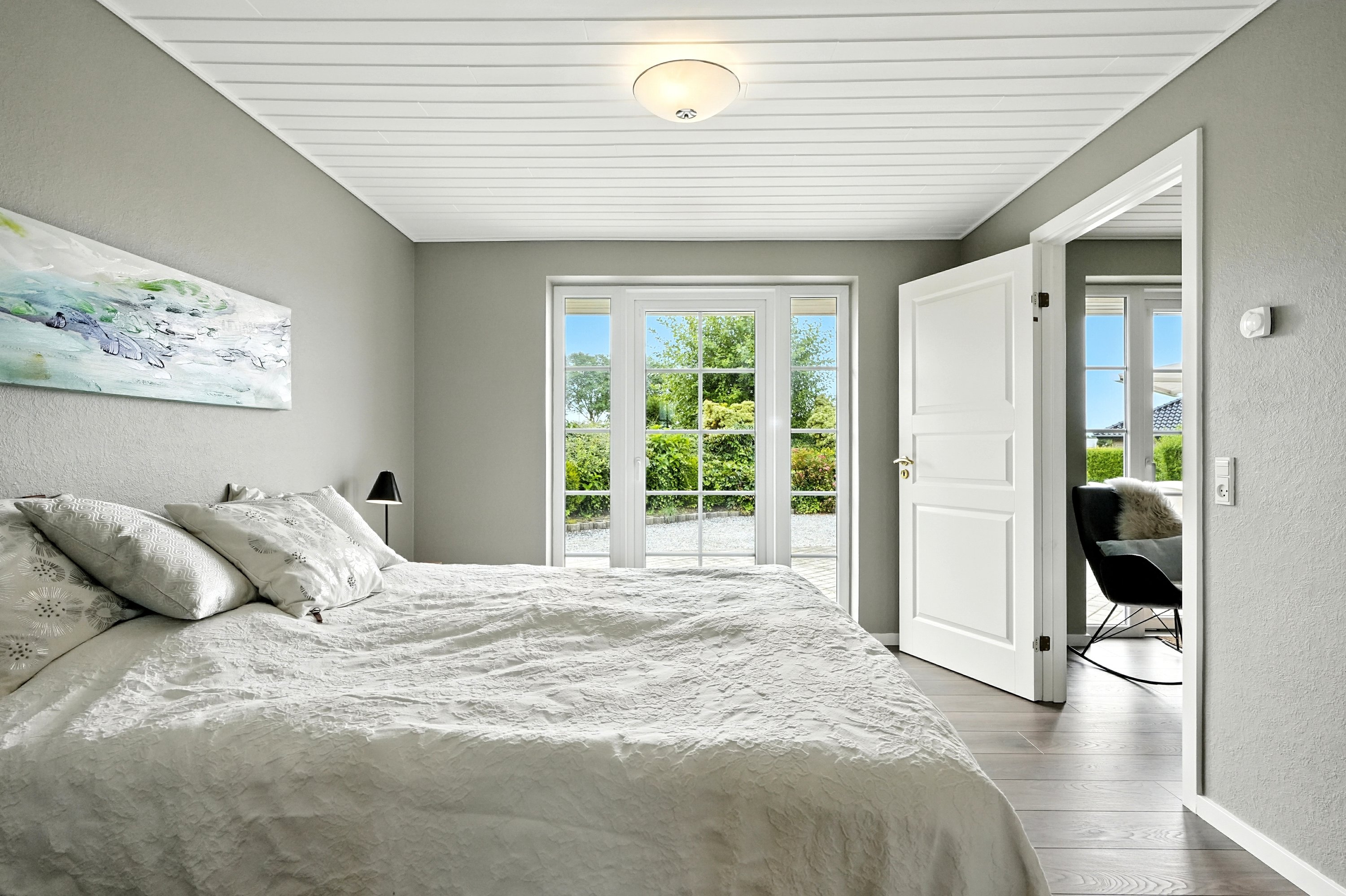 I forældreafdelingen er der et stort soveværelse med eget “walk-through”, samt et lyst og dejligt badeværelse med masser af plads. En imponerende afdeling, hvor man føler sig hjemme og godt tilpas.