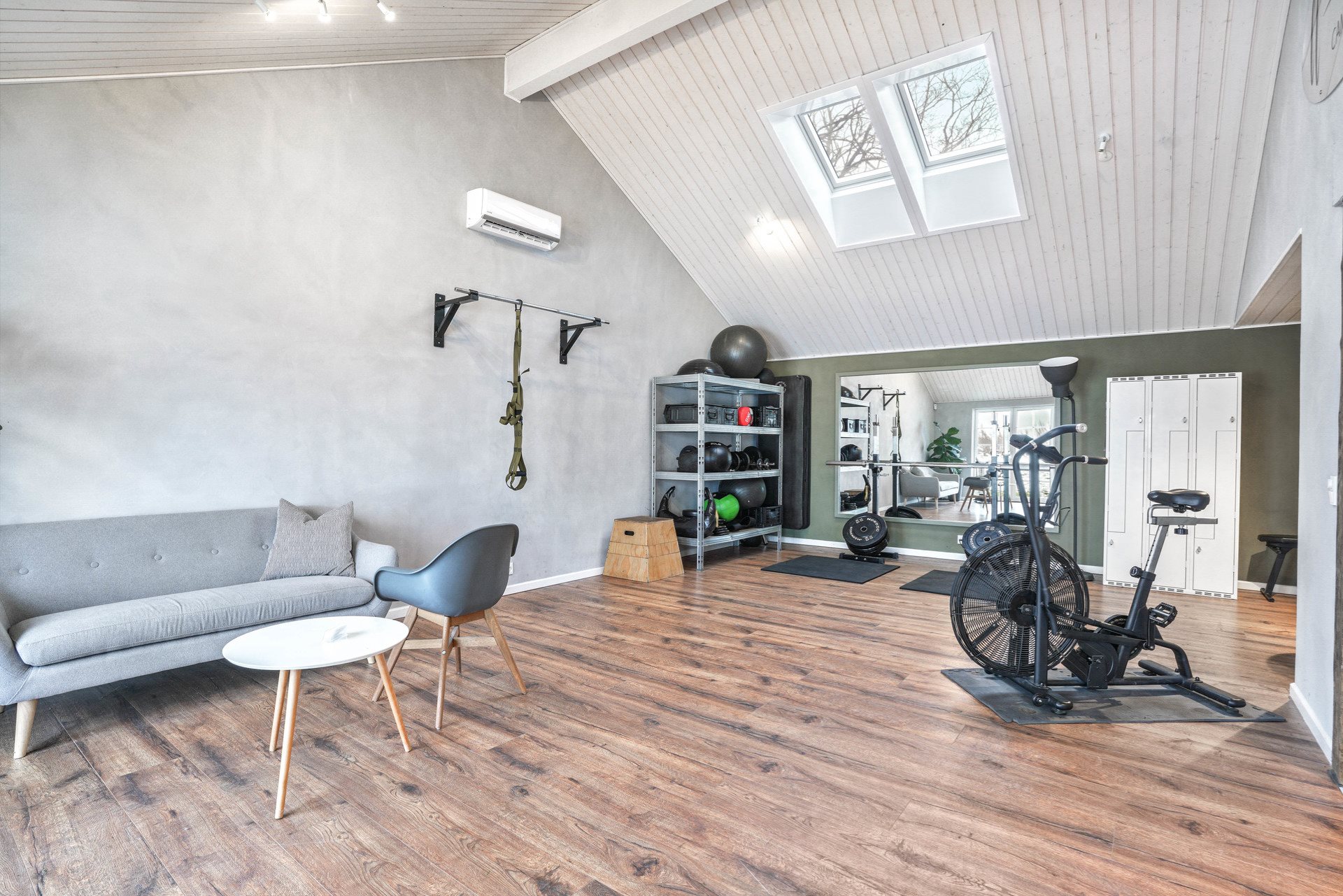 Villaen er opført i 2019 i gode kvalitetsmaterialer, som omkranses af den smukke natur i området. Her græsser de skotske højlandskvæg, mens den grupperede natur skaber en flot udsigt. Tilhørende villaen er der en stor dobbelt garage, hvortil der er lavet et fitnesscenter, som sagtens kan bruges til alle slags erhverv.