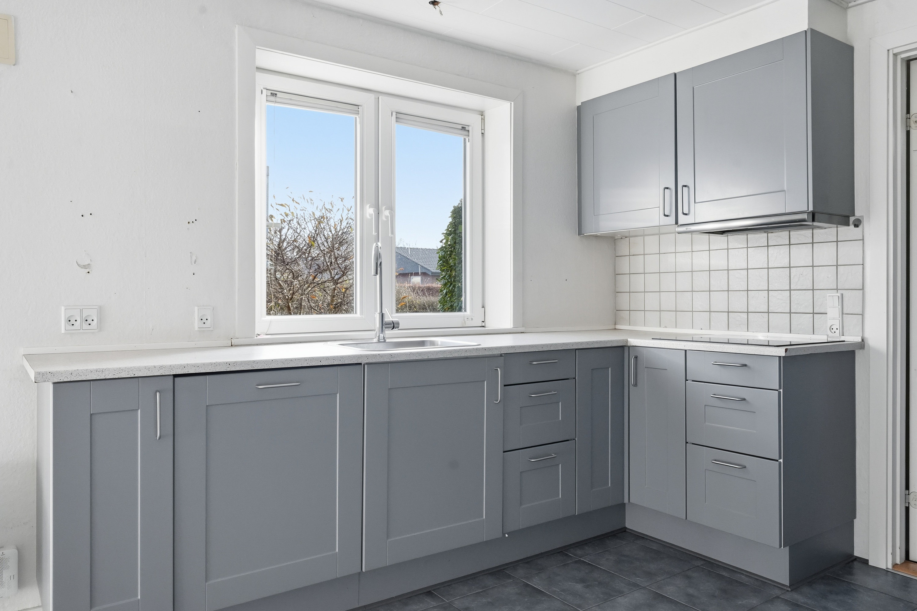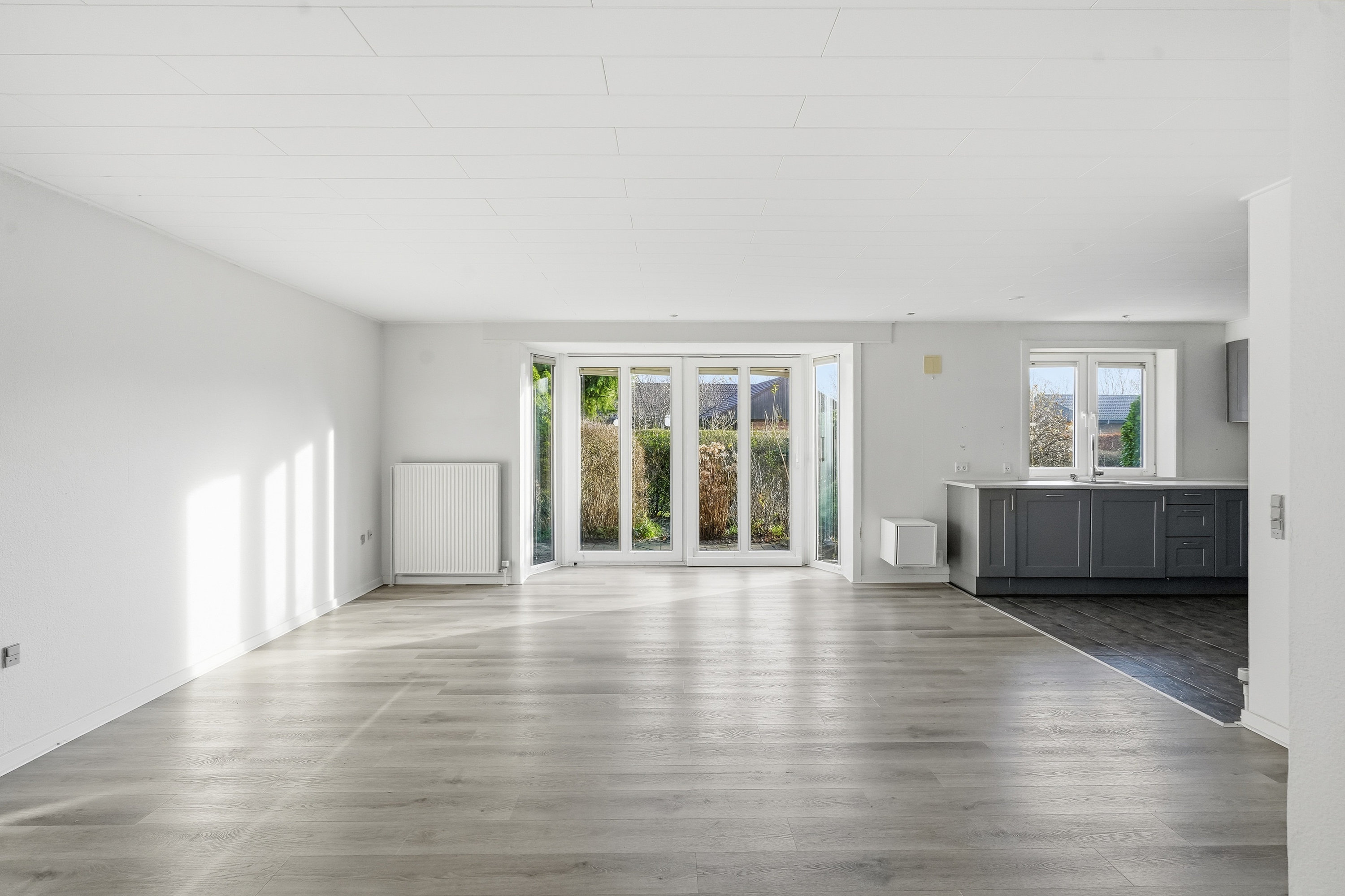 Boligen rummer en stor og lys stue med god plads til både spise- og opholdsområde. I åben forbindelse hertil ligger det åbne køkken/alrum, som bidrager til et lyst og indbydende opholdsmiljø. Køkkenet har en god arbejdsplads og en naturlig sammenhæng med resten af boligen.